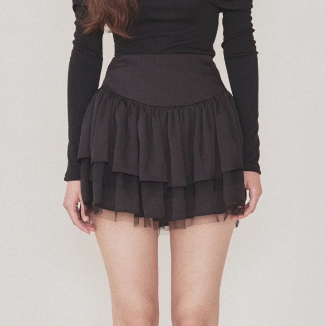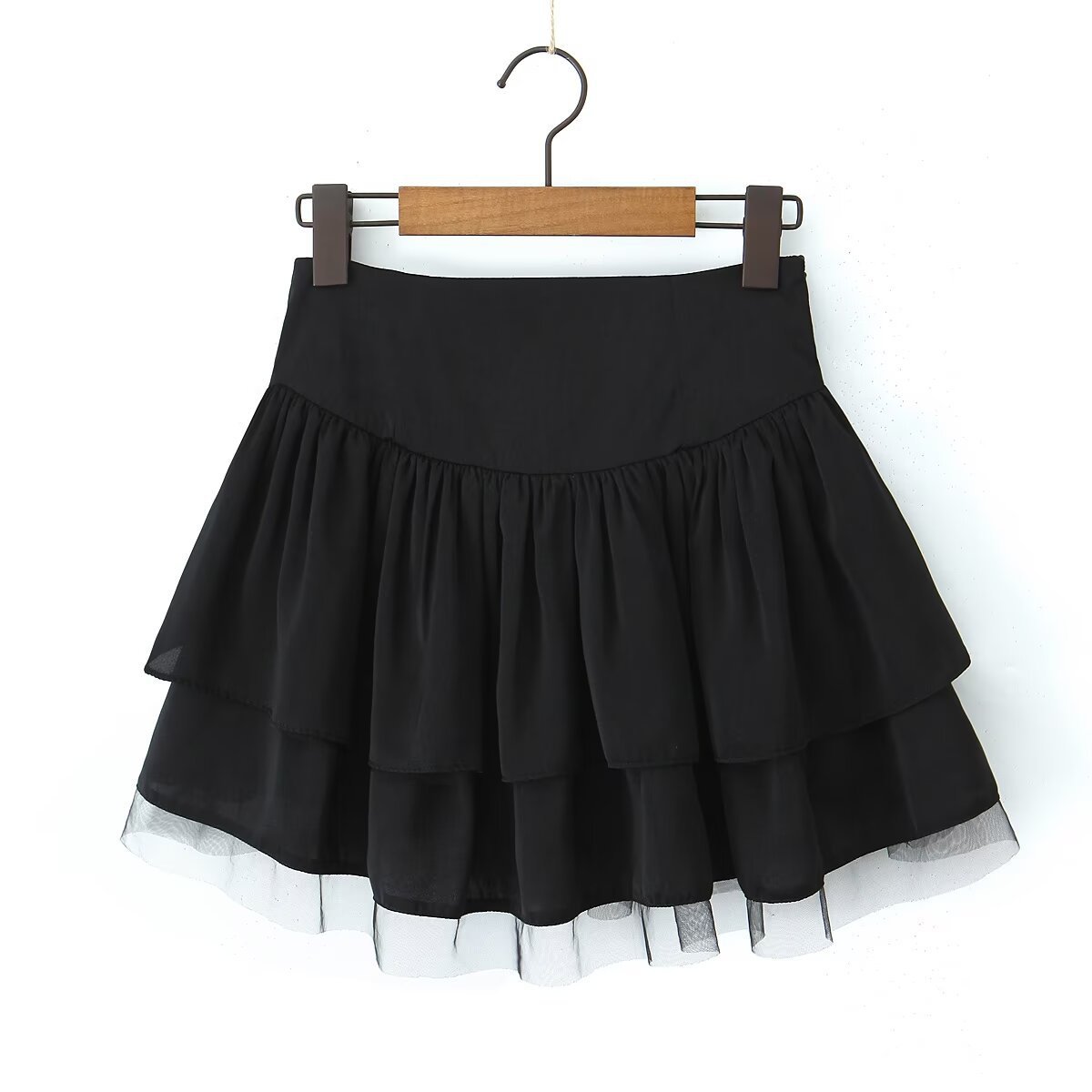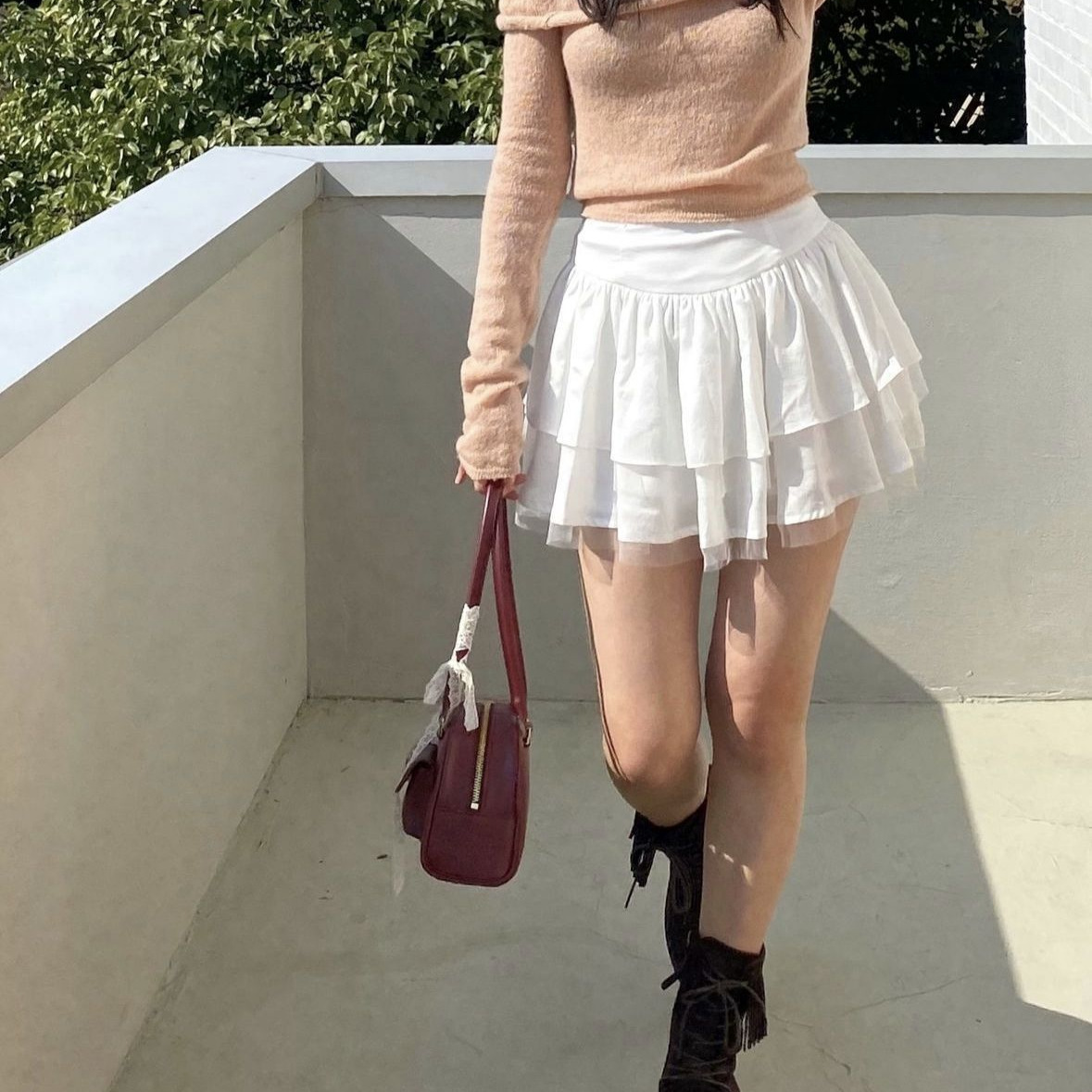2025 새로운 프랑스 스타일 레트로 높은 허리 발레 A 라인 짧은 스커트 스위트 메쉬 스티칭 미니 스커트스토어 가기