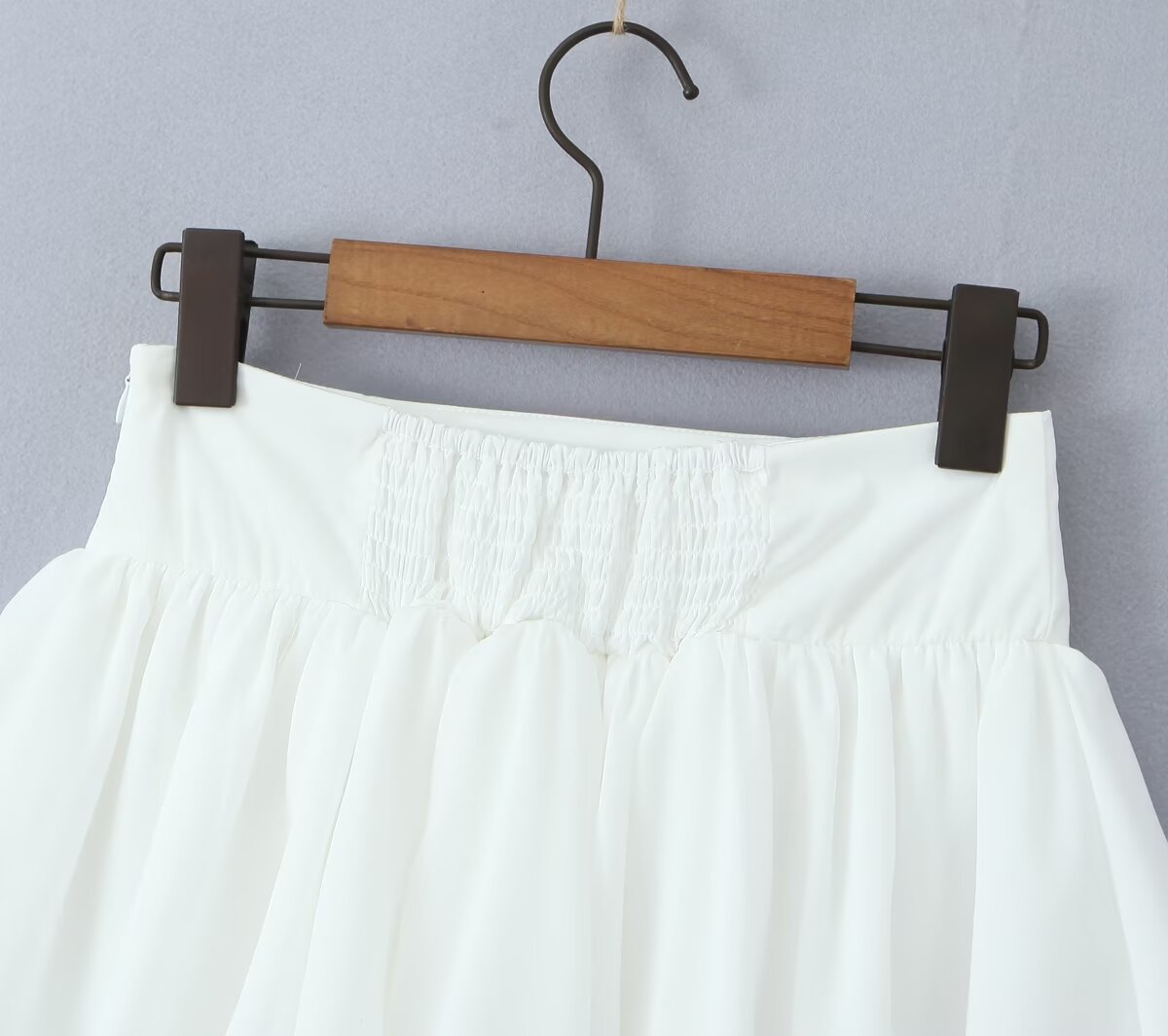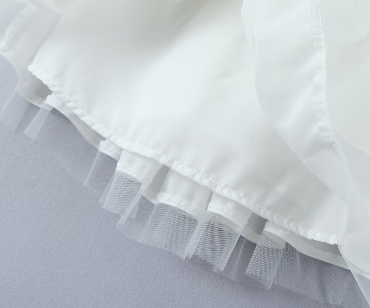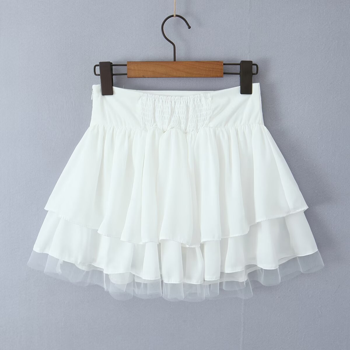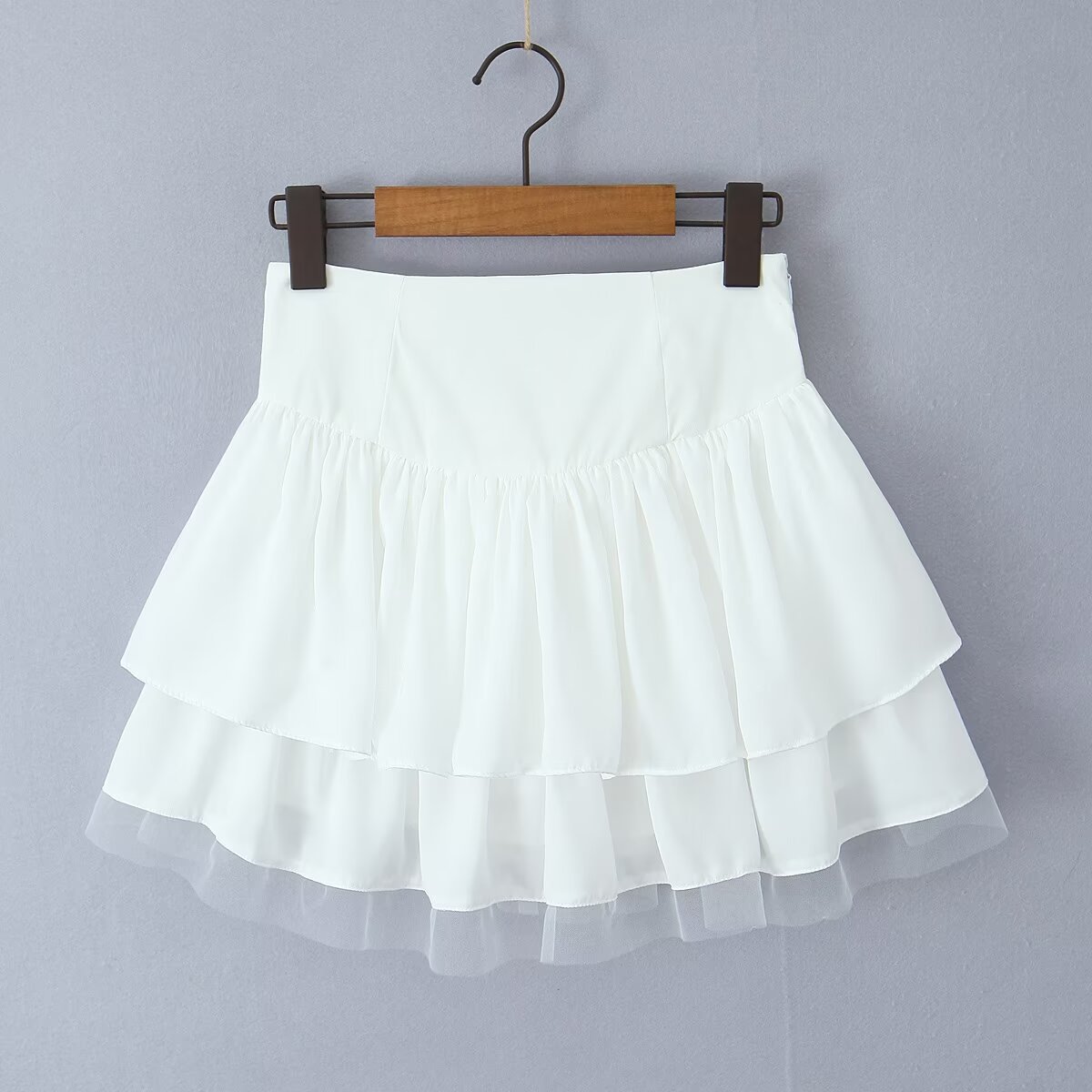 2025 새로운 프랑스 스타일 레트로 높은 허리 발레 A 라인 짧은 스커트 스위트 메쉬 스티칭 미니 스커트