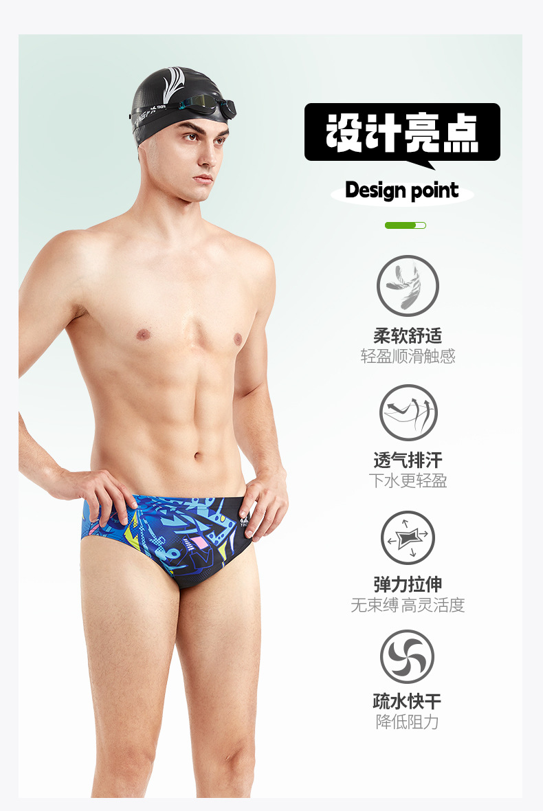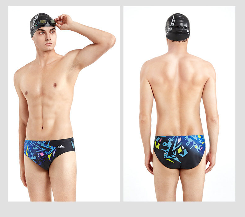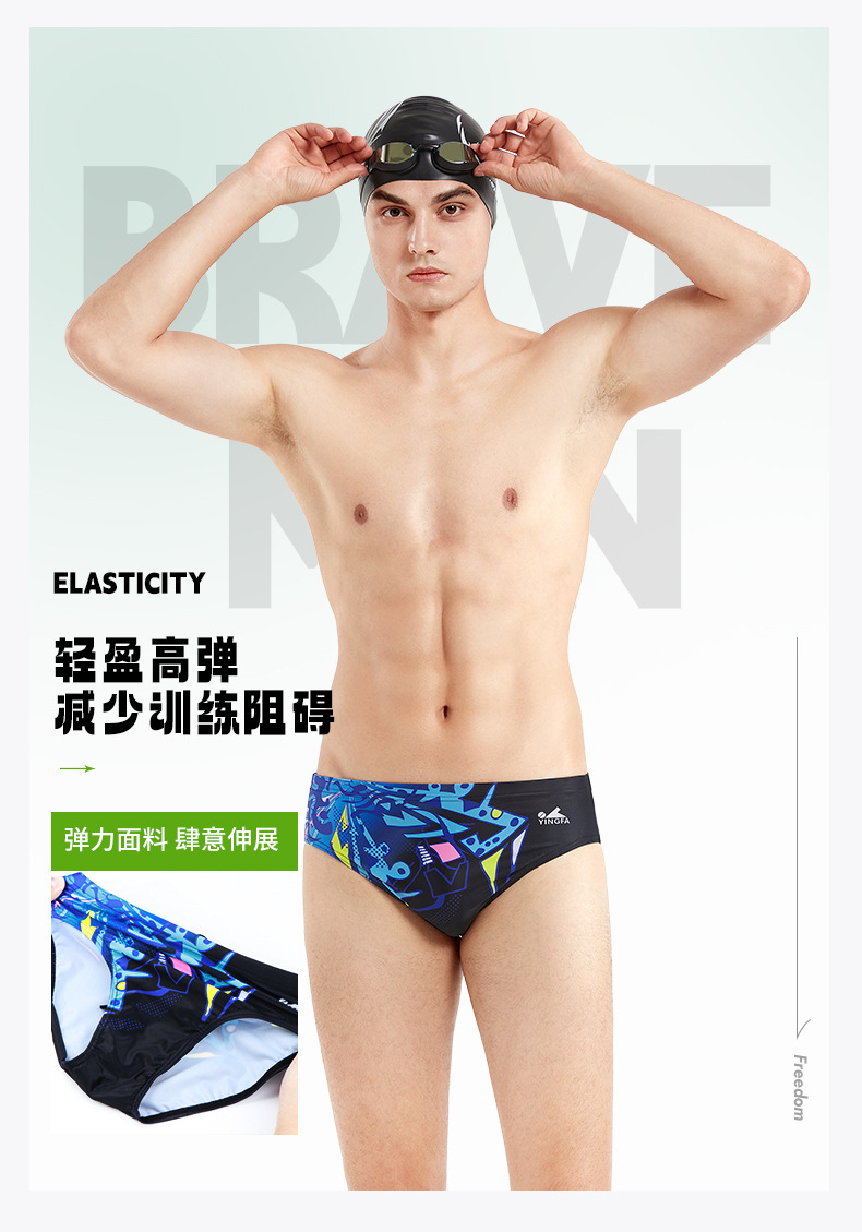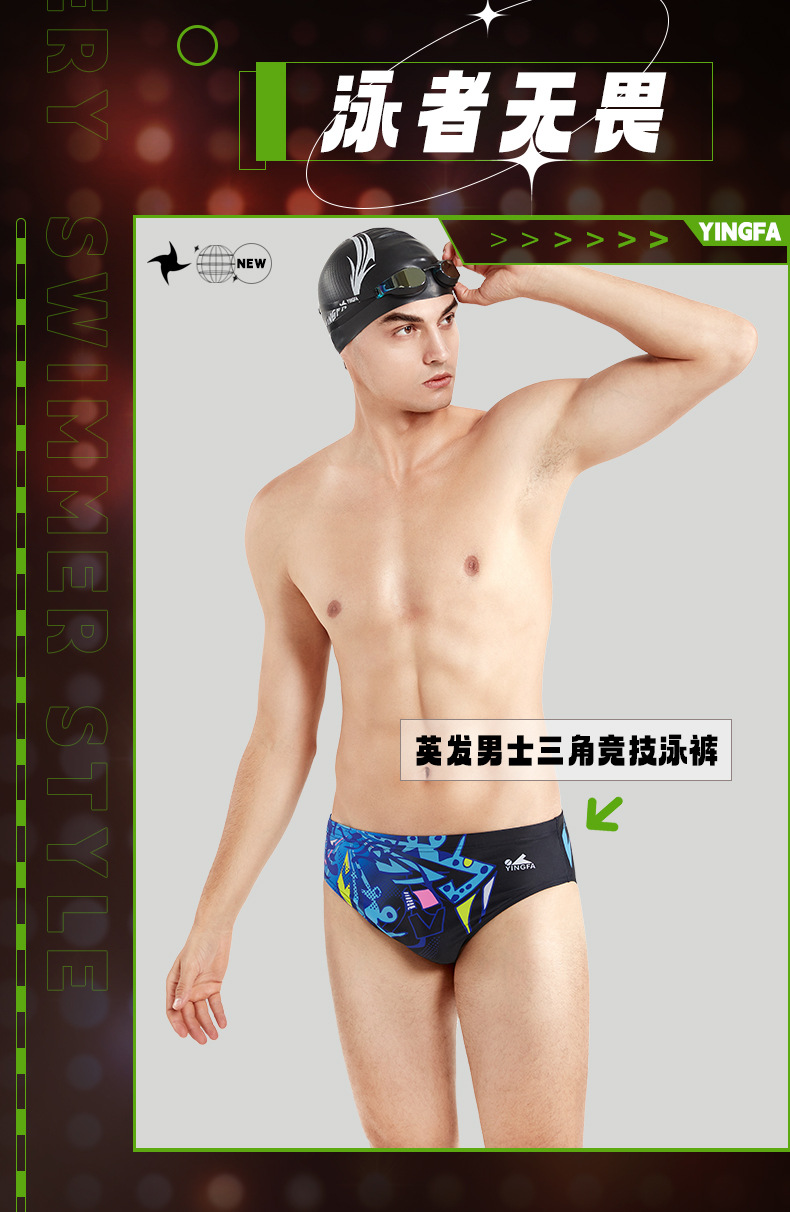 Yingfa 2024 삼각형 수영 트렁크 남성 전문 교육 경쟁력있는 빠른 건조 수영 트렁크 낮은 허리 패션 인쇄