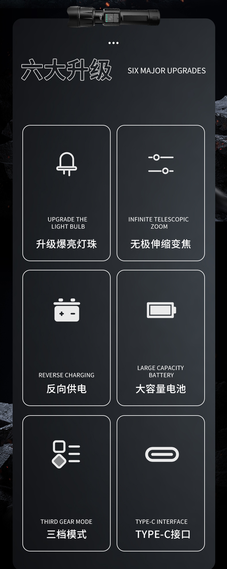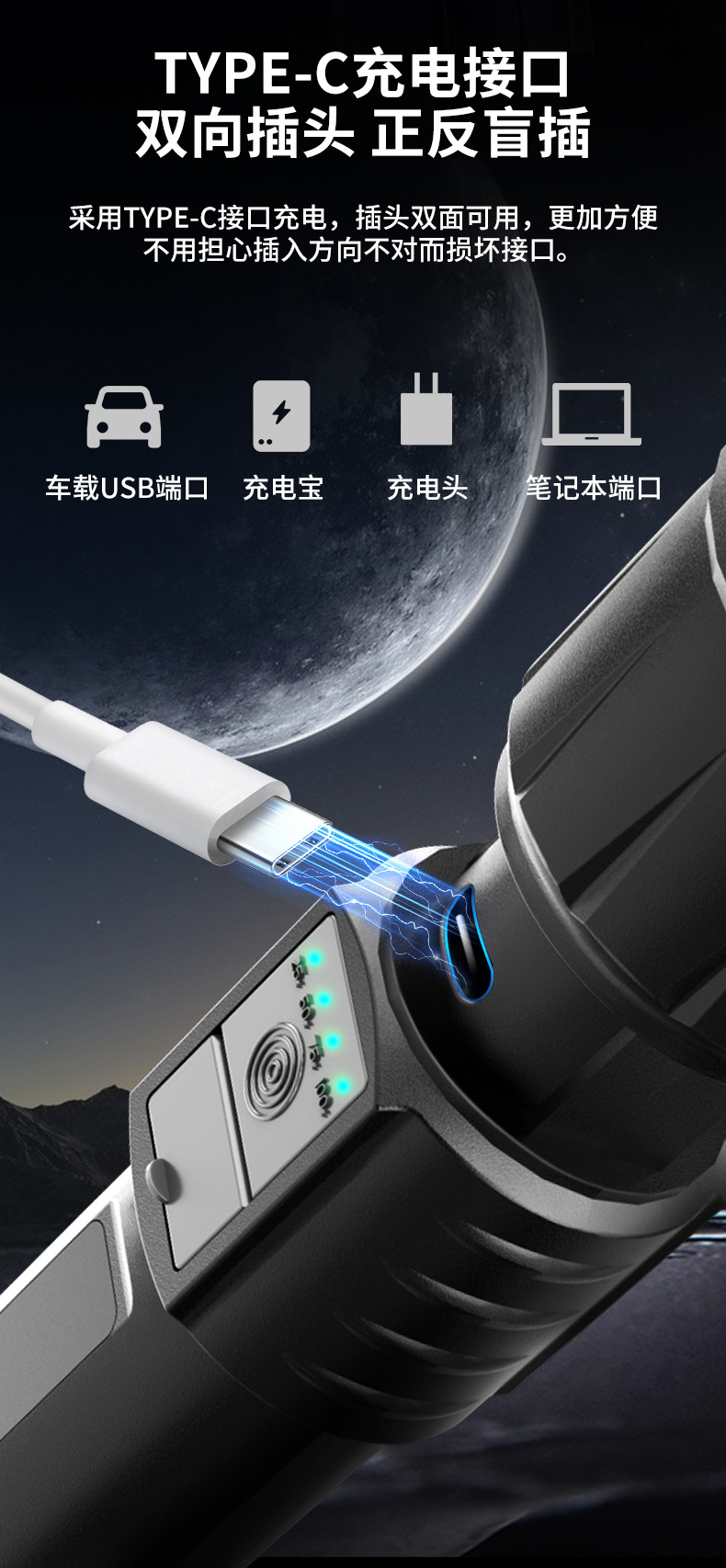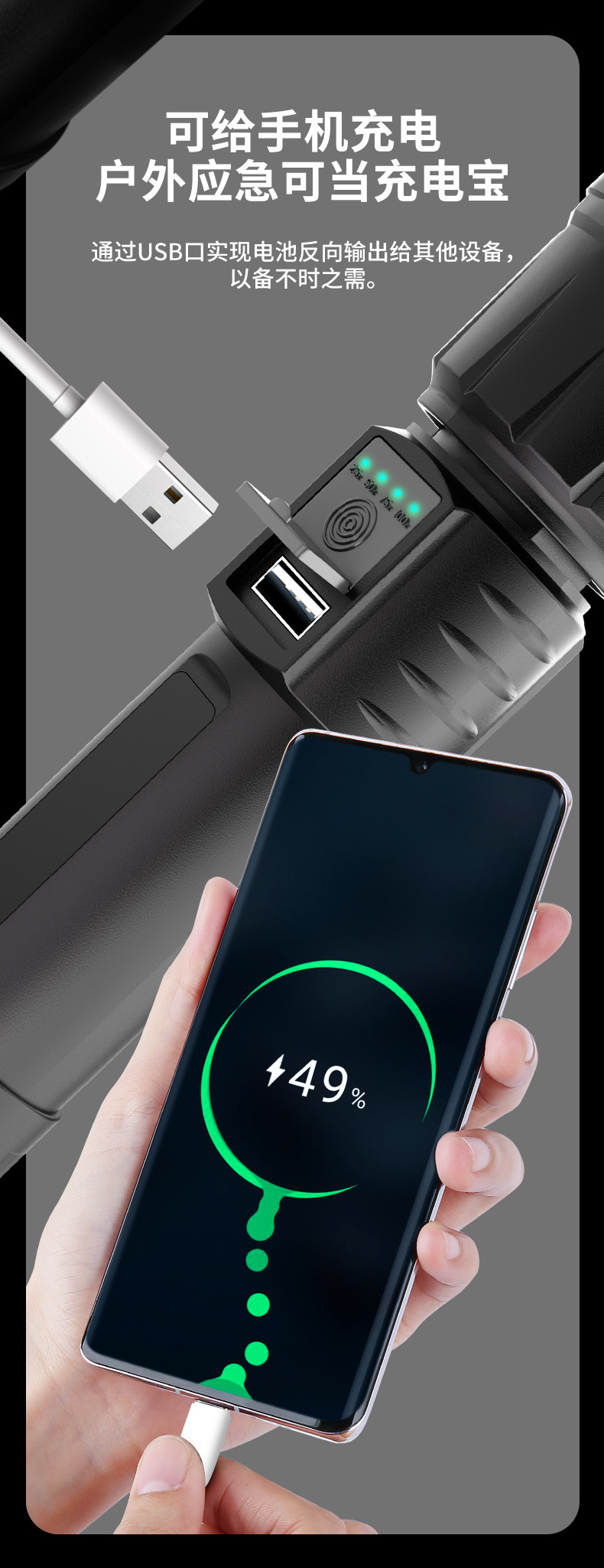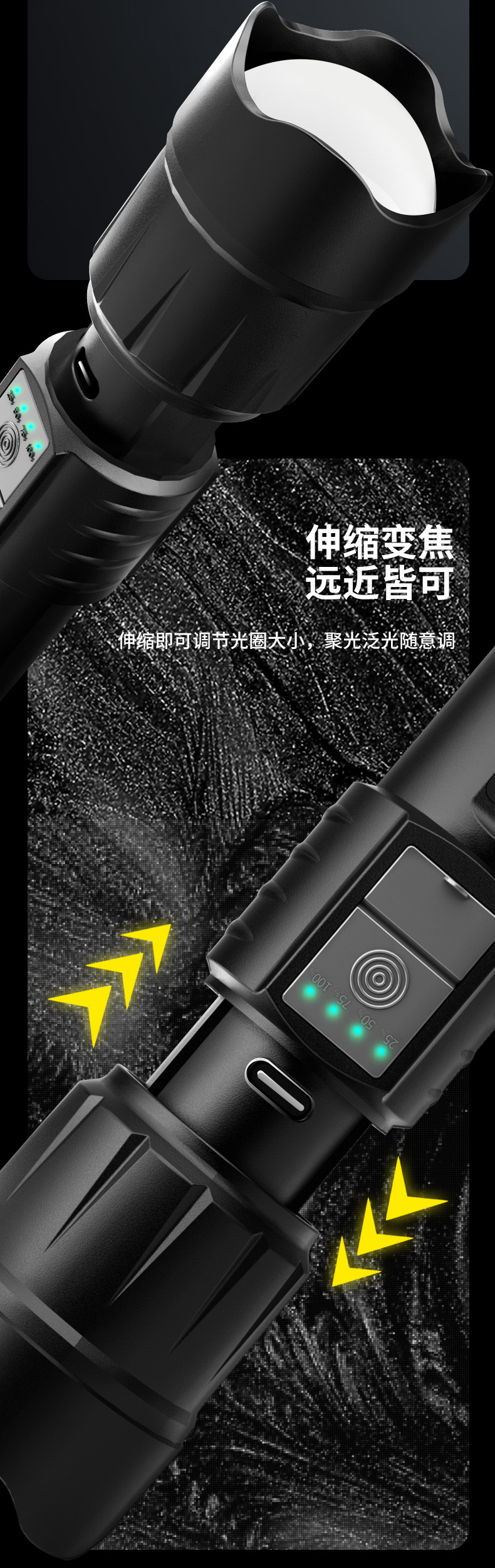 • 줌 장거리 + USB 출력 충전 기능을 갖춘 강력한 조명 텔레스코픽