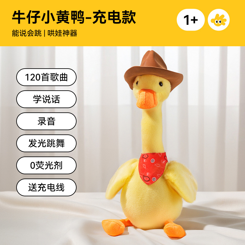 • [업그레이드된 충전식 모델] 카우보이 리틀 옐로우 덕(120곡 + 말하기 학습 + 녹음 + 빛나는 댄스 + 무료 충전 케이블)
