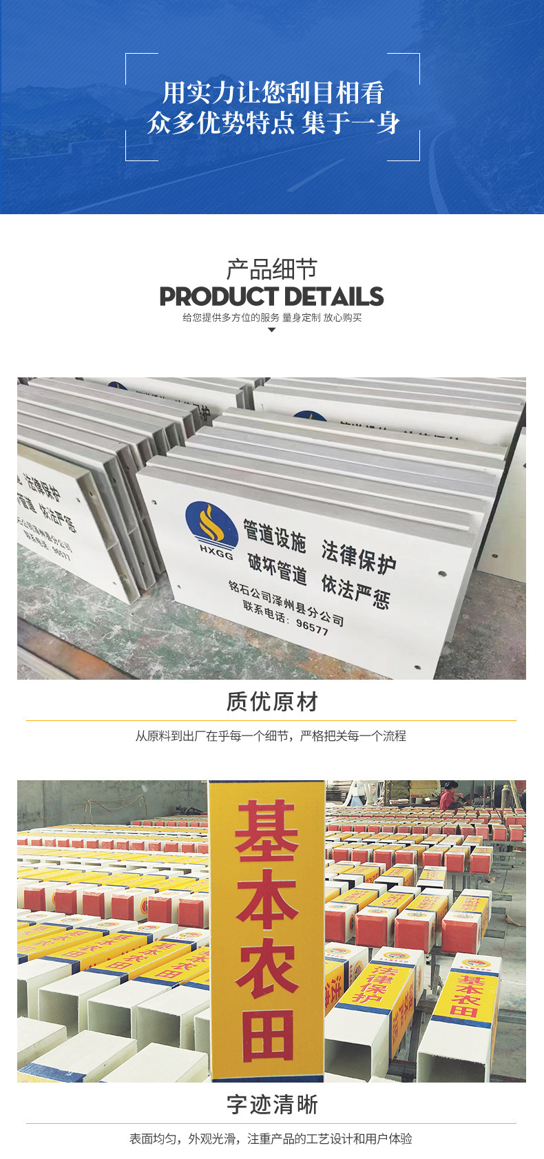 가스 및 석유 물 공급 pvc 경고 파일 유리 섬유 강화 플라스틱 케이블 마커 더미 아래 통신 광 케이블 마커 돌 매장