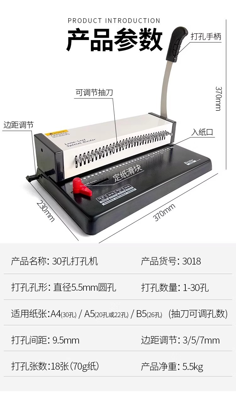 책 창 펀칭 기계 3018 수동 바인딩 기계 30 구멍 링 바인딩 A4 종이 문서 부드러운 문서 파일 바인딩 기계
