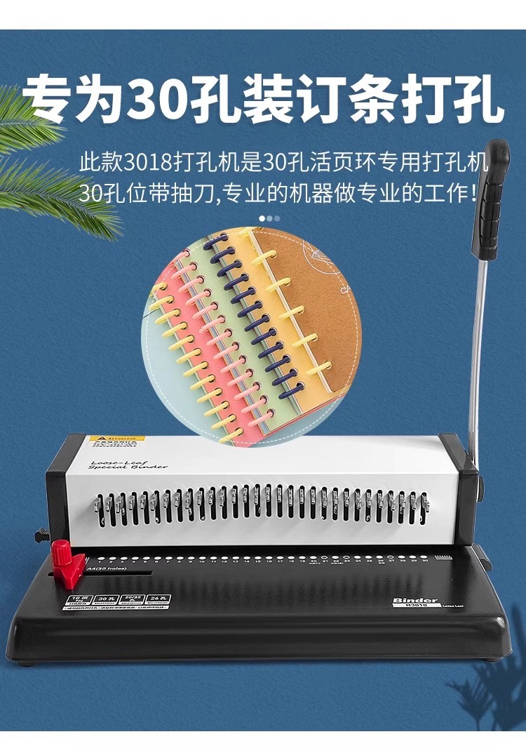 책 창 펀칭 기계 3018 수동 바인딩 기계 30 구멍 링 바인딩 A4 종이 문서 부드러운 문서 파일 바인딩 기계스토어 가기