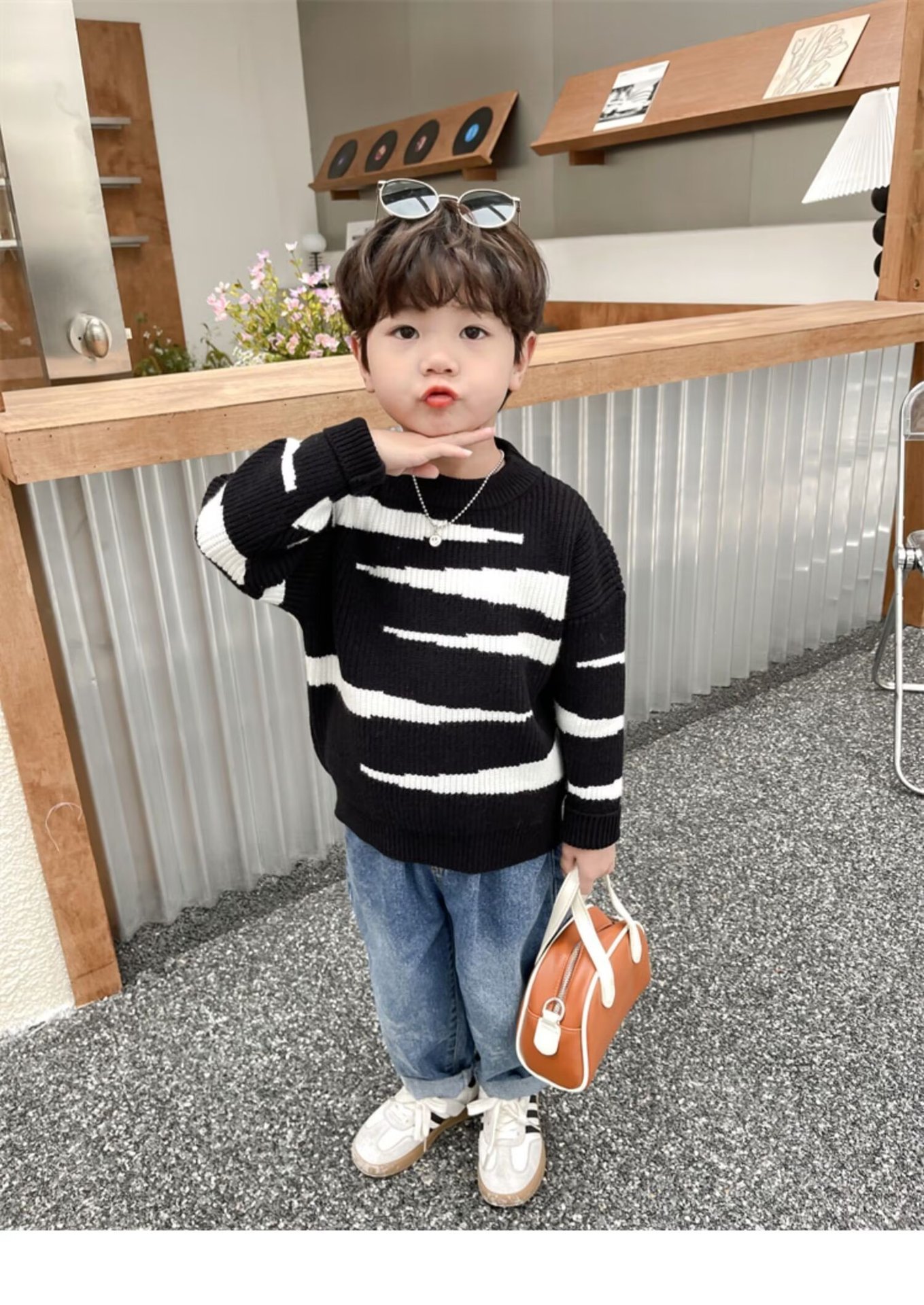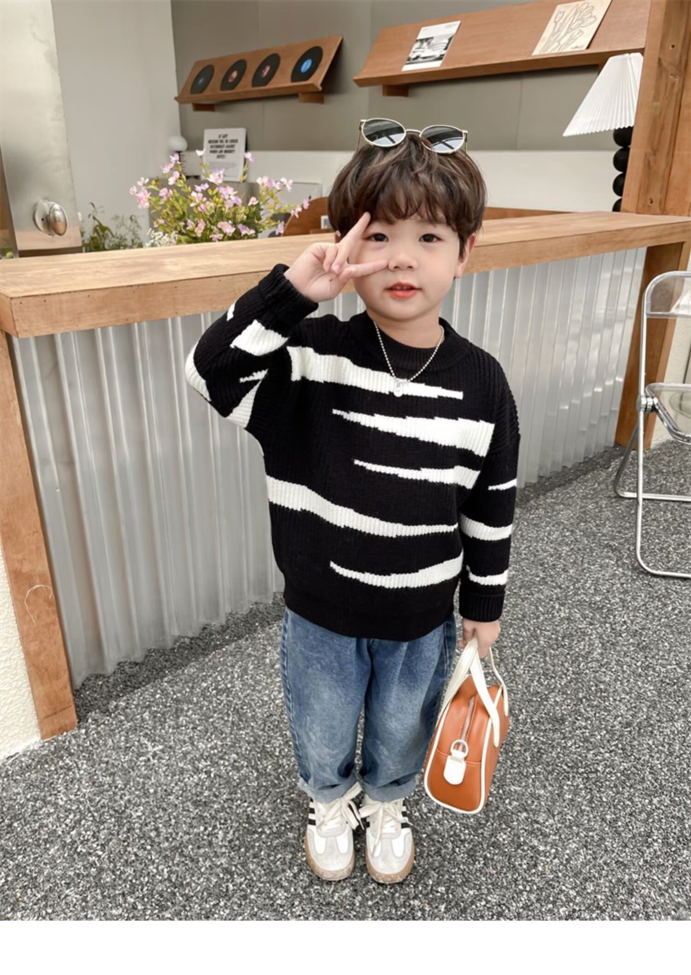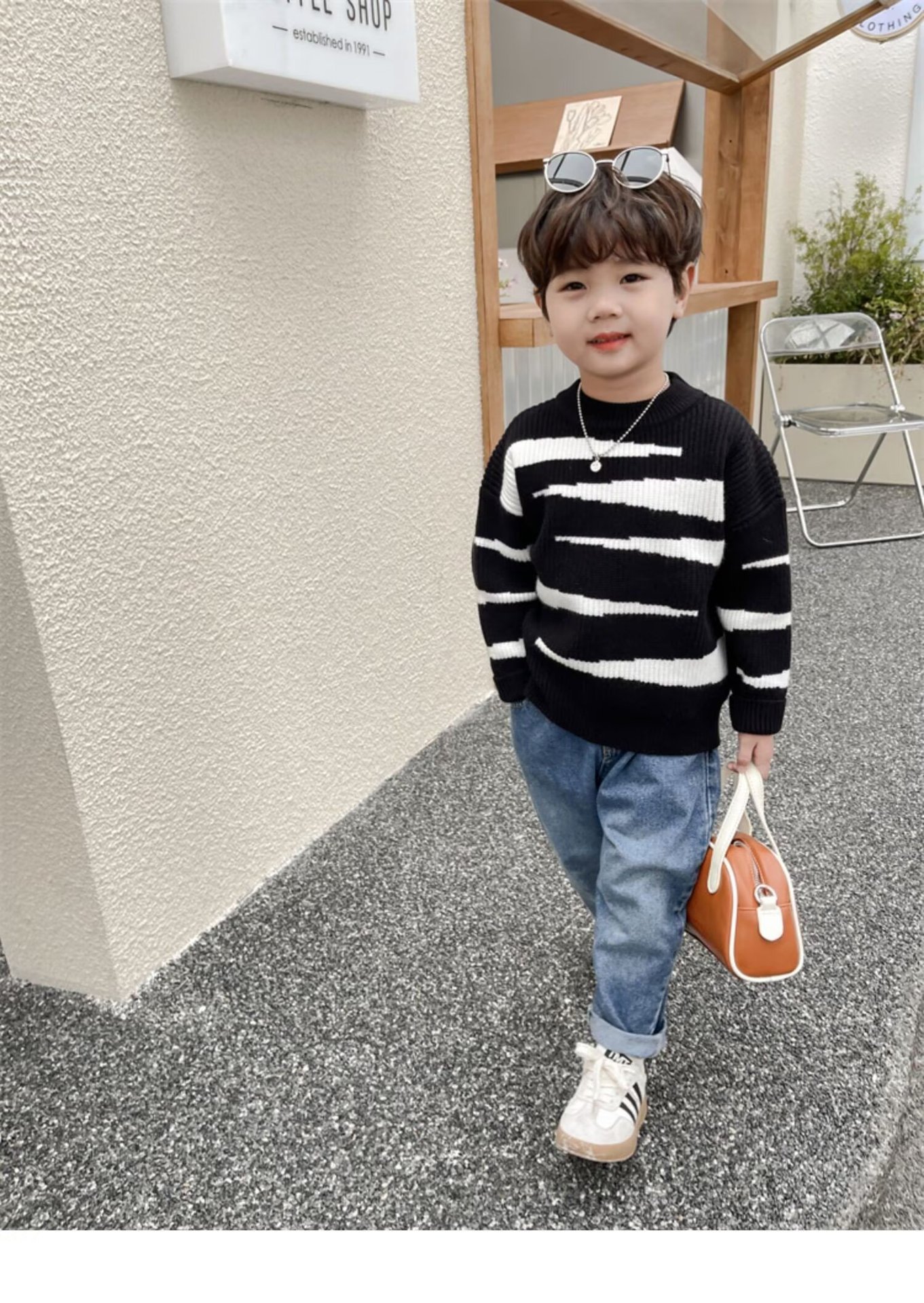 중소 소년 수직 스트라이프 스웨터 가을과 겨울 새로운 어린이 서양식 풀오버 베이스 스웨터 느슨한 캐주얼 스웨터스토어 가기