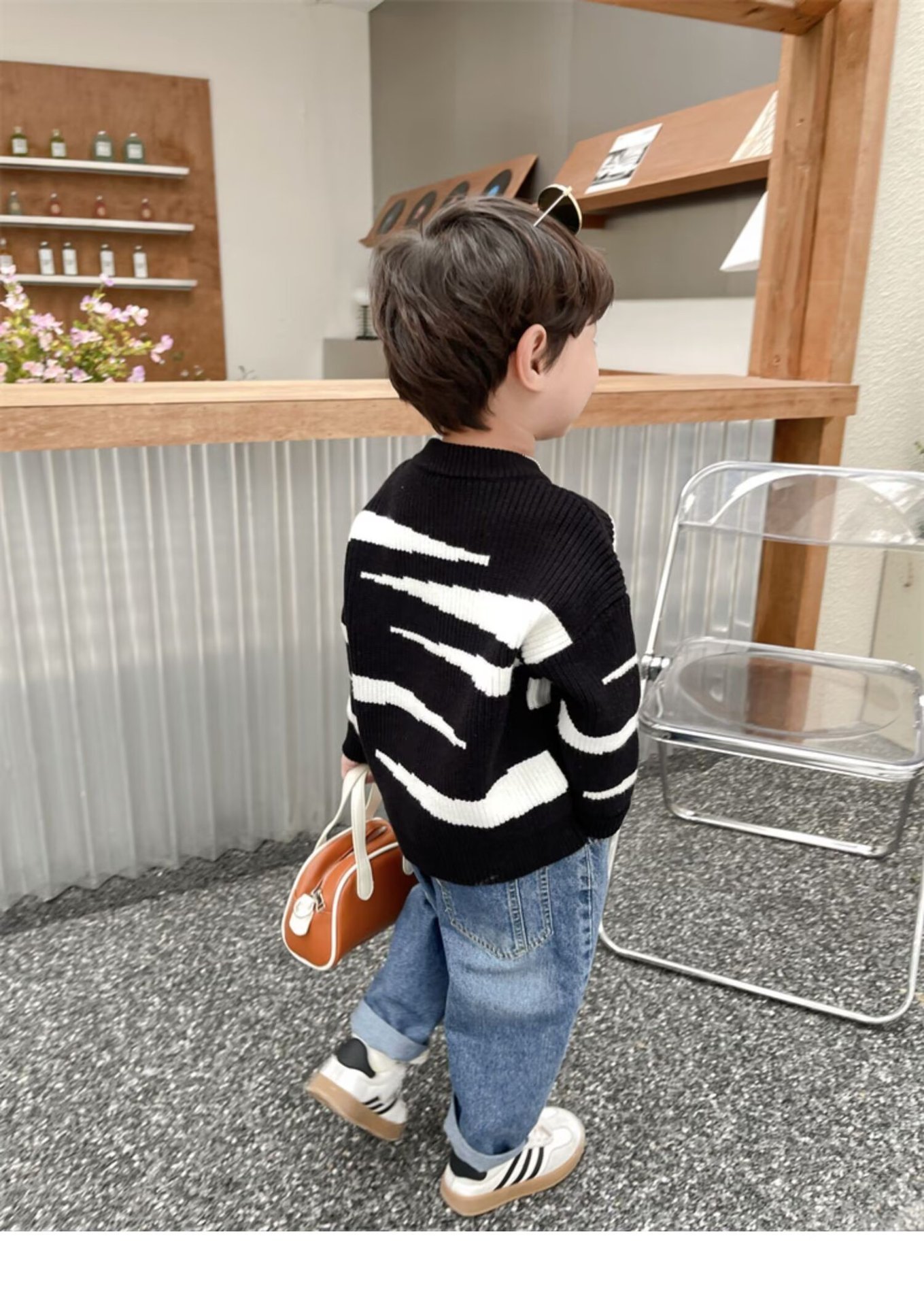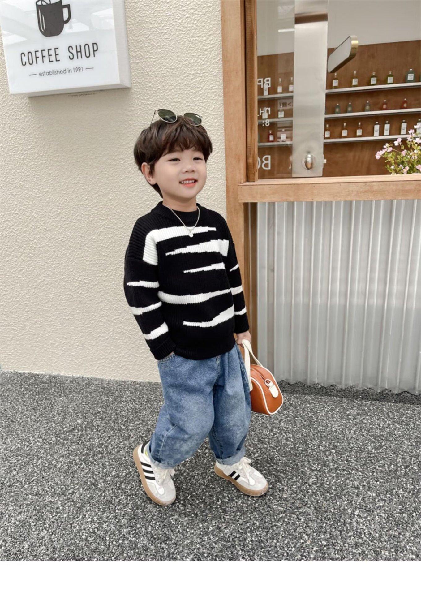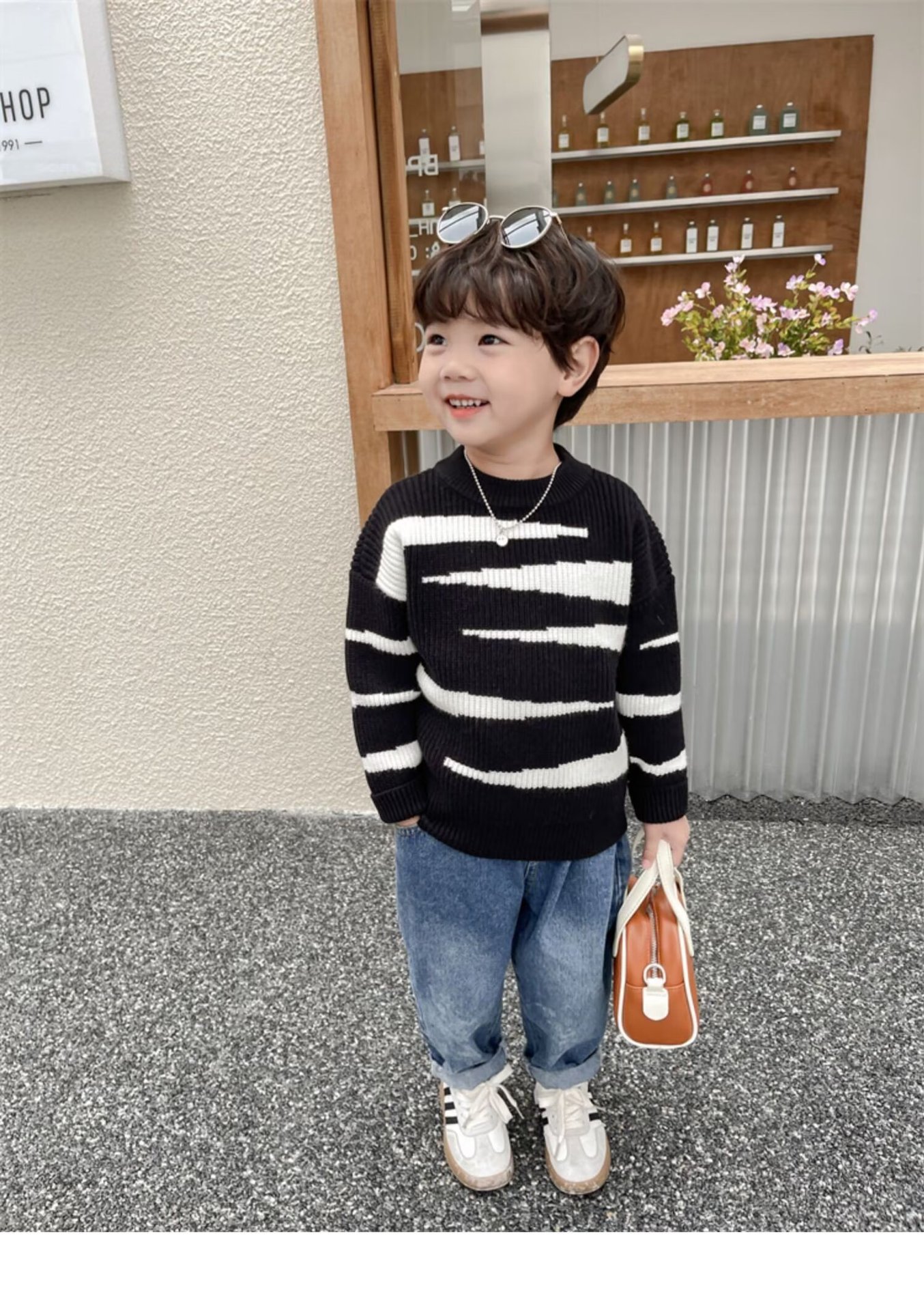 중소 소년 수직 스트라이프 스웨터 가을과 겨울 새로운 어린이 서양식 풀오버 베이스 스웨터 느슨한 캐주얼 스웨터스토어 가기