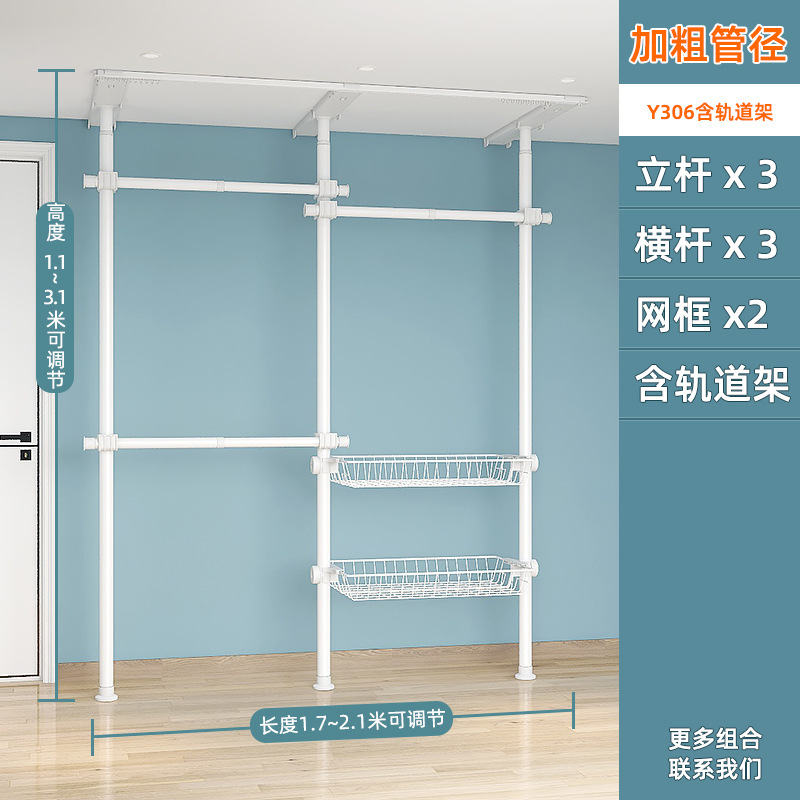 소스 제조업체는 바닥에서 천장까지 옷걸이 막대 가정용 커튼 옷 건조 랙 옷 걸이 옷장 휴대품 보관소 선반 조립스토어 가기