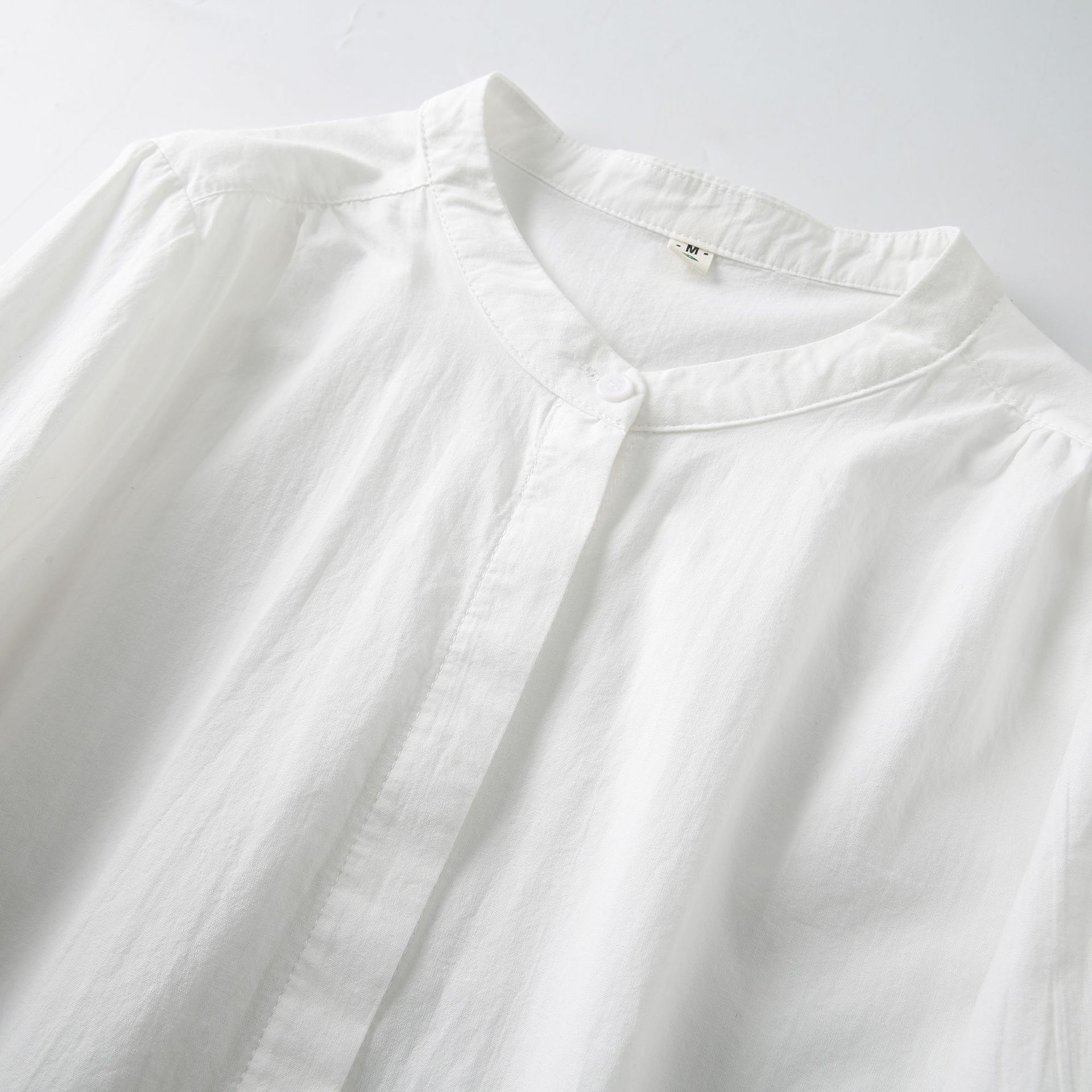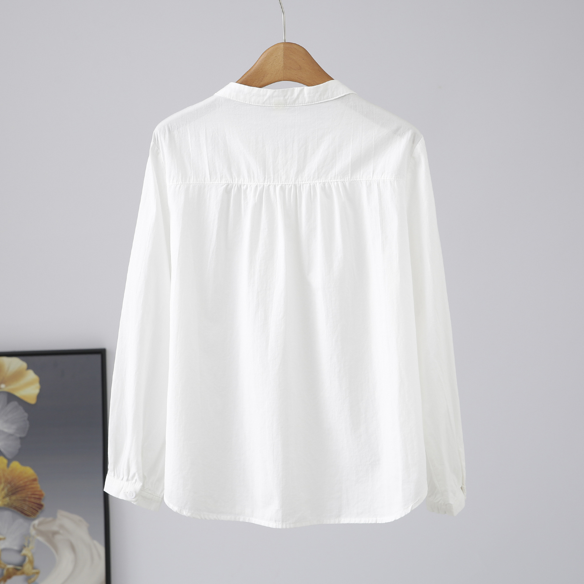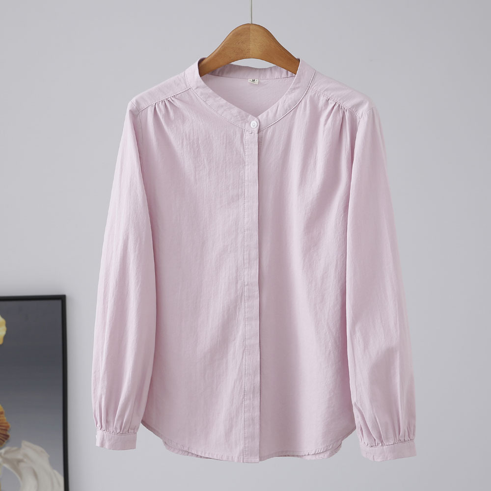 여성복 2025 봄 가을 신상 부드러운 이중 면사 스탠드 칼라 긴팔 셔츠 여성 상의