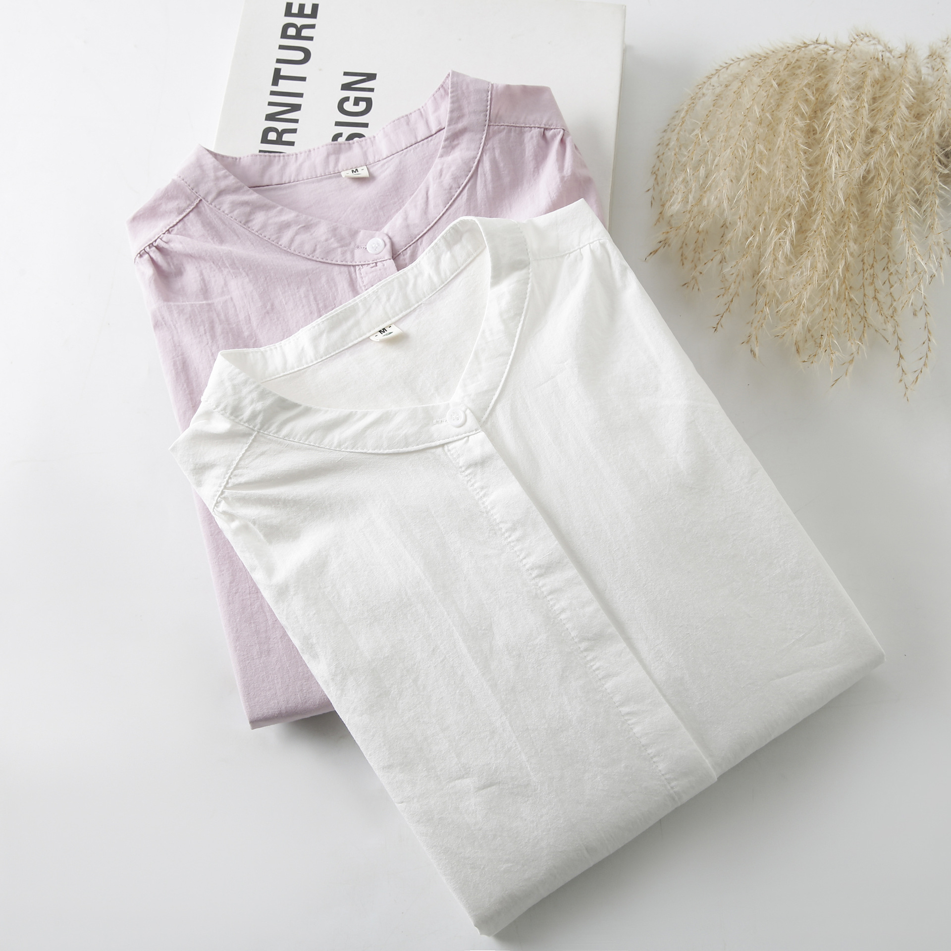 여성복 2025 봄 가을 신상 부드러운 이중 면사 스탠드 칼라 긴팔 셔츠 여성 상의스토어 가기