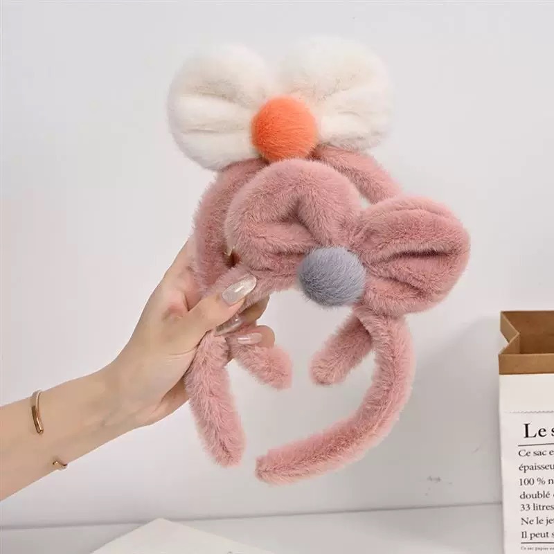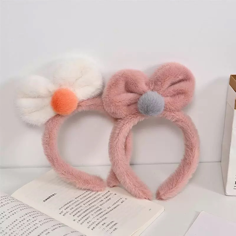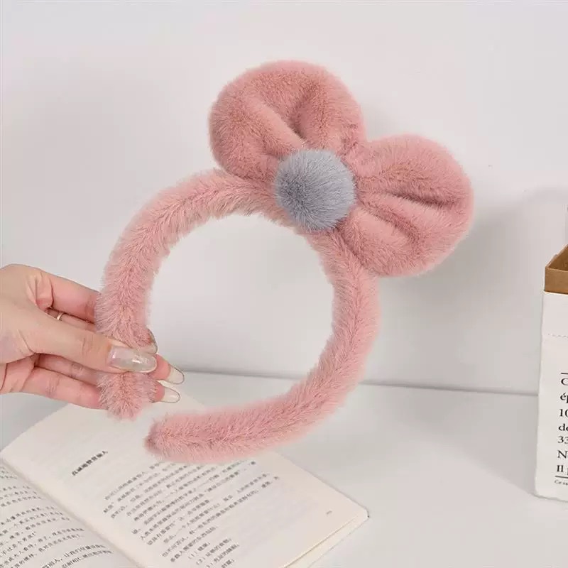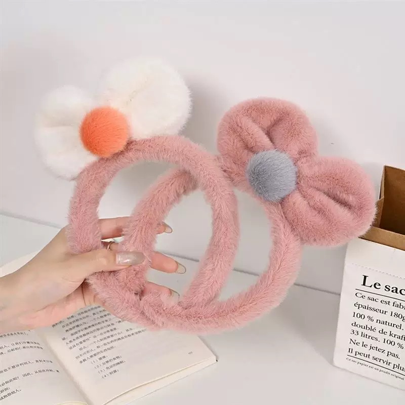 귀여운 활 봉제 헤어 후프 가을과 겨울 올매치 큰 귀 머리띠 워시 얼굴 밍크 헤어 한국 여성용 머리 클립스토어 가기
