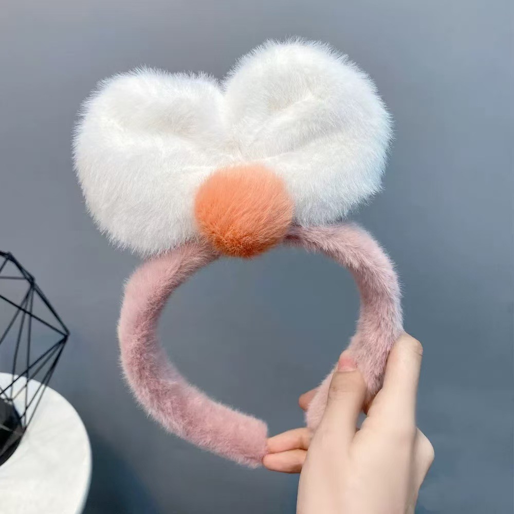 귀여운 활 봉제 헤어 후프 가을과 겨울 올매치 큰 귀 머리띠 워시 얼굴 밍크 헤어 한국 여성용 머리 클립