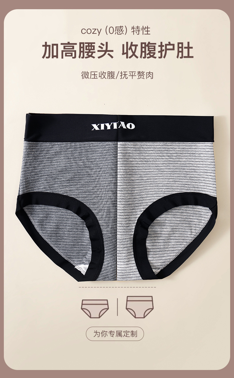 높은 허리 속옷 여성의 순수한면 항균 학생 배꼽 단단한 줄무늬 플러스 사이즈 원활한 순수한 바람직한 속옷 배 단단한 브리프