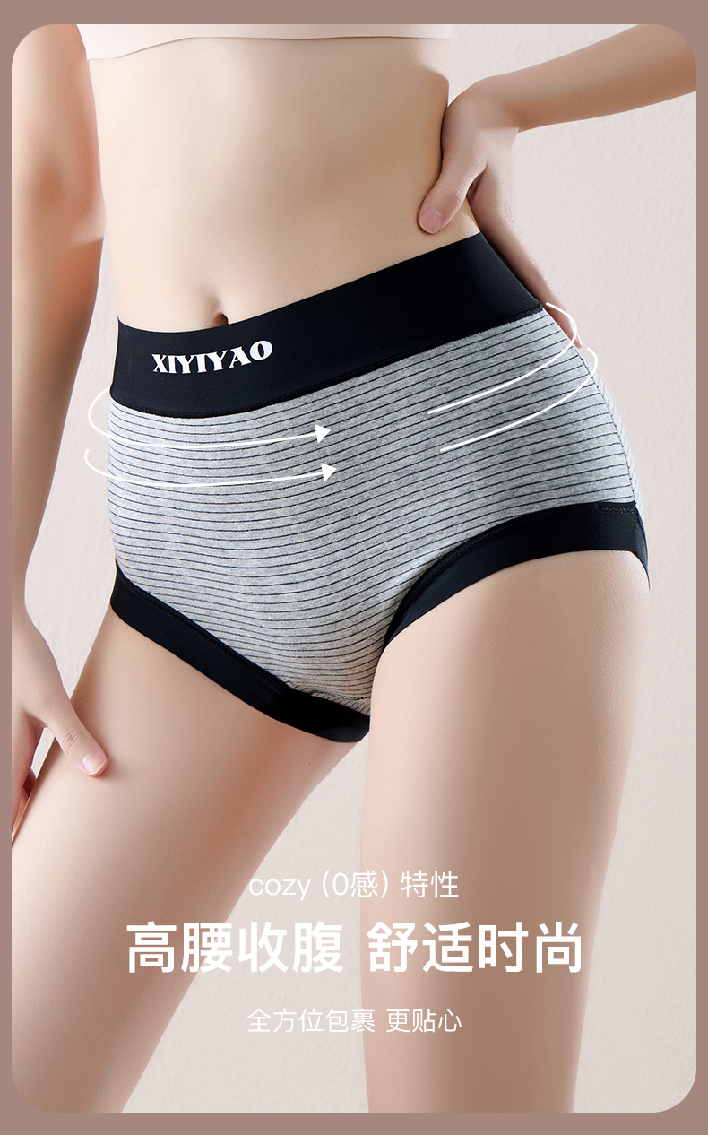 높은 허리 속옷 여성의 순수한면 항균 학생 배꼽 단단한 줄무늬 플러스 사이즈 원활한 순수한 바람직한 속옷 배 단단한 브리프스토어 가기