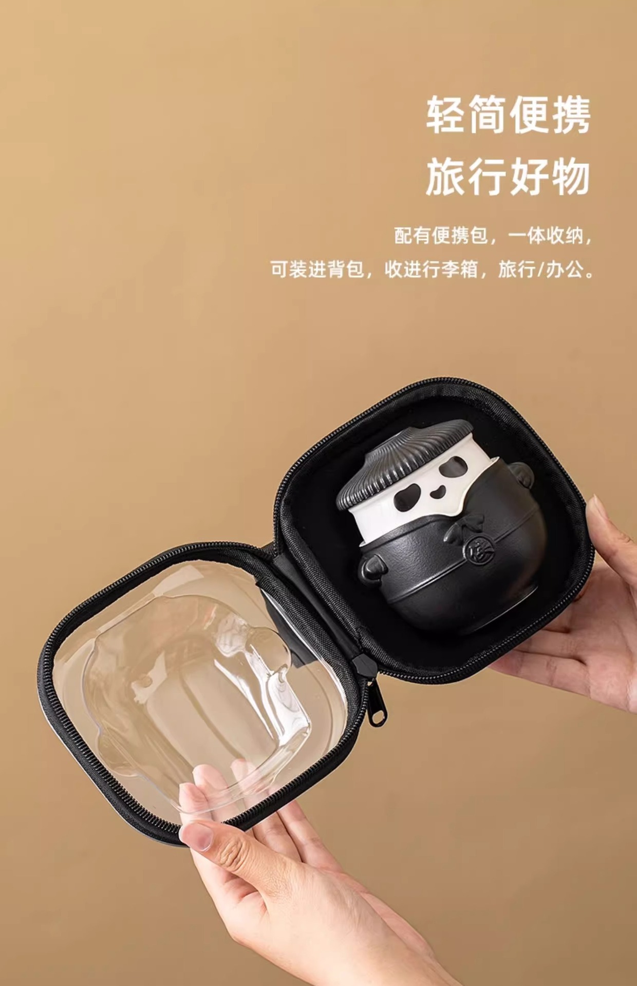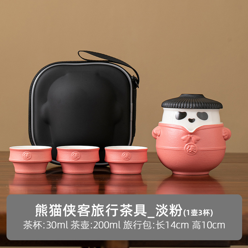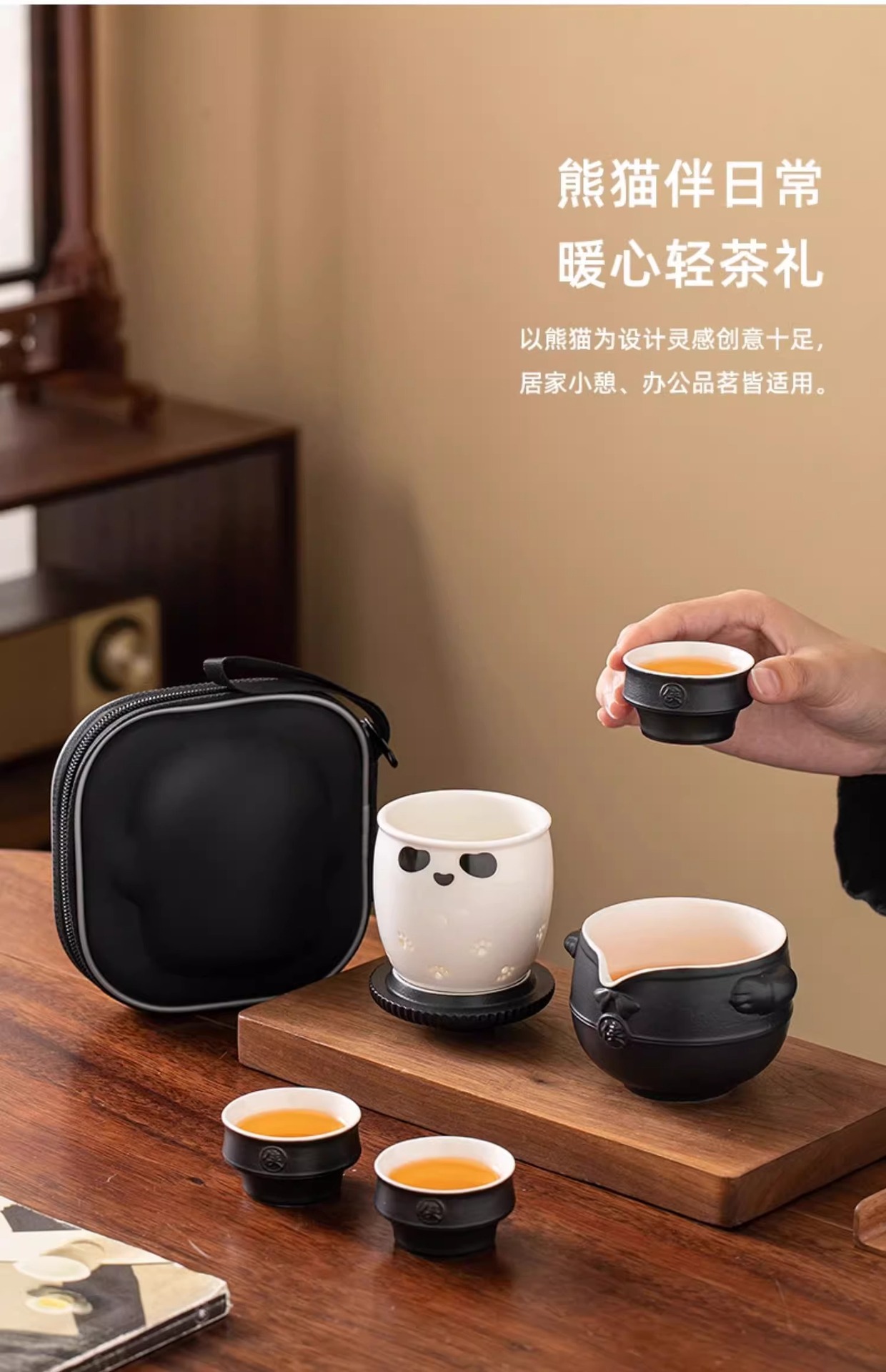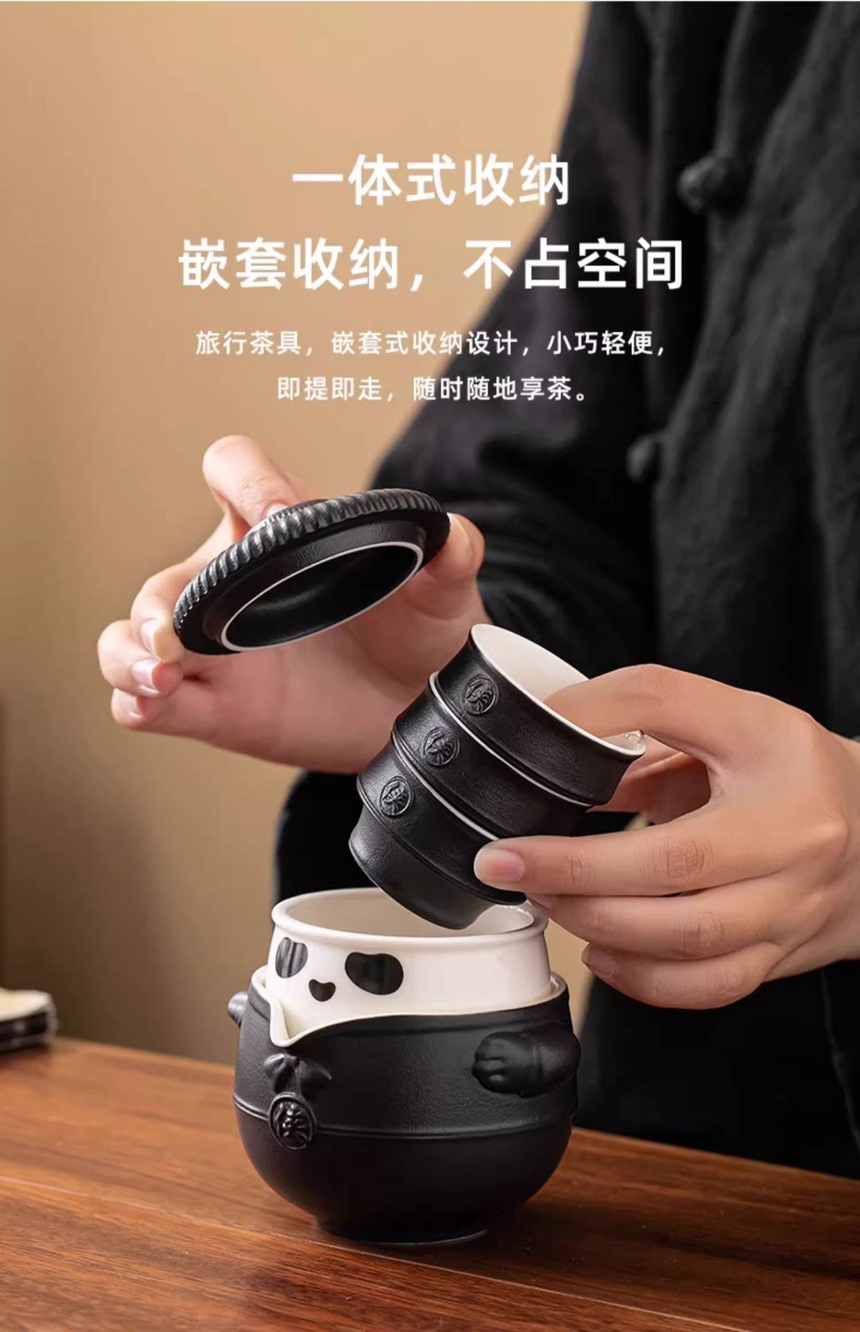 팬더 휴대용 여행 차 세트 작은 세트 간단한 야외 주전자 티 컵 섬세한 여성 캠핑 익스프레스 컵