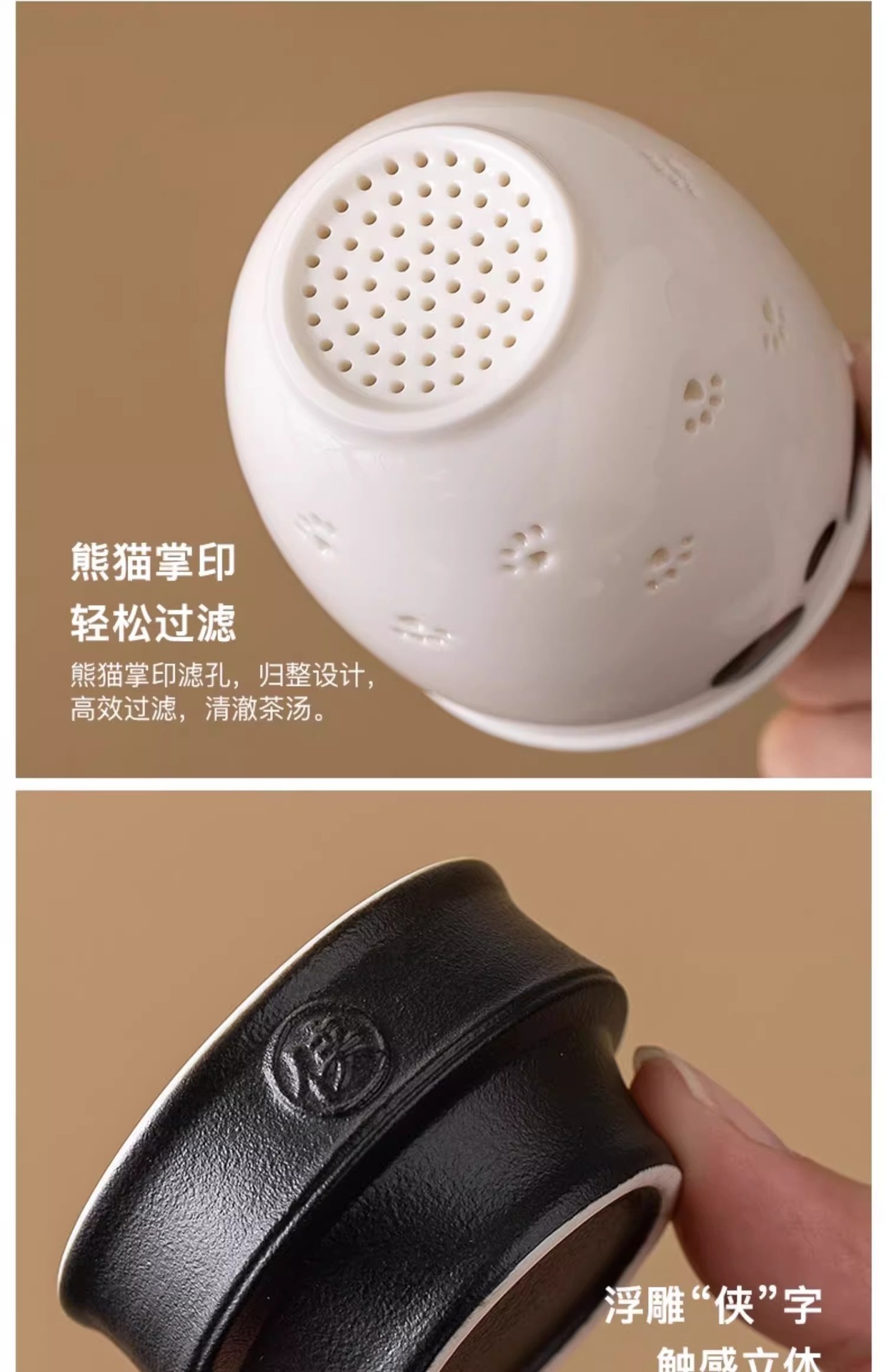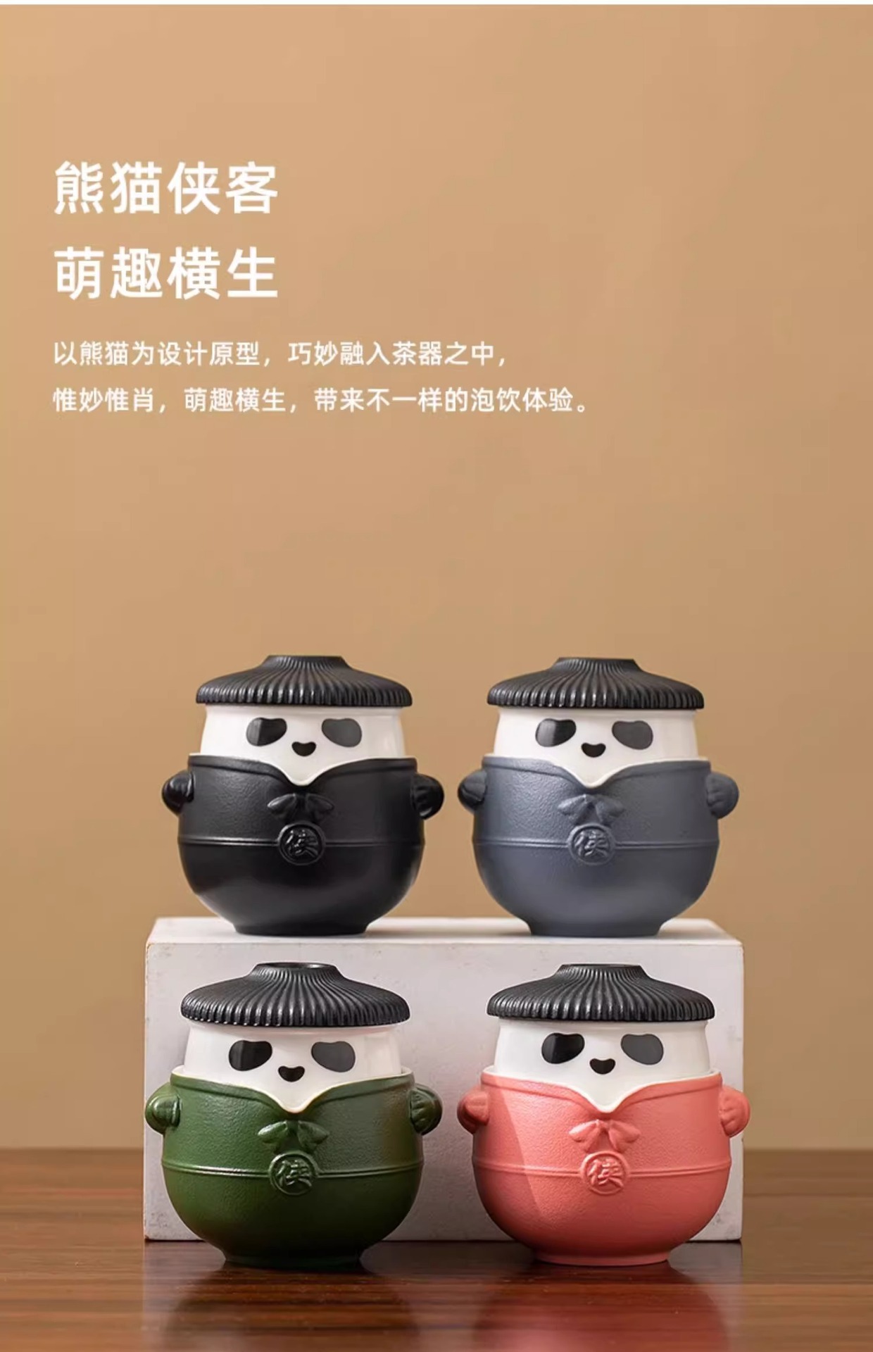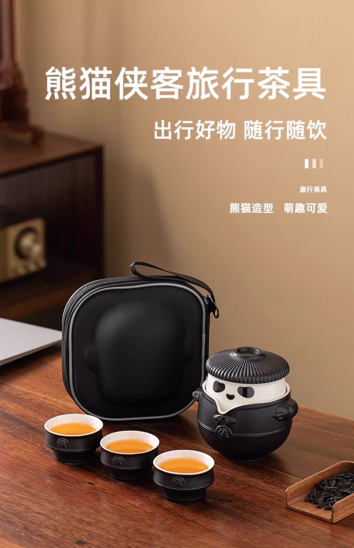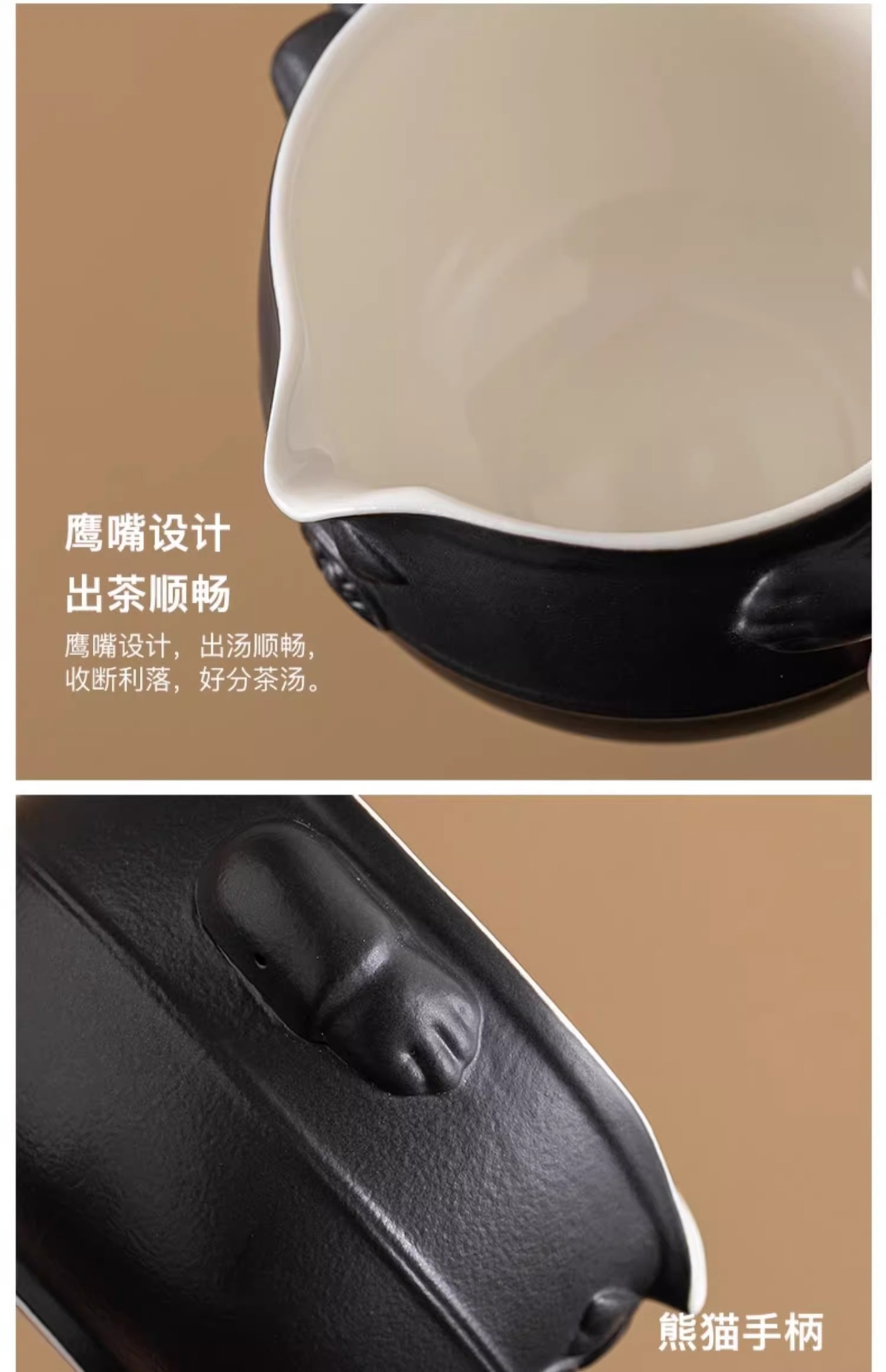 팬더 휴대용 여행 차 세트 작은 세트 간단한 야외 주전자 티 컵 섬세한 여성 캠핑 익스프레스 컵