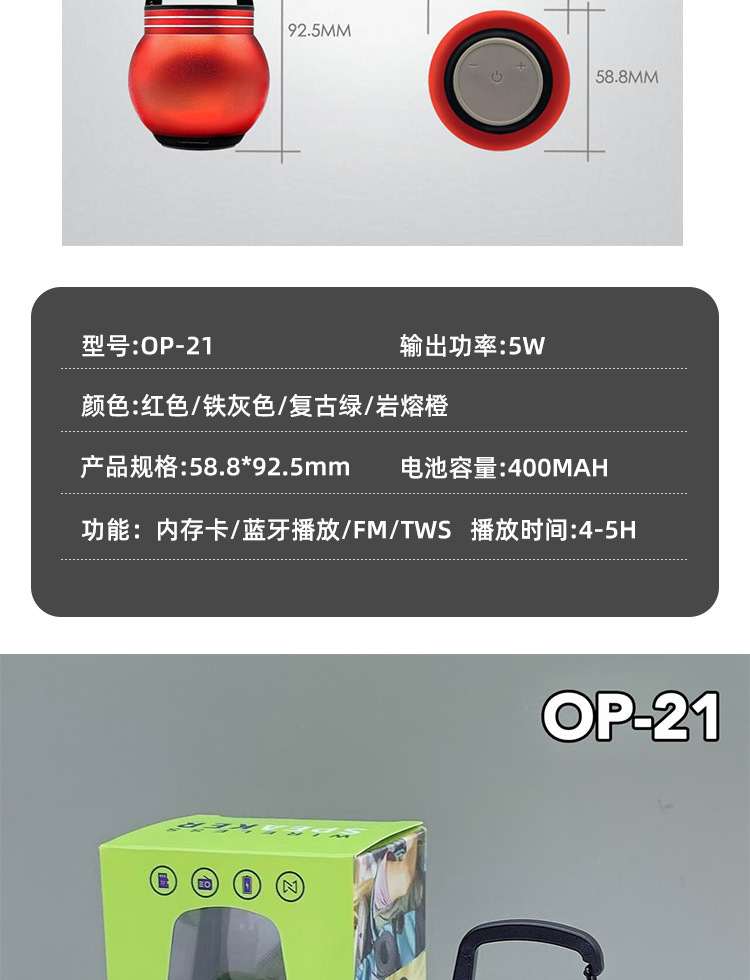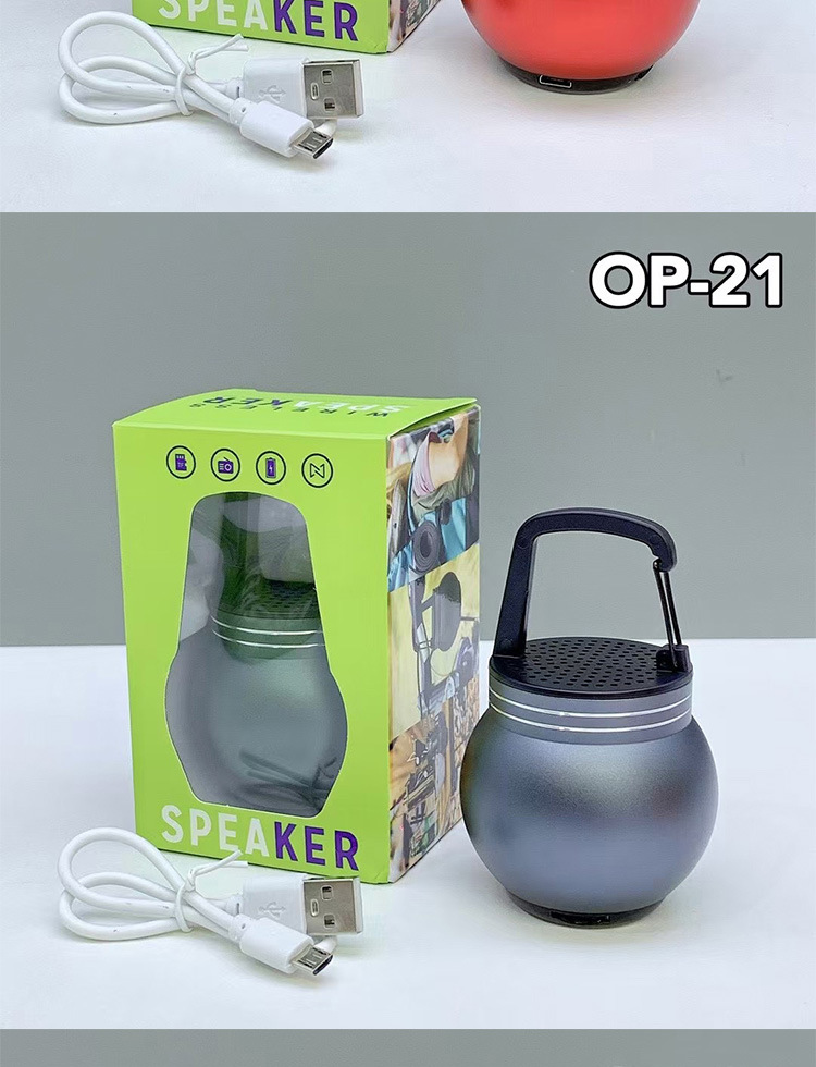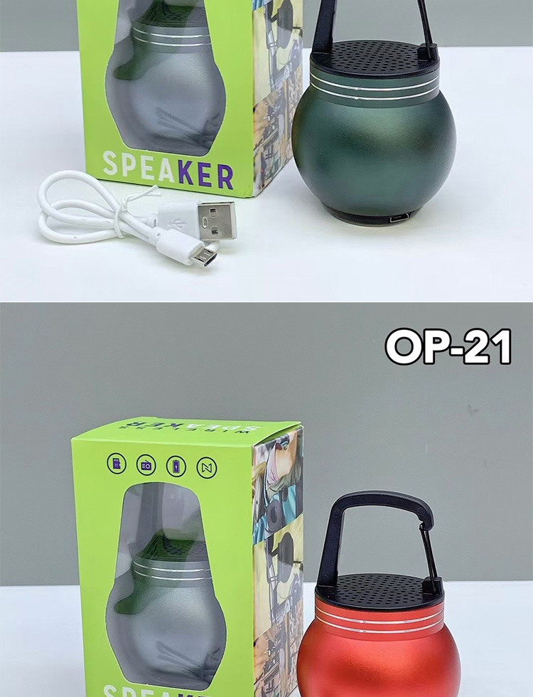 새로운 뜨거운 판매 OP-21 작은 강철 대포 무선 블루투스 스피커 야외 휴대용 후크 자전거 가방 미니 스피커