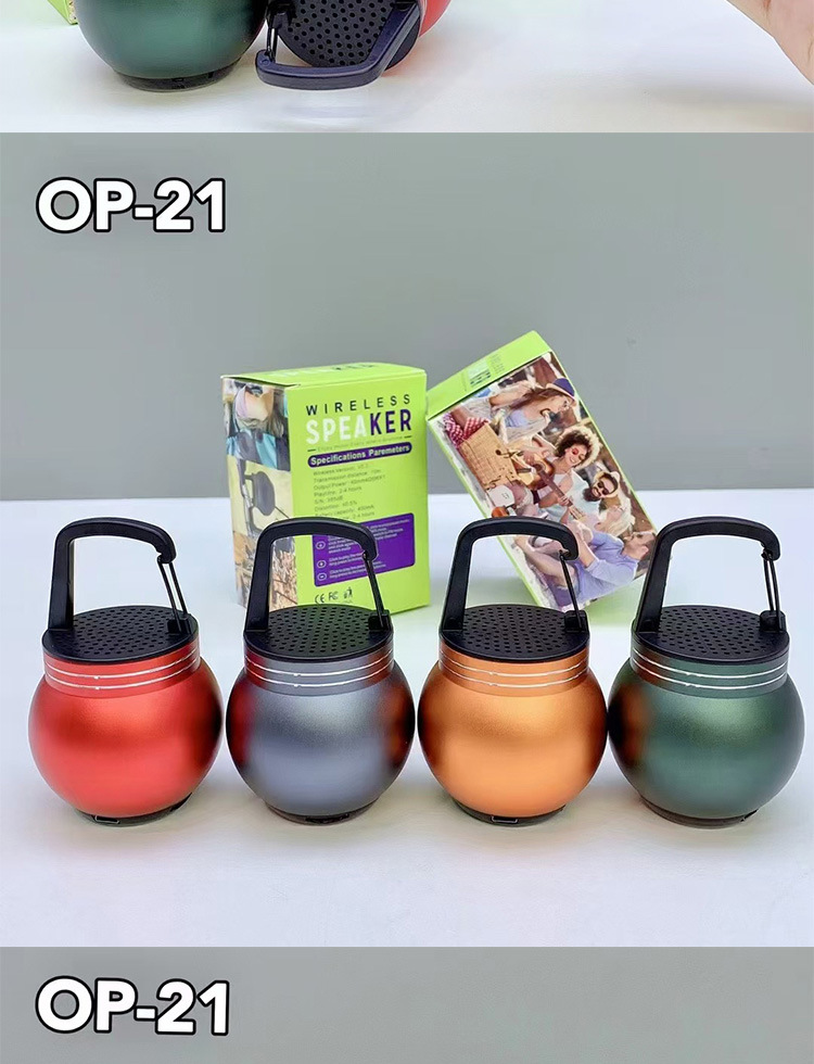 새로운 뜨거운 판매 OP-21 작은 강철 대포 무선 블루투스 스피커 야외 휴대용 후크 자전거 가방 미니 스피커스토어 가기