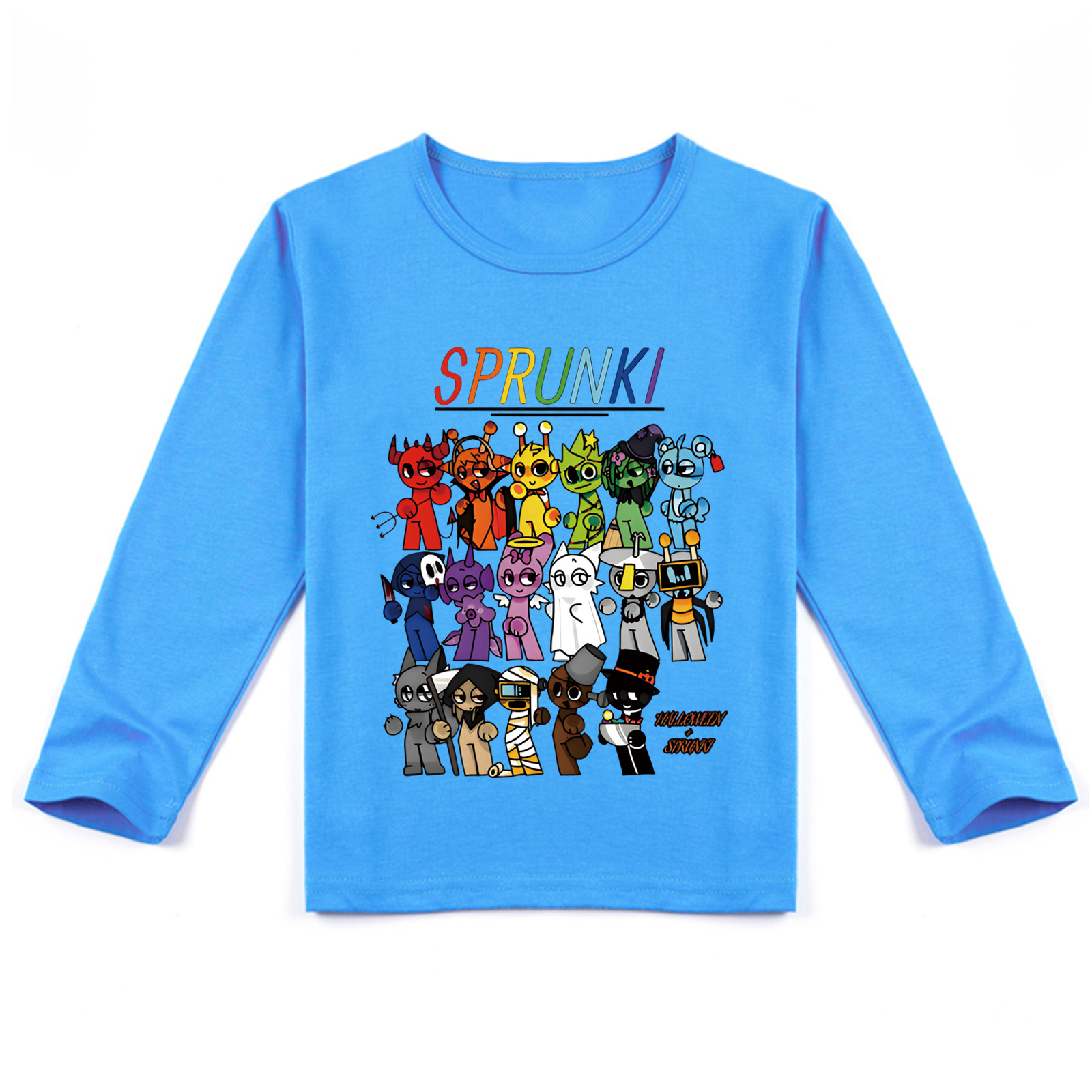 국경 간 전자 상거래 남성과 여성의 아동복 Sprunki 패션 만화 인쇄 긴 소매 티셔츠 Y1028스토어 가기