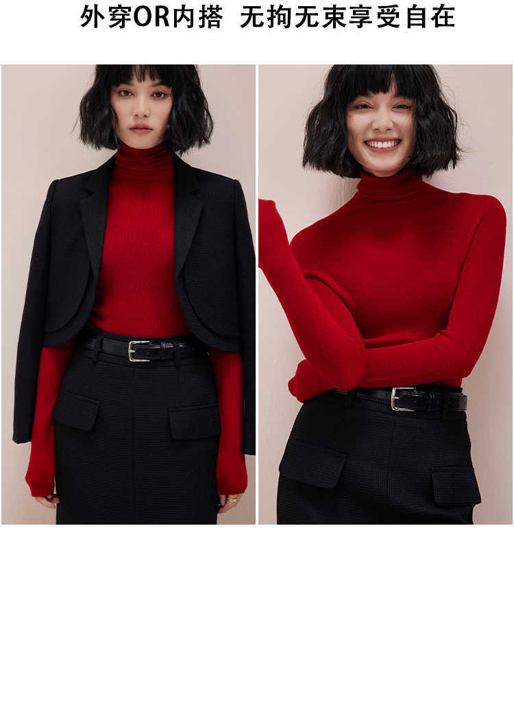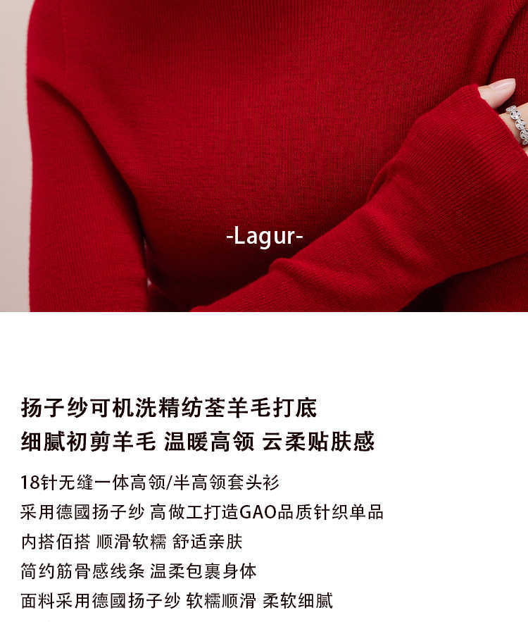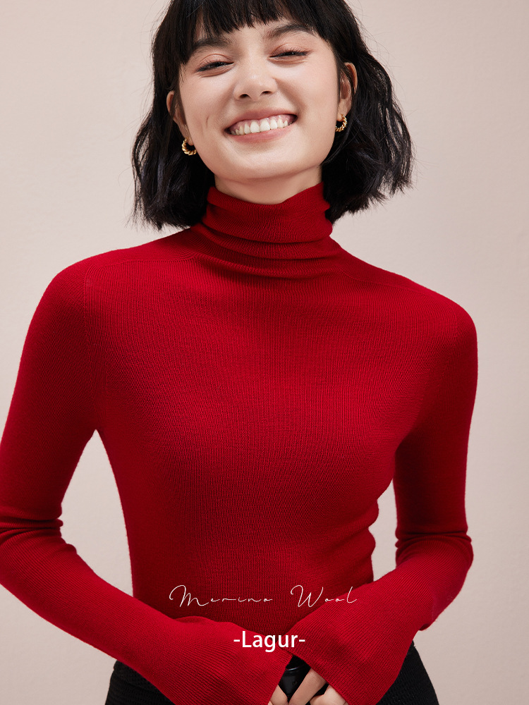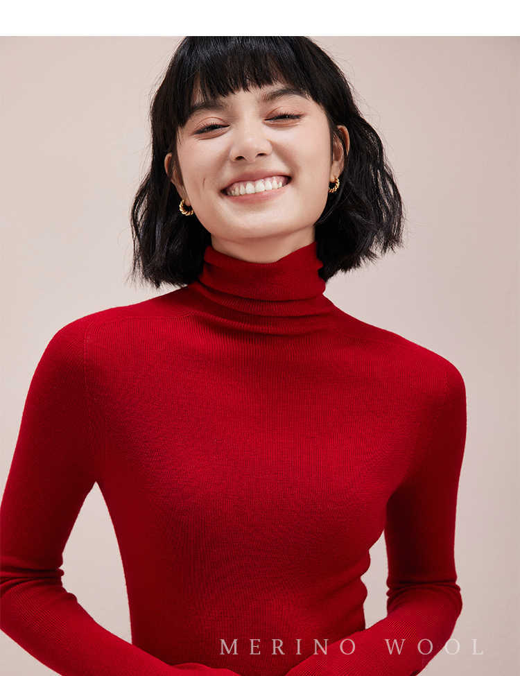 탑 산후 새해 레드 원활한 원피스 Yangzi 원사 100 울 스웨터 내부 레이어 여성 슬림 터틀넥 스웨터스토어 가기