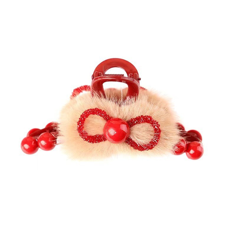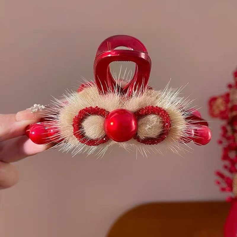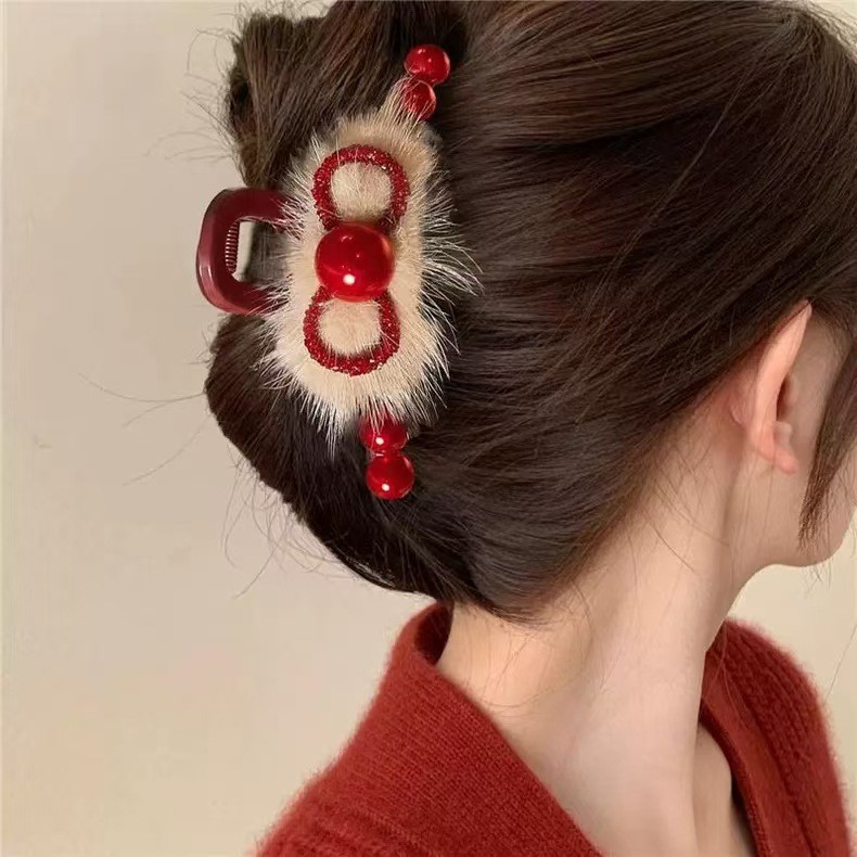 붉은 새해 분위기 봉제 백조 활 그랩 클립 여성용 하이 엔드 상어 클립 머리 머리핀