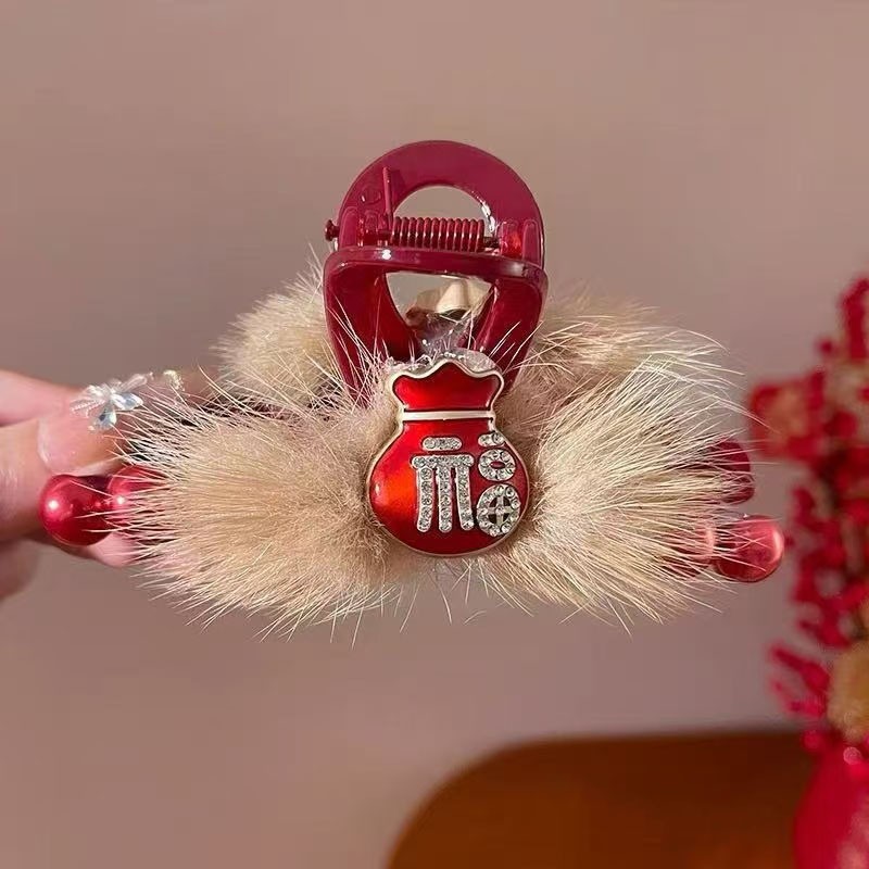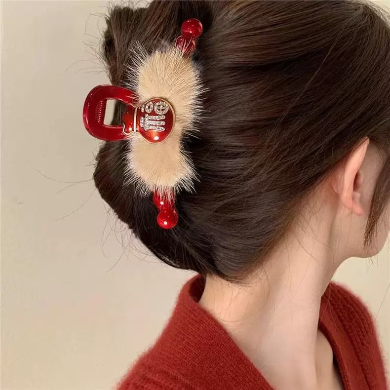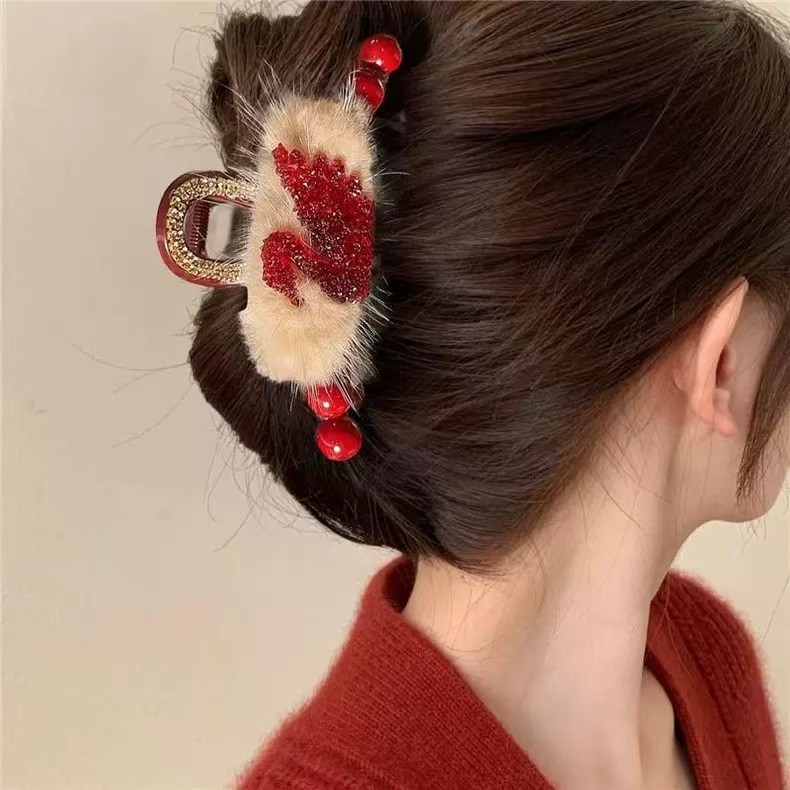 붉은 새해 분위기 봉제 백조 활 그랩 클립 여성용 하이 엔드 상어 클립 머리 머리핀스토어 가기