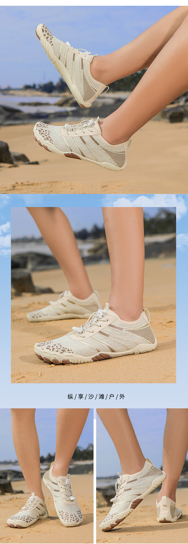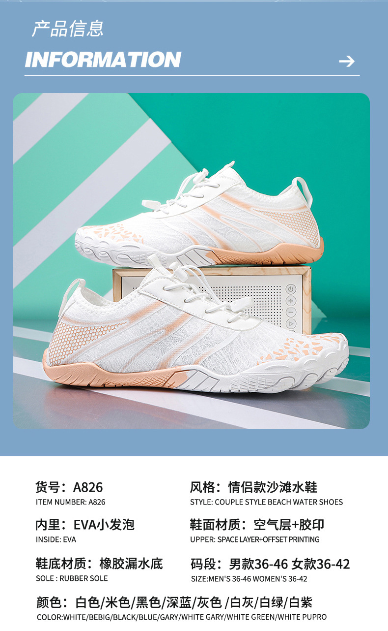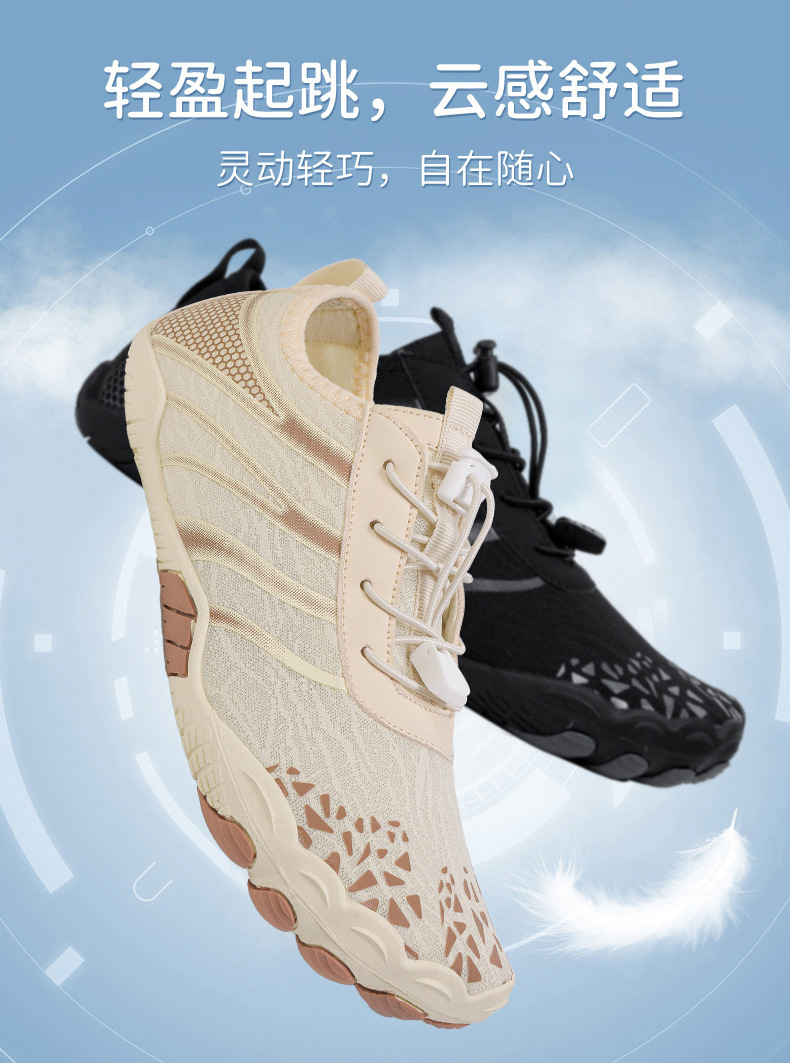 국경을 넘는 새로운 야외용 리버 트레이싱 슈즈, 가볍고 속건성 워터 슈즈, 커플 요가 피트니스 슈즈, 하이킹 및 등산용 다섯 손가락 슈즈