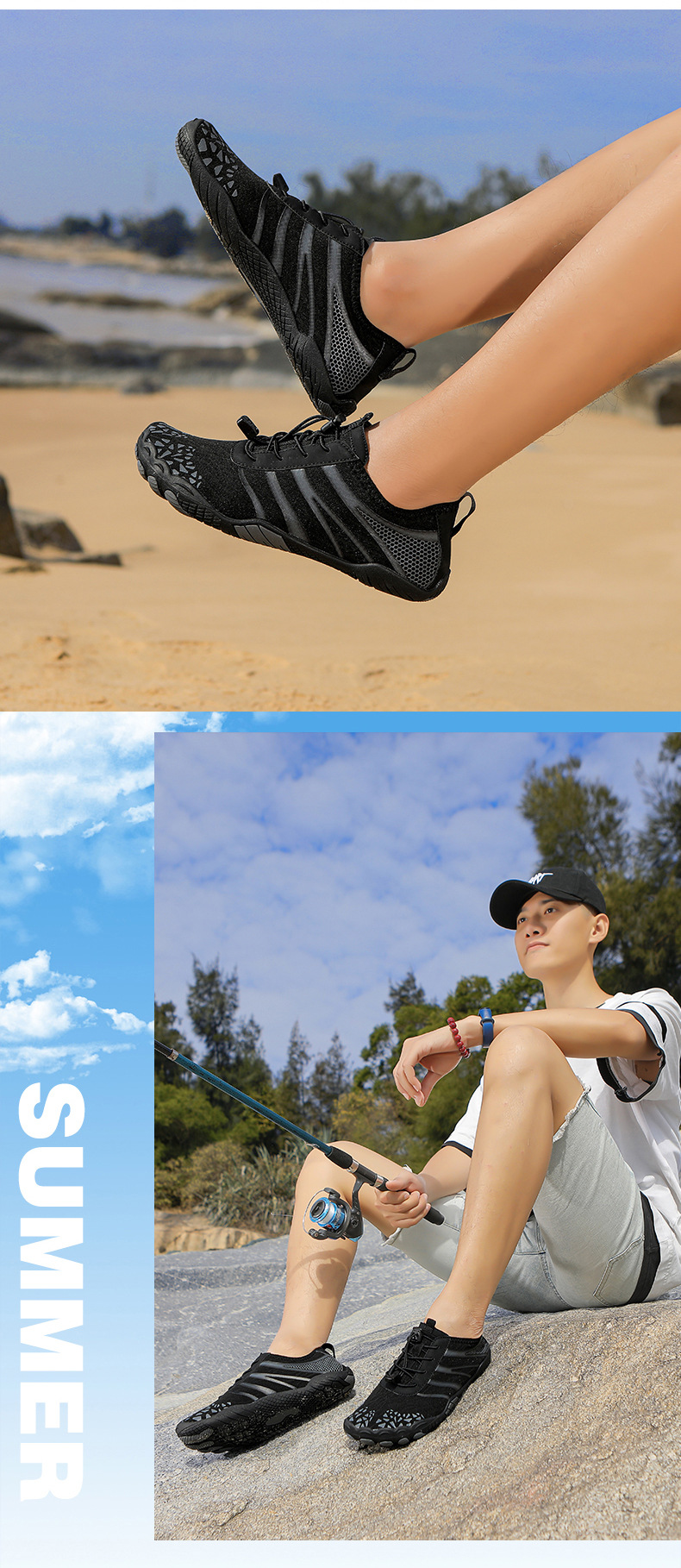 국경을 넘는 새로운 야외용 리버 트레이싱 슈즈, 가볍고 속건성 워터 슈즈, 커플 요가 피트니스 슈즈, 하이킹 및 등산용 다섯 손가락 슈즈스토어 가기