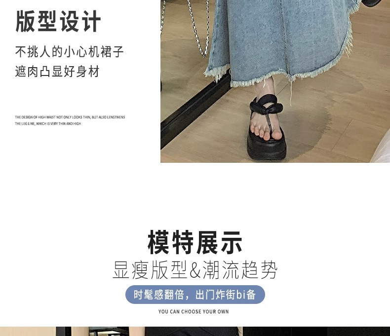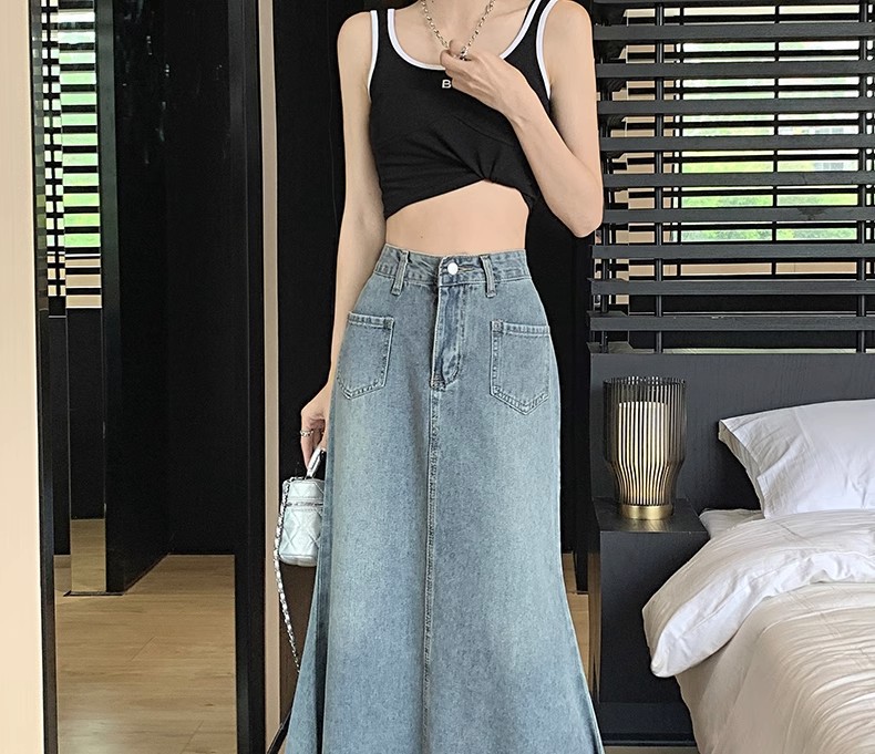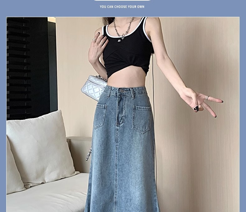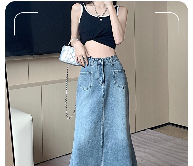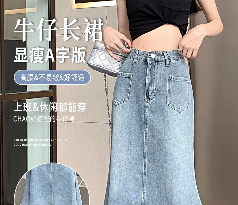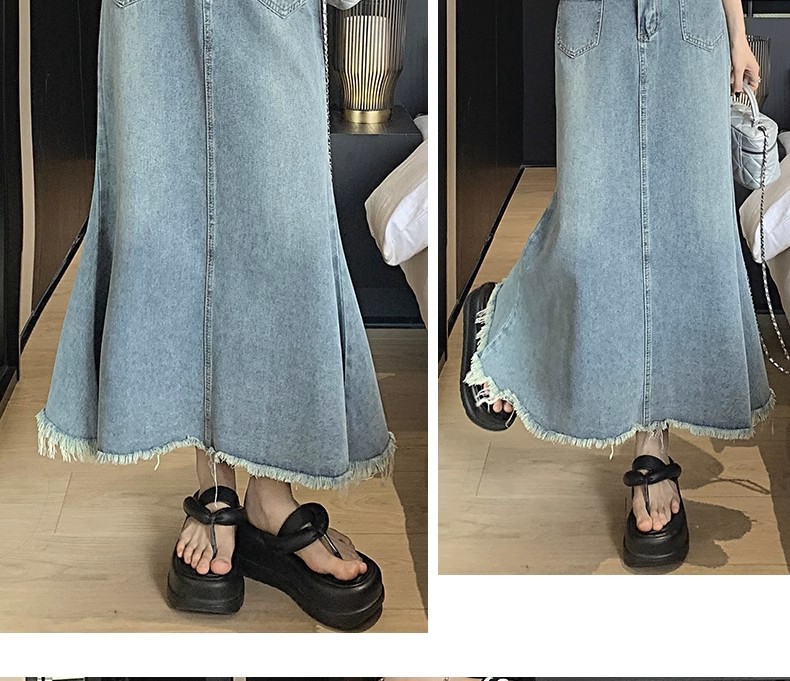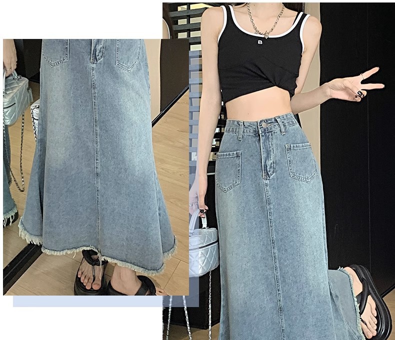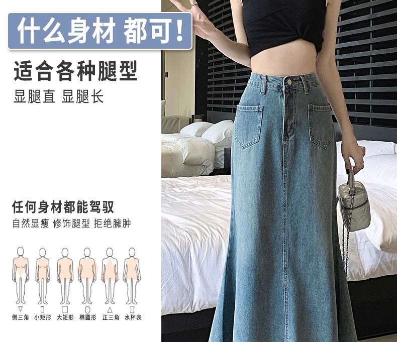녹을 가진 데님 치마 여자 중간 길이의 피쉬 스커트 높은 허리 슬리밍 A-라인 플러스 사이즈 핫 힙 롱 스커트스토어 가기