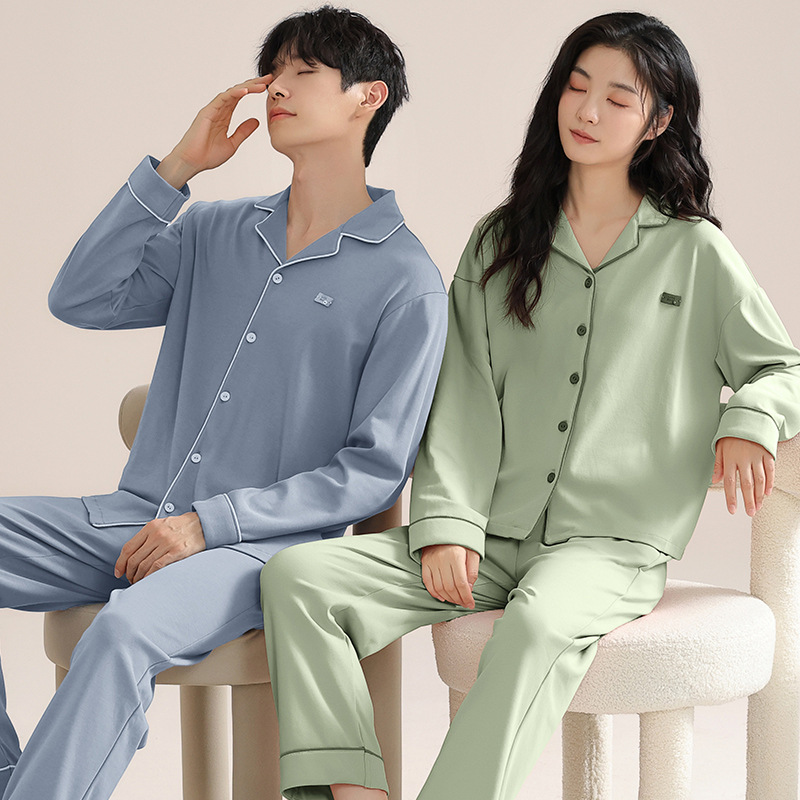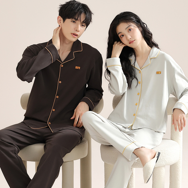 커플 잠옷 여성의 2025 새로운 가을과 겨울 남자 순면 100 면 긴 소매 여성용 홈 의류 세트