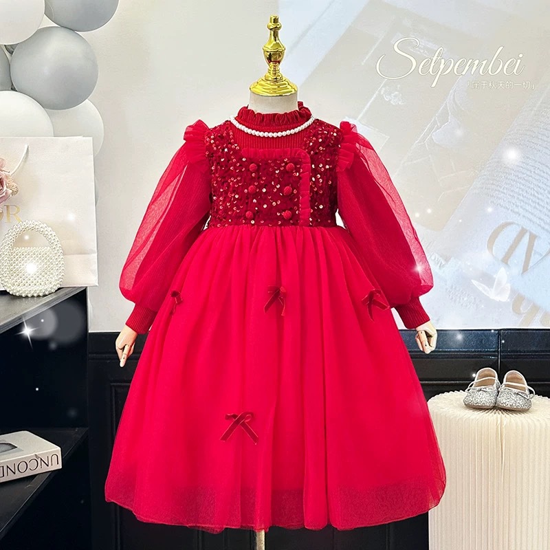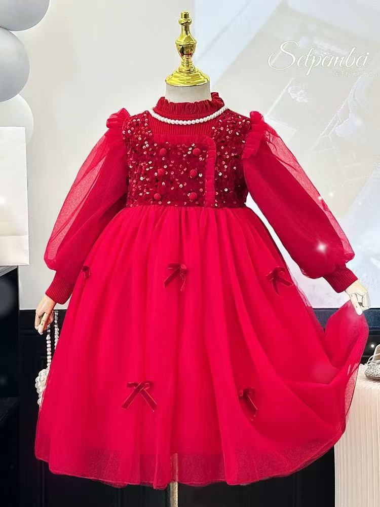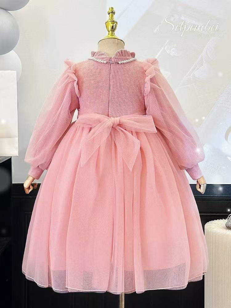 여자 샤넬 스타일 기모 원피스 2024 가을과 겨울 새로운 서양 스타일 하이 엔드 느낌 아기 소녀 속편 공주 원피스스토어 가기