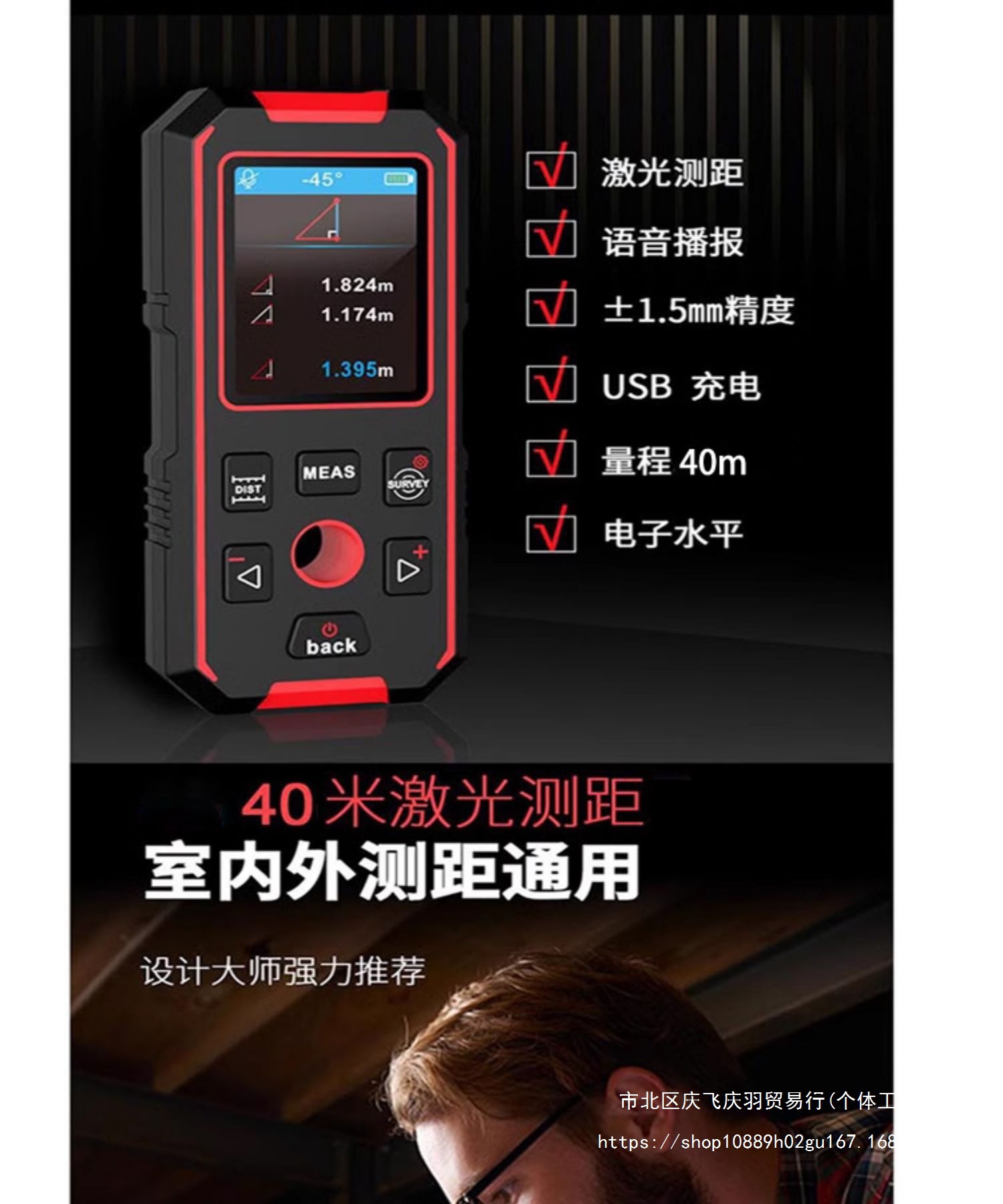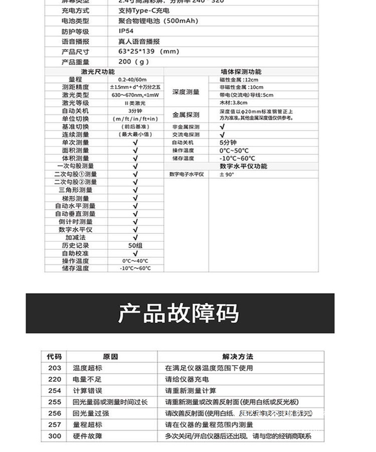 • 2 및 1 벽 감지기 + 거리 측정기 일체형 기계