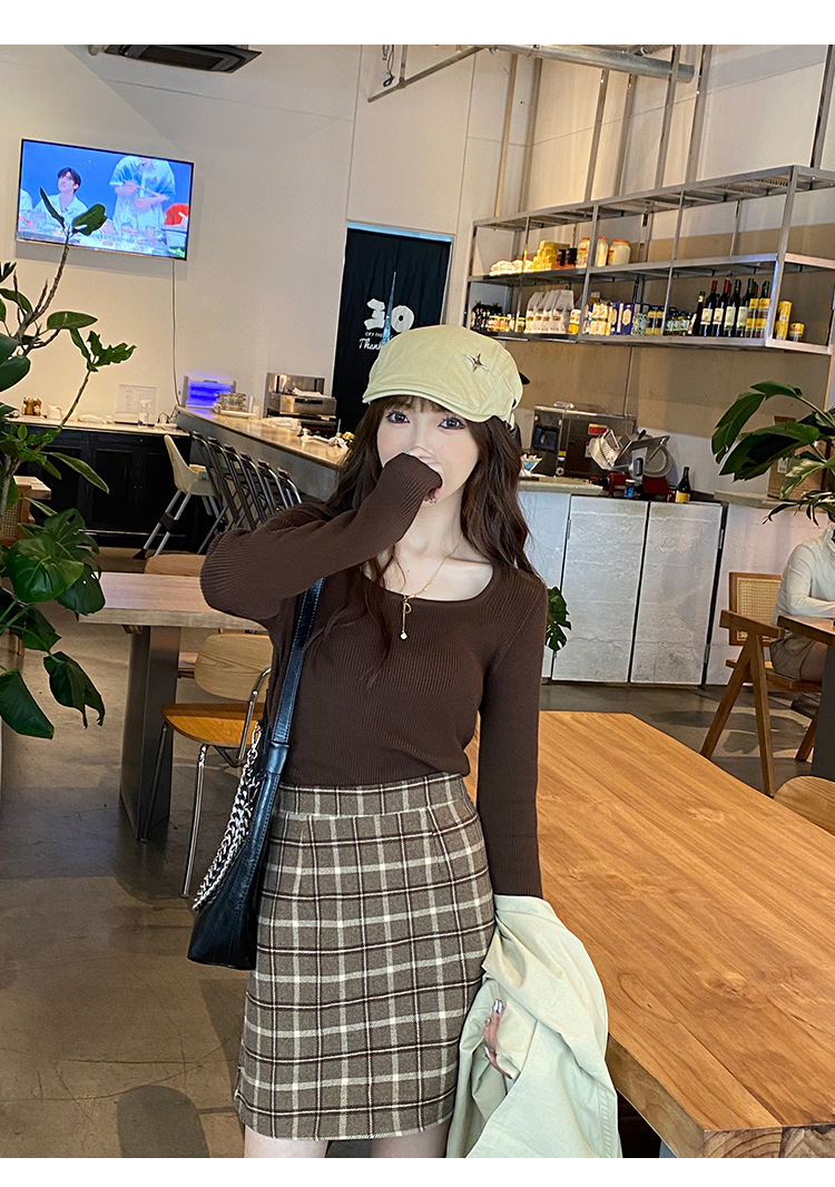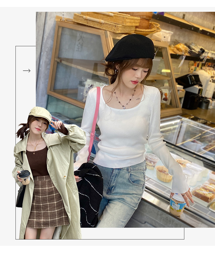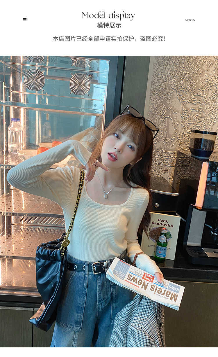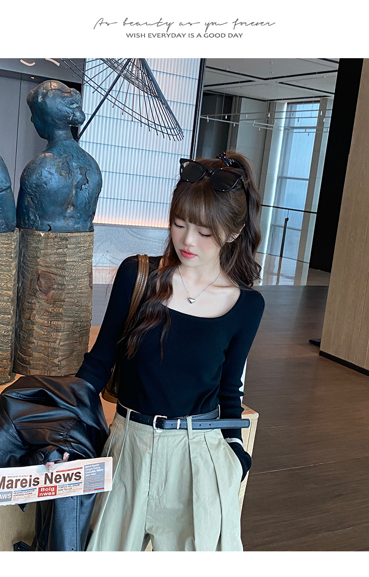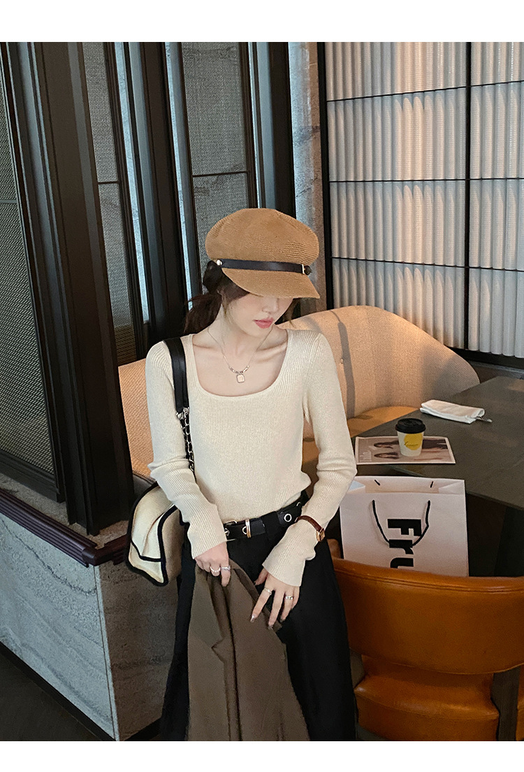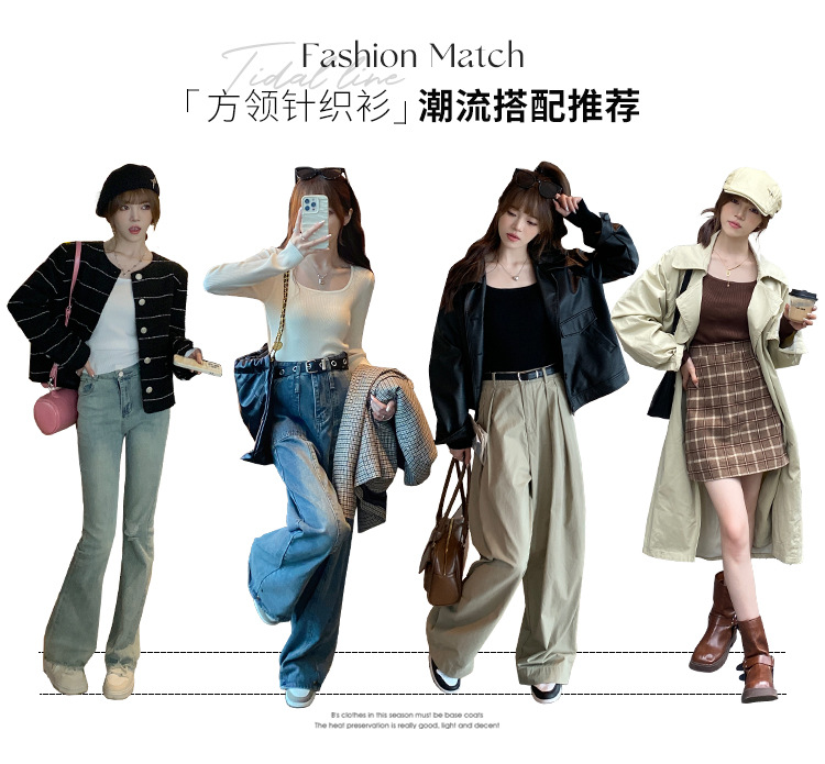스퀘어 칼라 니트 스웨터 여성용 2025 봄 서양식 내부 기본 스웨터 슬림핏 핫 걸스 슬림핏 베이스 셔츠 탑스토어 가기