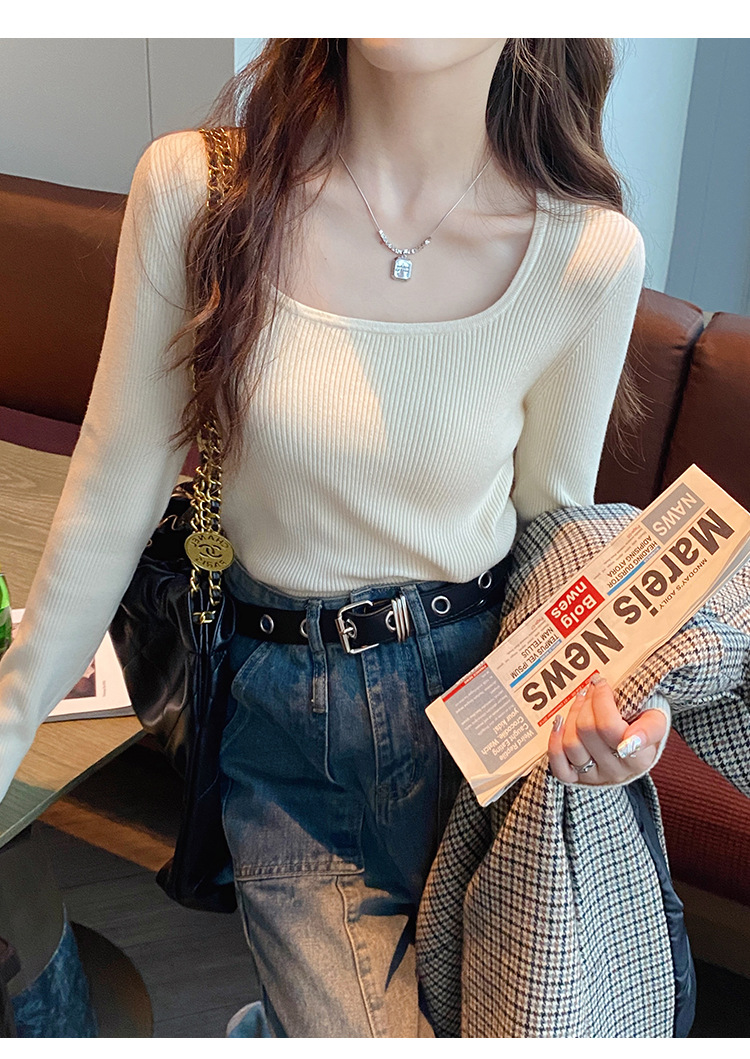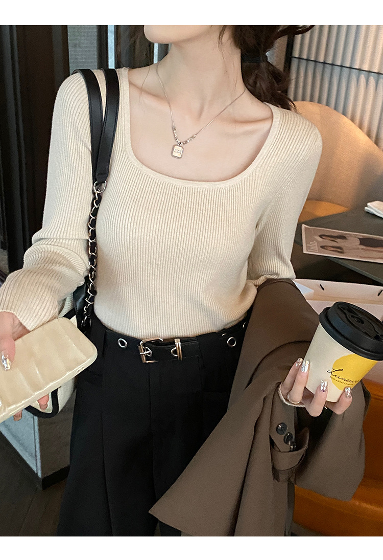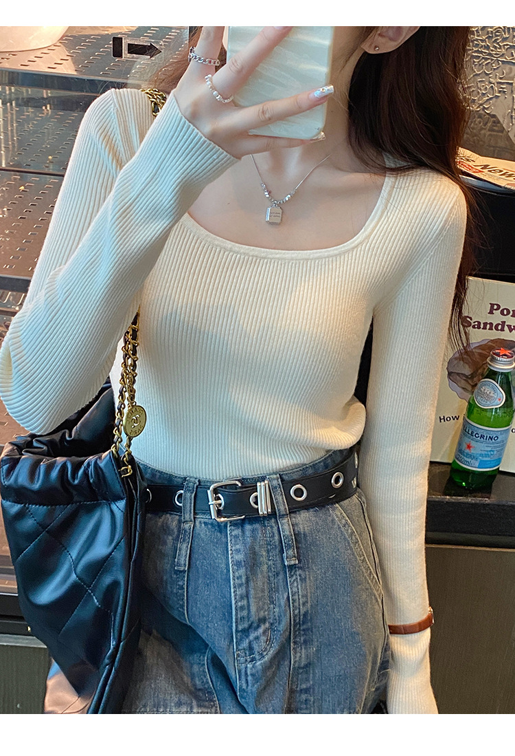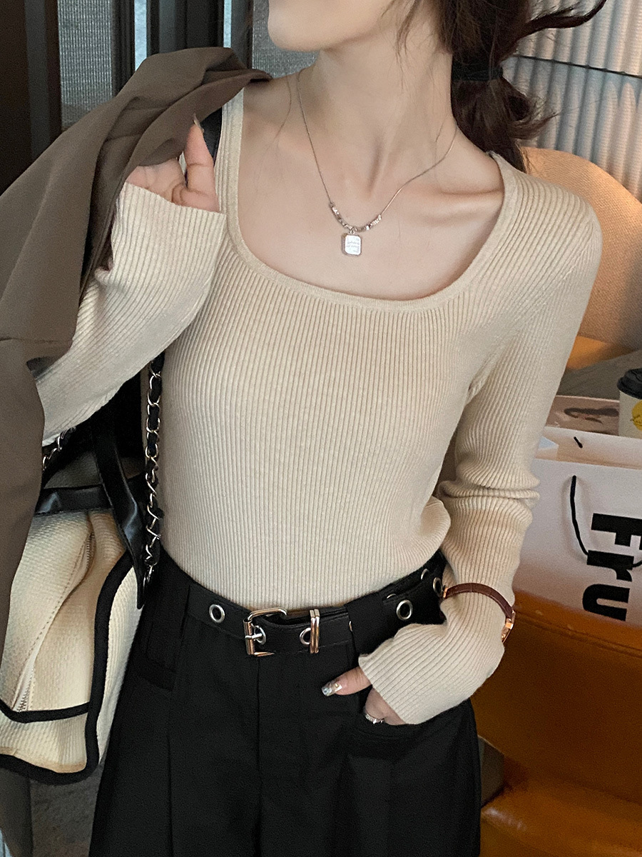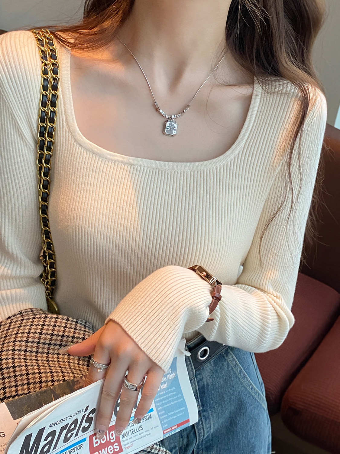 스퀘어 칼라 니트 스웨터 여성용 2025 봄 서양식 내부 기본 스웨터 슬림핏 핫 걸스 슬림핏 베이스 셔츠 탑