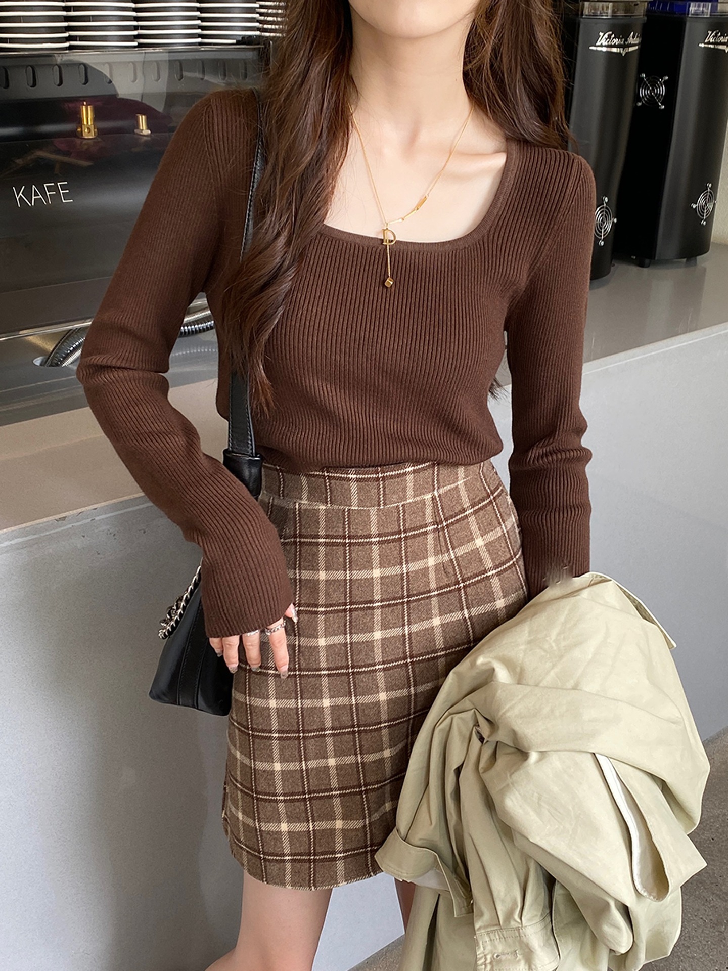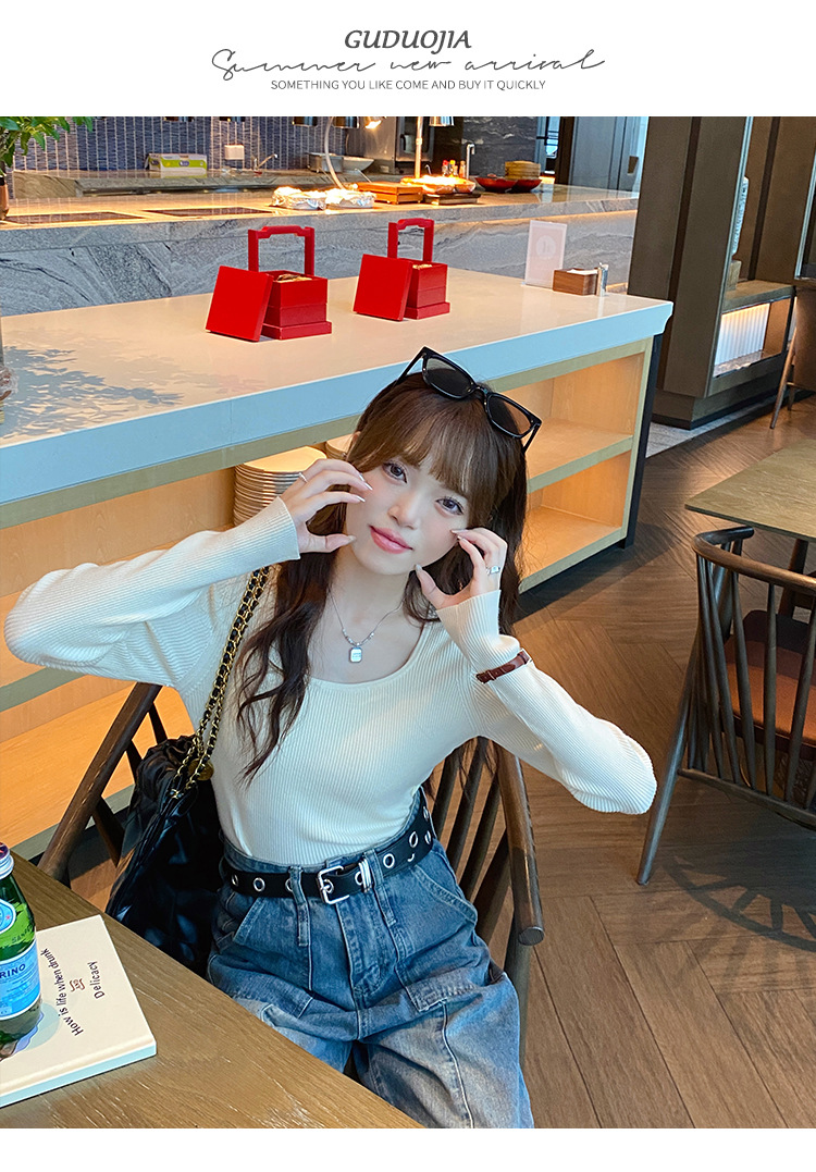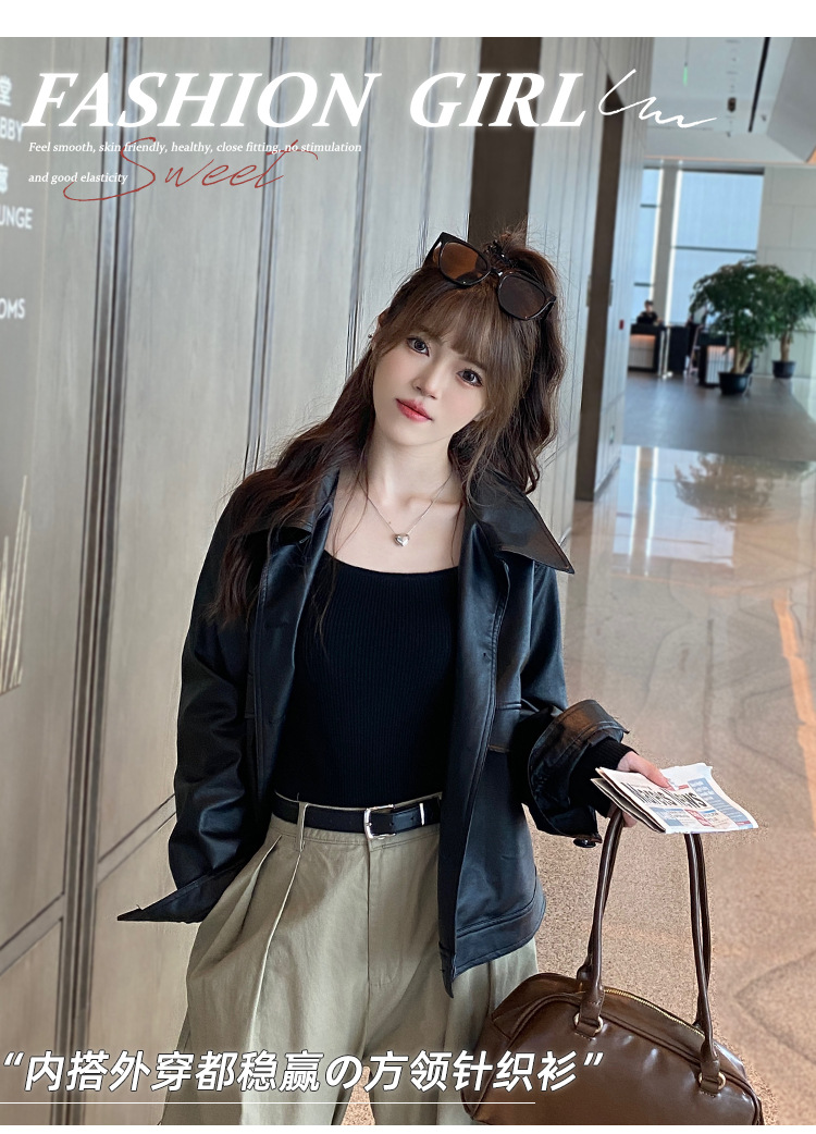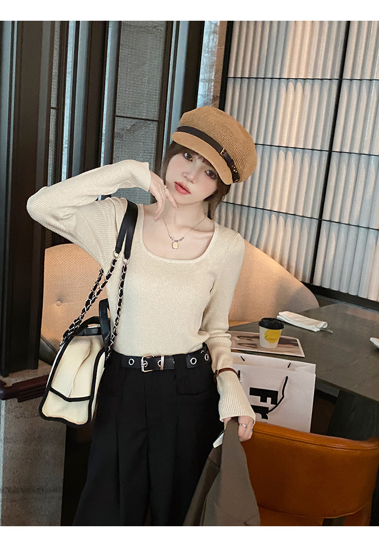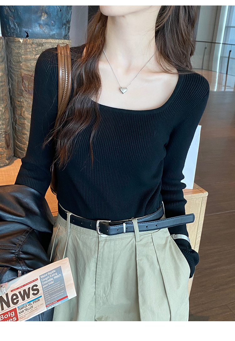 스퀘어 칼라 니트 스웨터 여성용 2025 봄 서양식 내부 기본 스웨터 슬림핏 핫 걸스 슬림핏 베이스 셔츠 탑