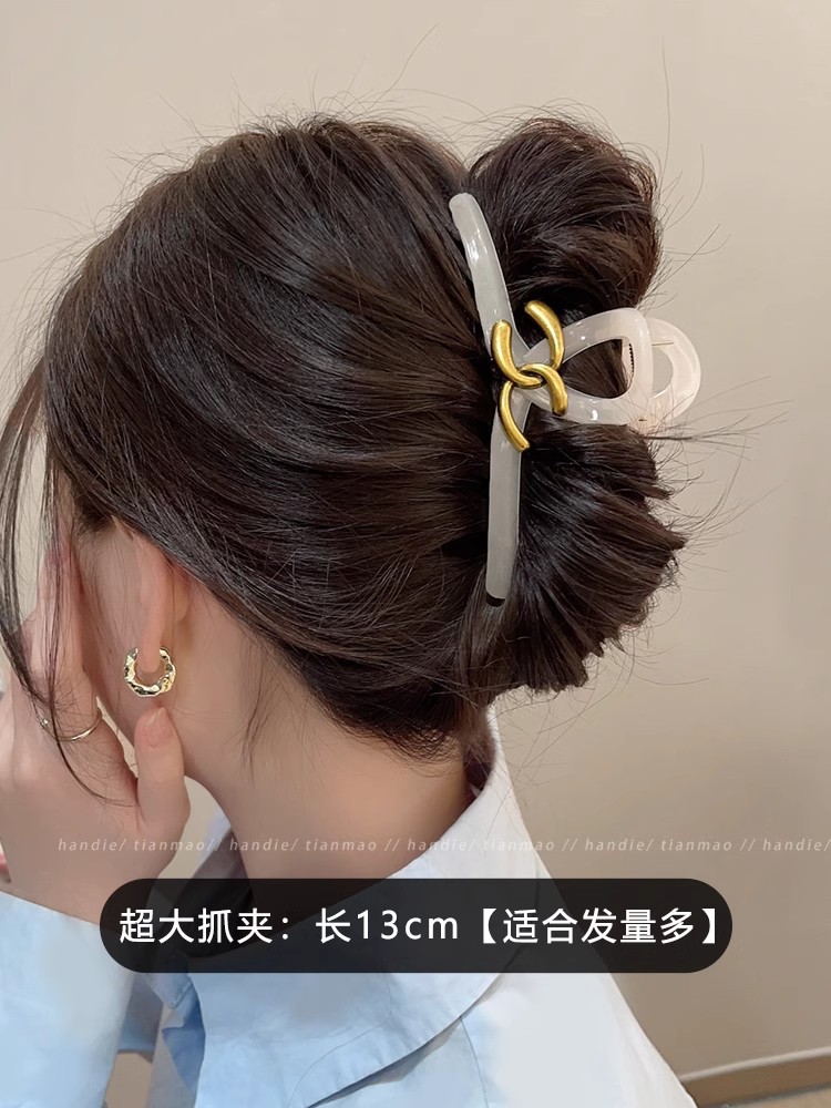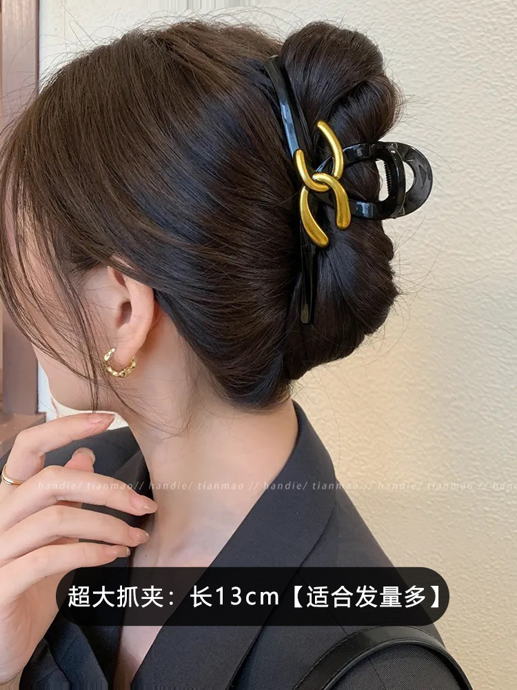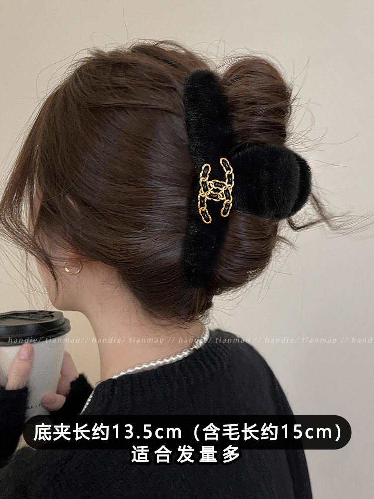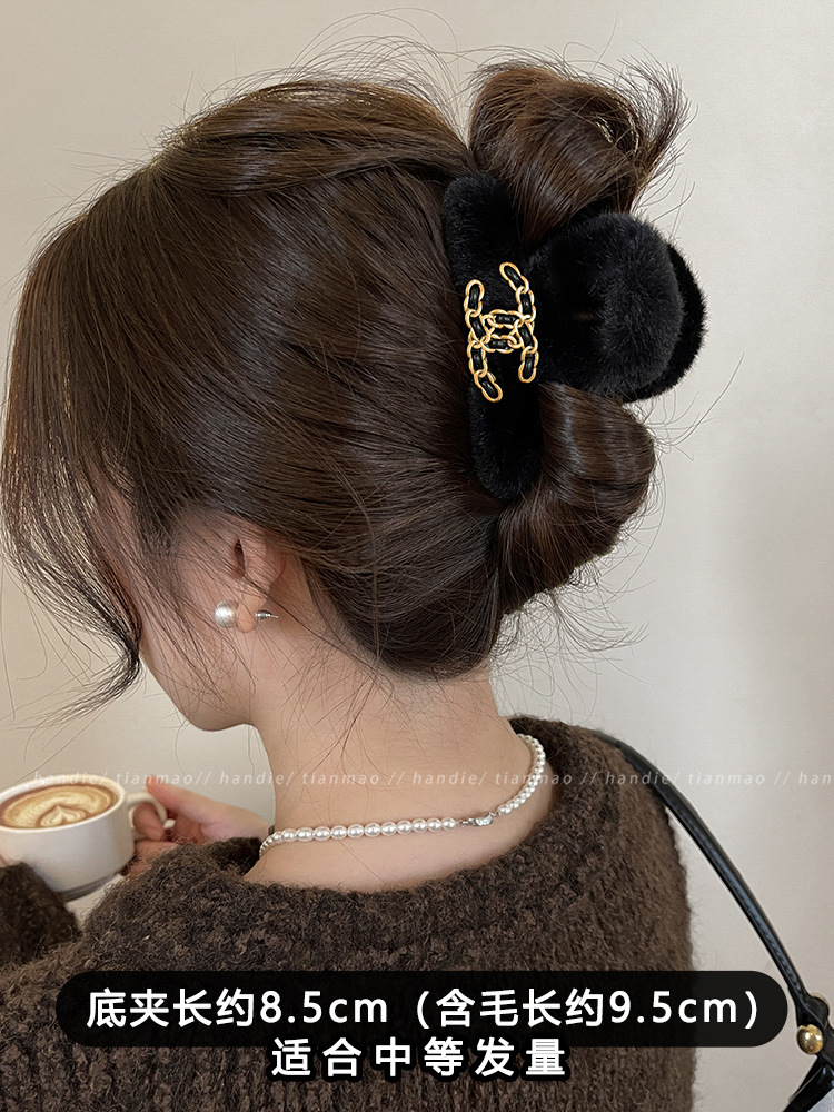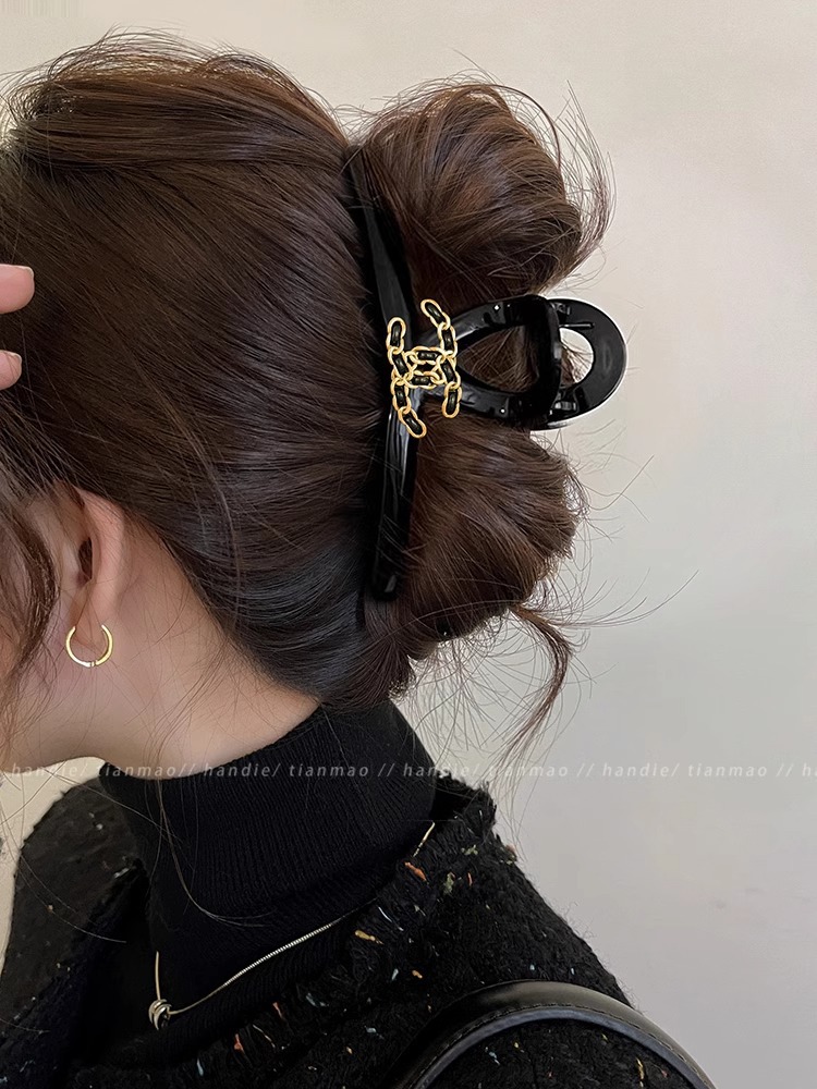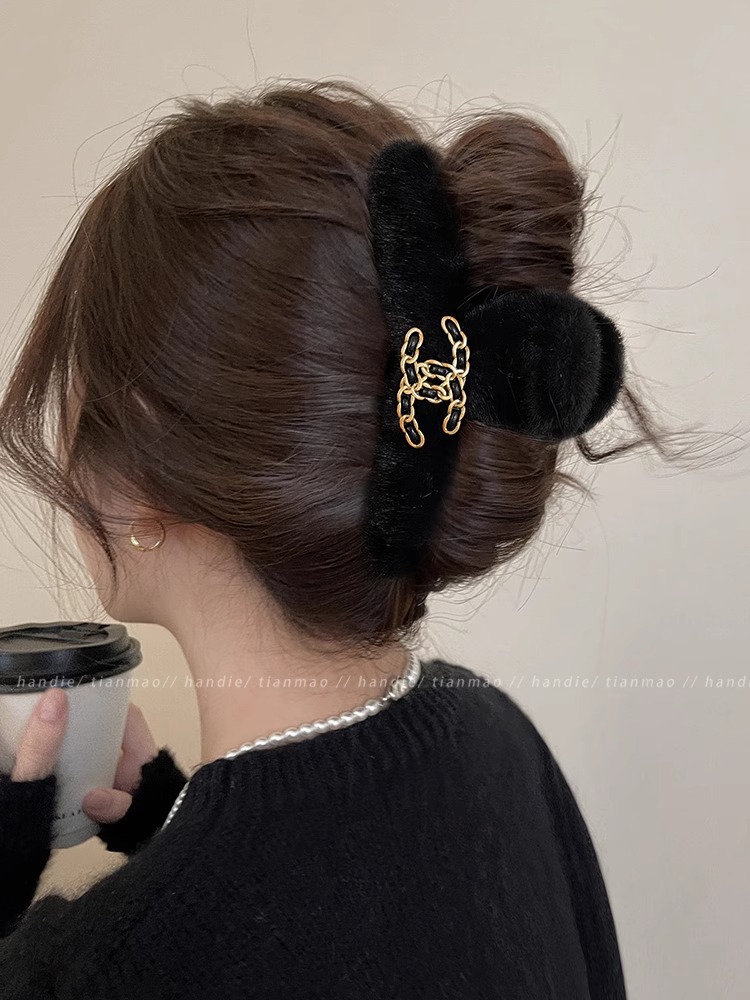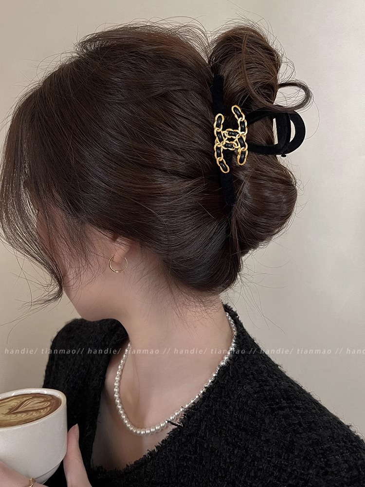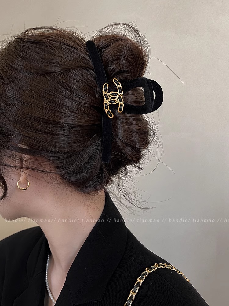 가벼운 럭셔리 샤넬 스타일 잡아 클립 여성용 2024 새로운 가을과 겨울 하이 엔드 블랙 상어 클립 헤어 클립 헤어 액세서리스토어 가기