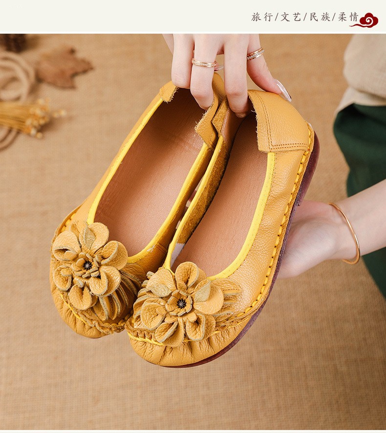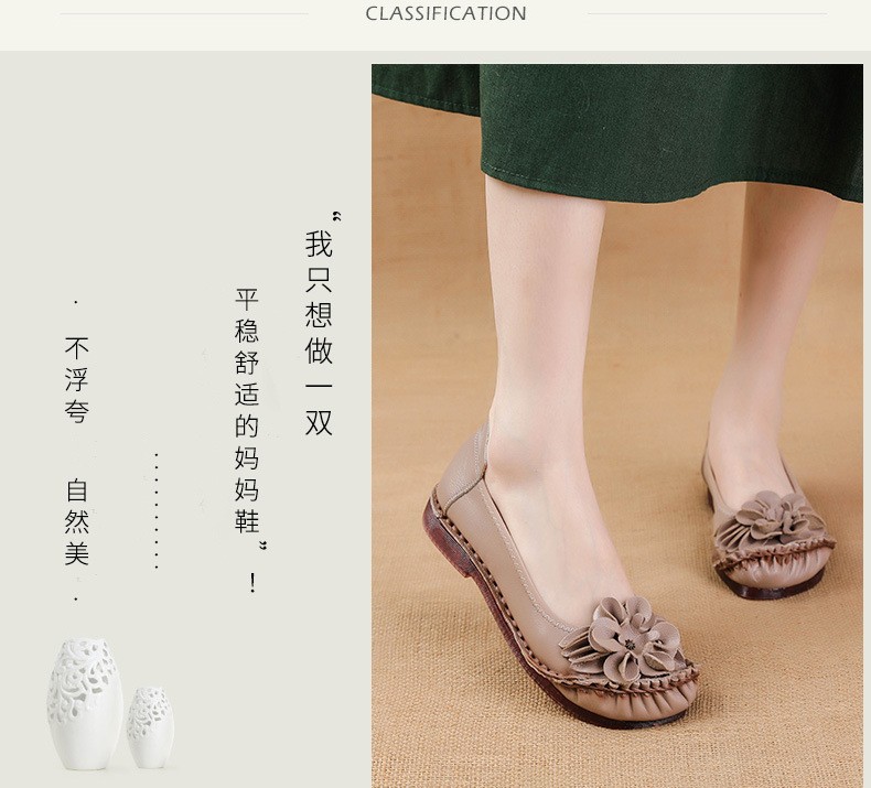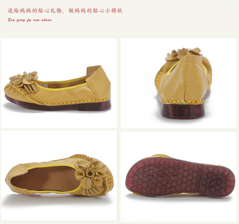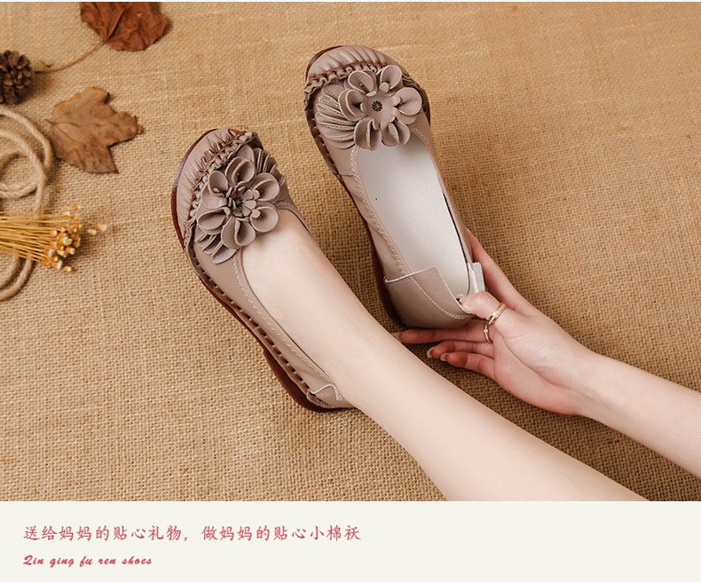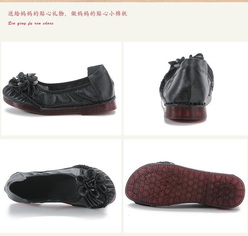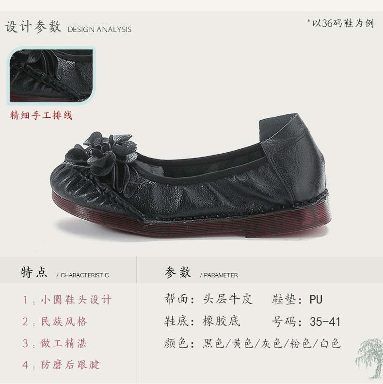 탑 레이어 소 가죽 여름 새로운 부드러운 바닥 소 힘줄 밑창 여성 신발 민족 스타일 꽃 정품 가죽 신발 중년 및 노인 어머니 신발스토어 가기