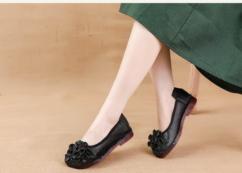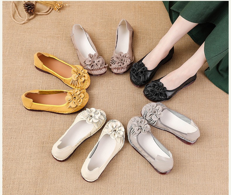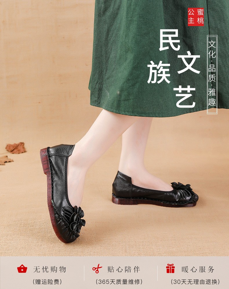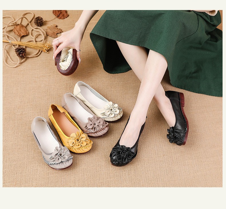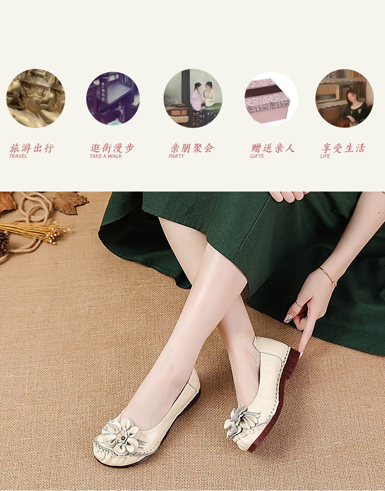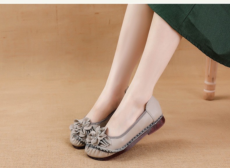 탑 레이어 소 가죽 여름 새로운 부드러운 바닥 소 힘줄 밑창 여성 신발 민족 스타일 꽃 정품 가죽 신발 중년 및 노인 어머니 신발스토어 가기
