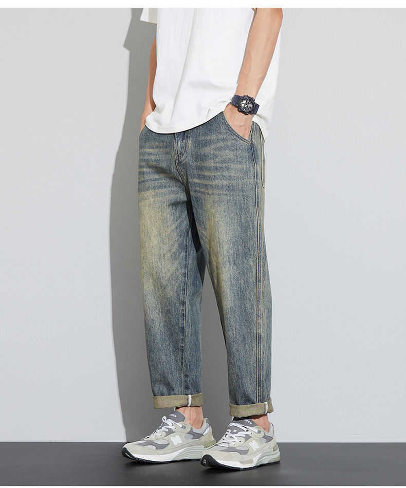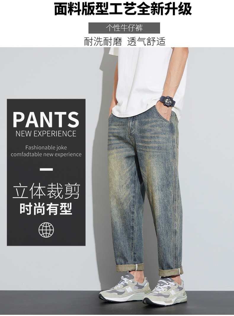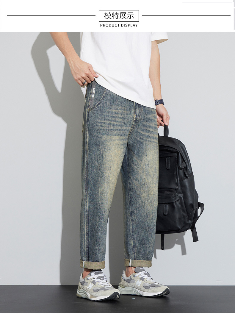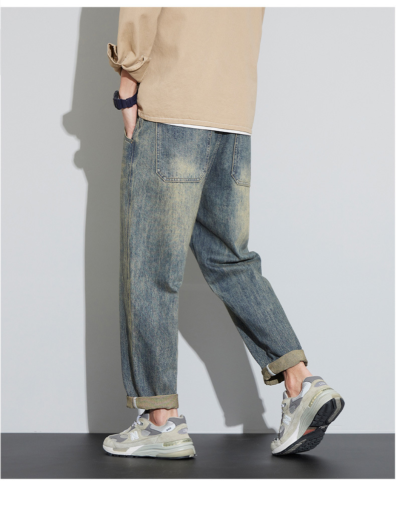 아메리칸 스타일 하이 스트리트 레트로 레트로 향수 블루 청바지 남자 스트레이트 루즈 니치 라이트 럭셔리 트렌디 올 매치 여름스토어 가기