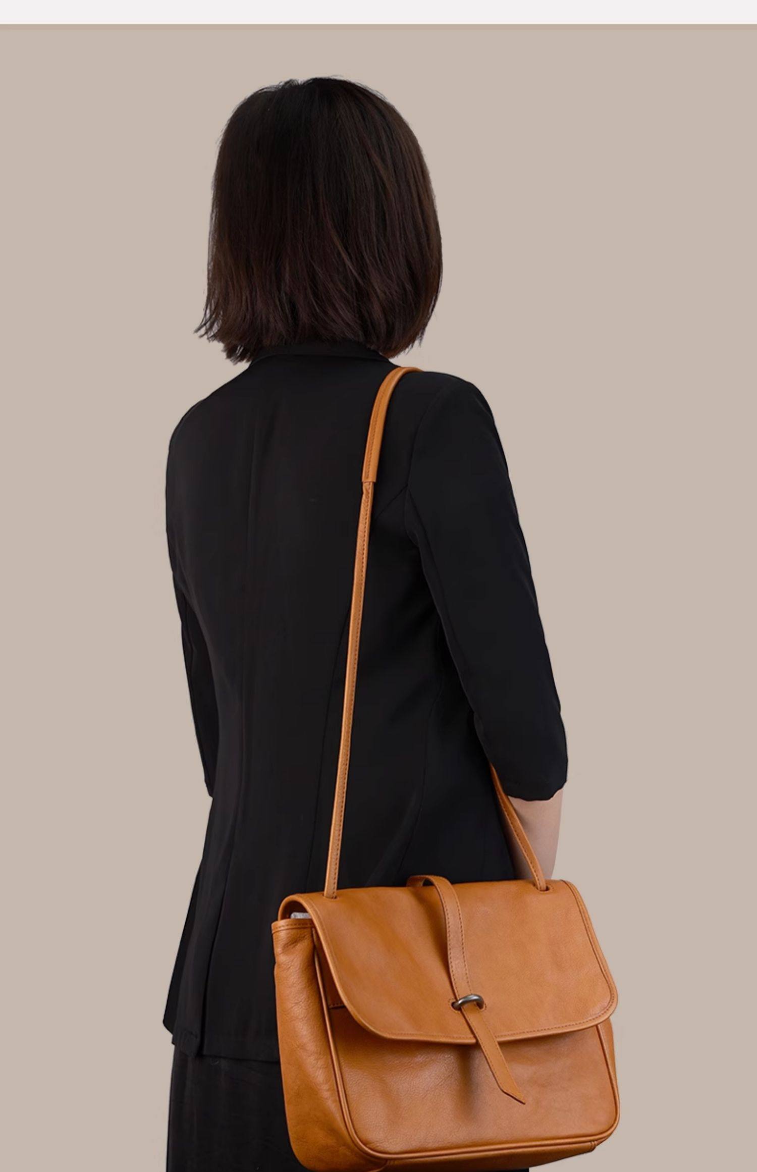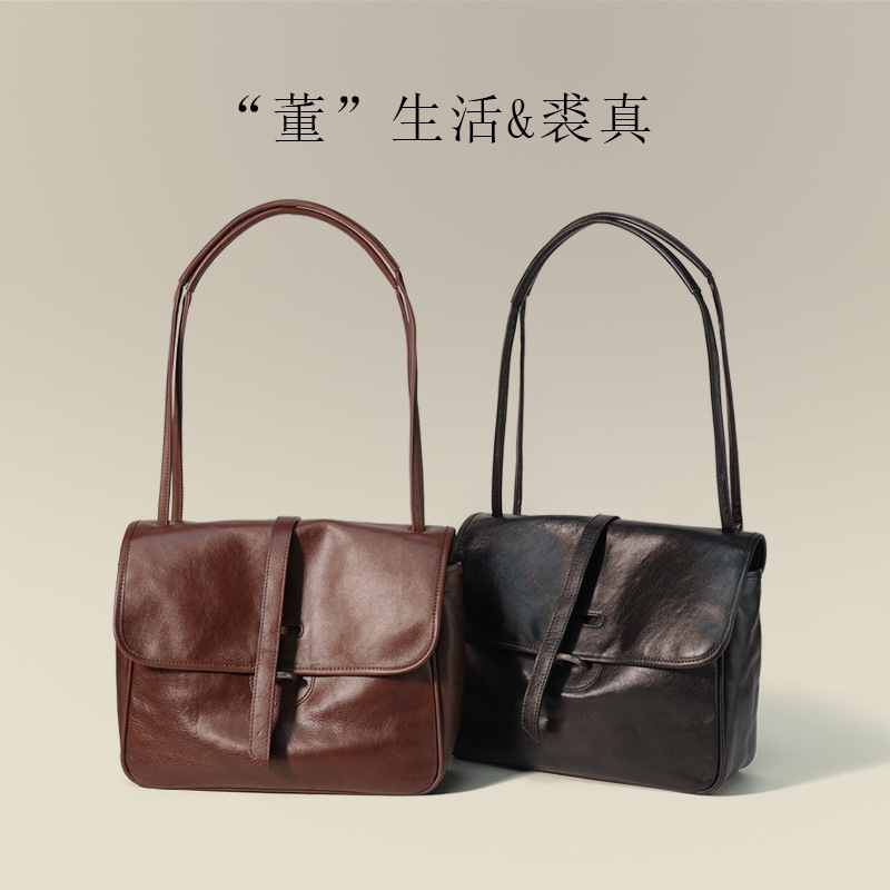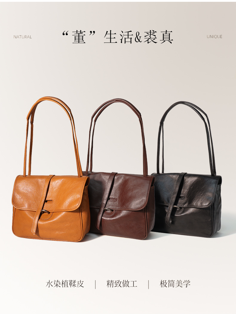 Qiu Zhen Messager 가방 Cowhide 어깨 토트 백 통근 대형 가방 대용량 정품 가죽 여성용 가방