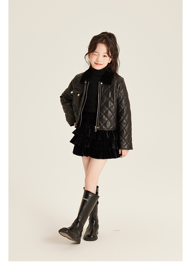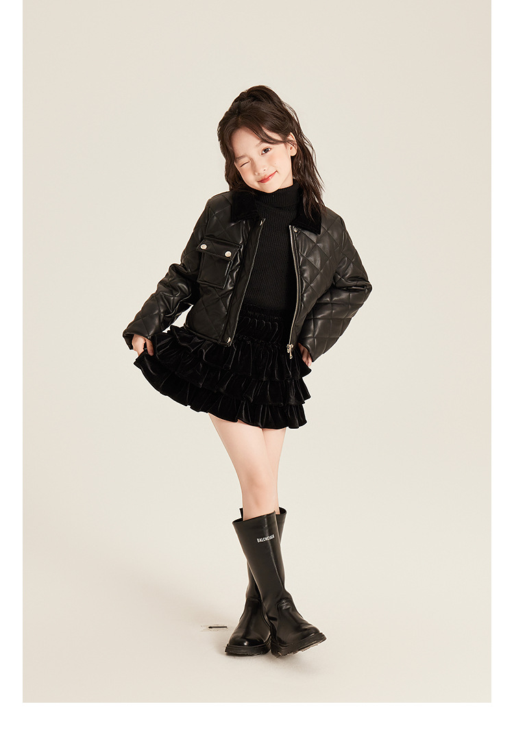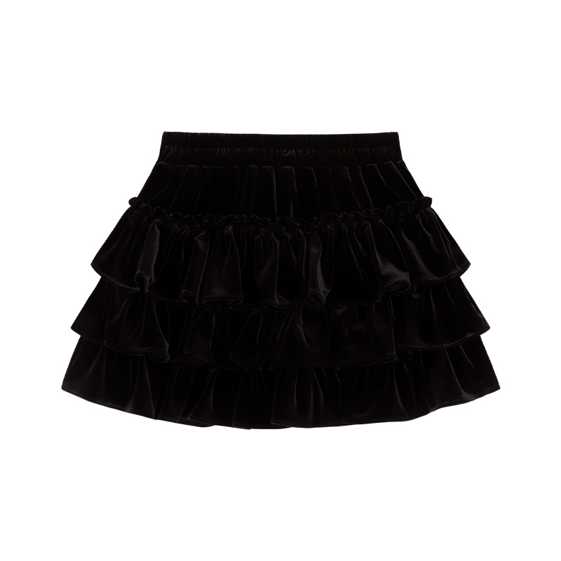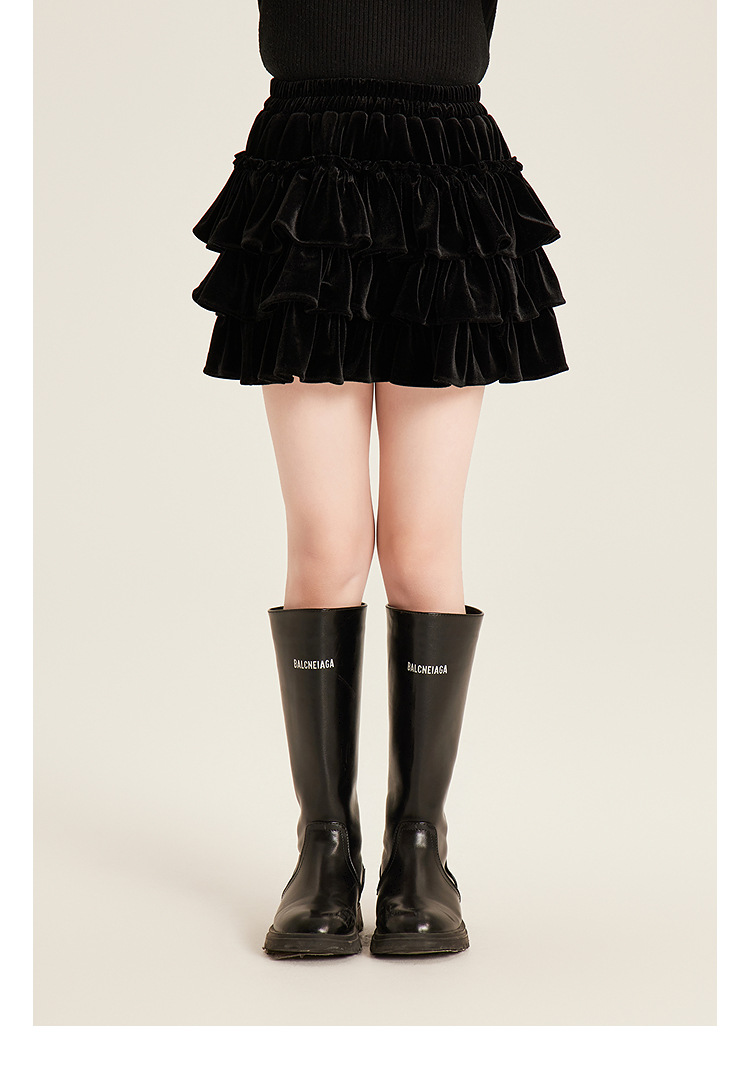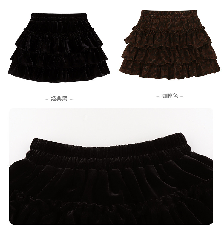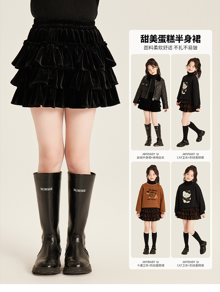 Amybaby Girl's Skirt Winter 2024 뉴 벨벳 웨스턴 스타일 올 매치 퍼프 케이크 스커트 A 라인 스커트