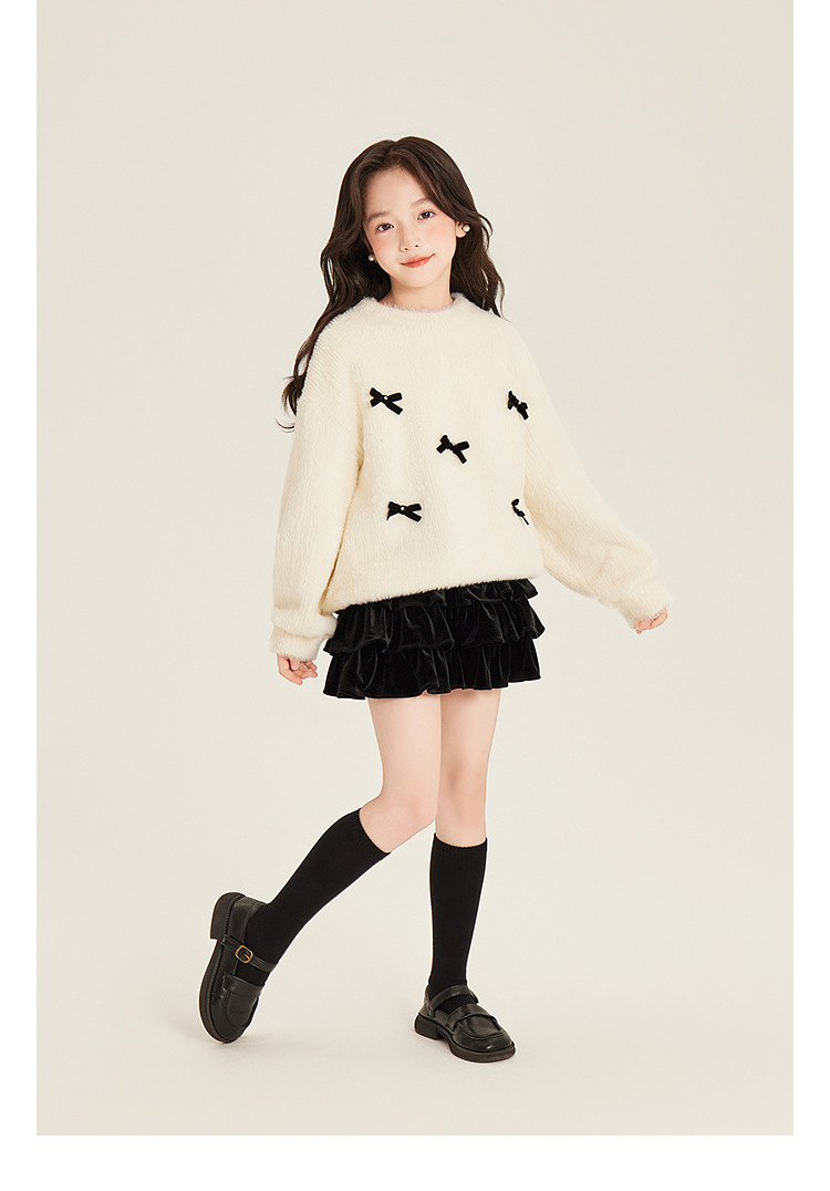 Amybaby Girl's Skirt Winter 2024 뉴 벨벳 웨스턴 스타일 올 매치 퍼프 케이크 스커트 A 라인 스커트스토어 가기