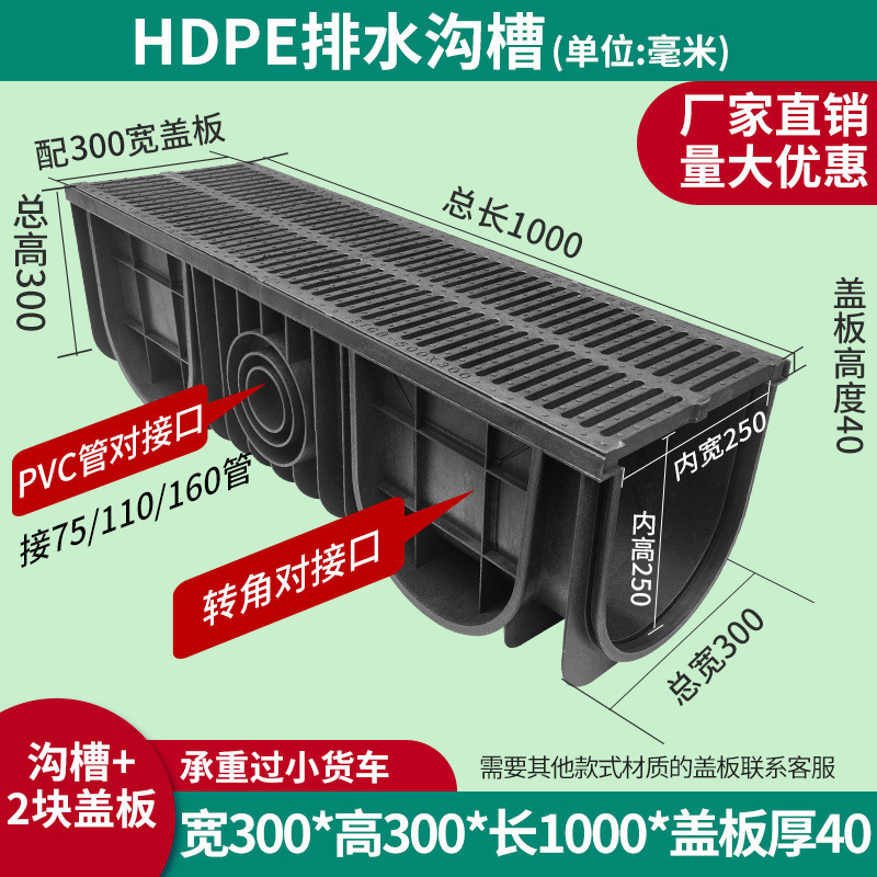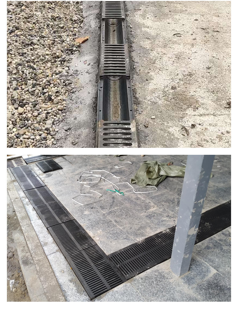 완성 된 선형 배수 도랑 U 자형 홈 수지 플라스틱 스테인레스 스틸 갭 유형 HDPE 하수도 배수 트로프 커버 플레이트