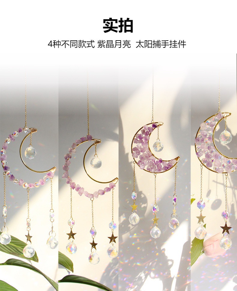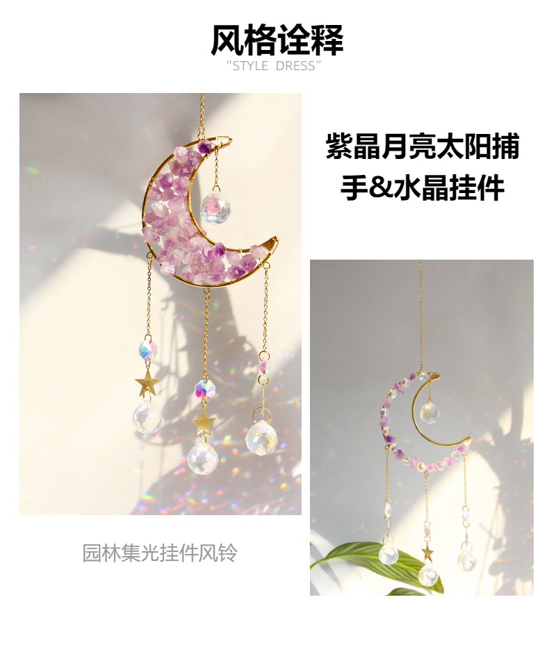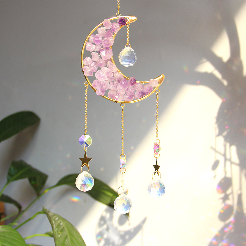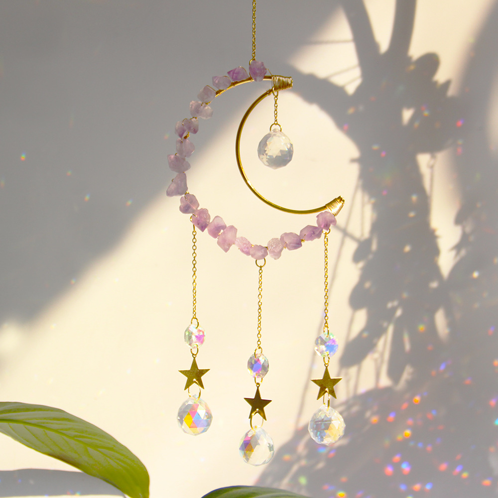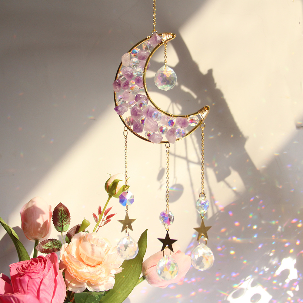 국경 간 천연 크리스탈 자갈 태양 포수 달 무지개 바람 차임 공예 장식 펜던트 태양 포수스토어 가기