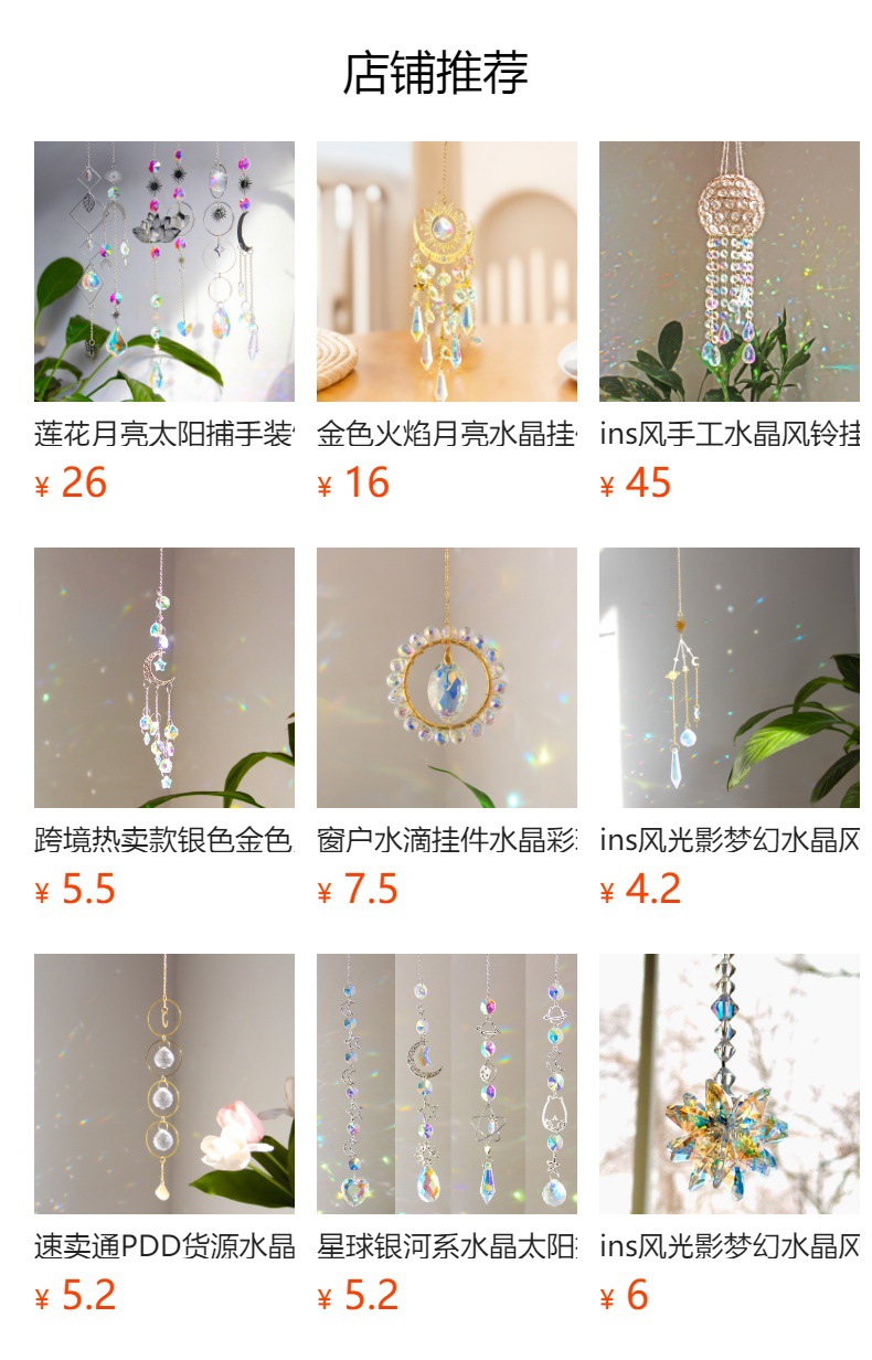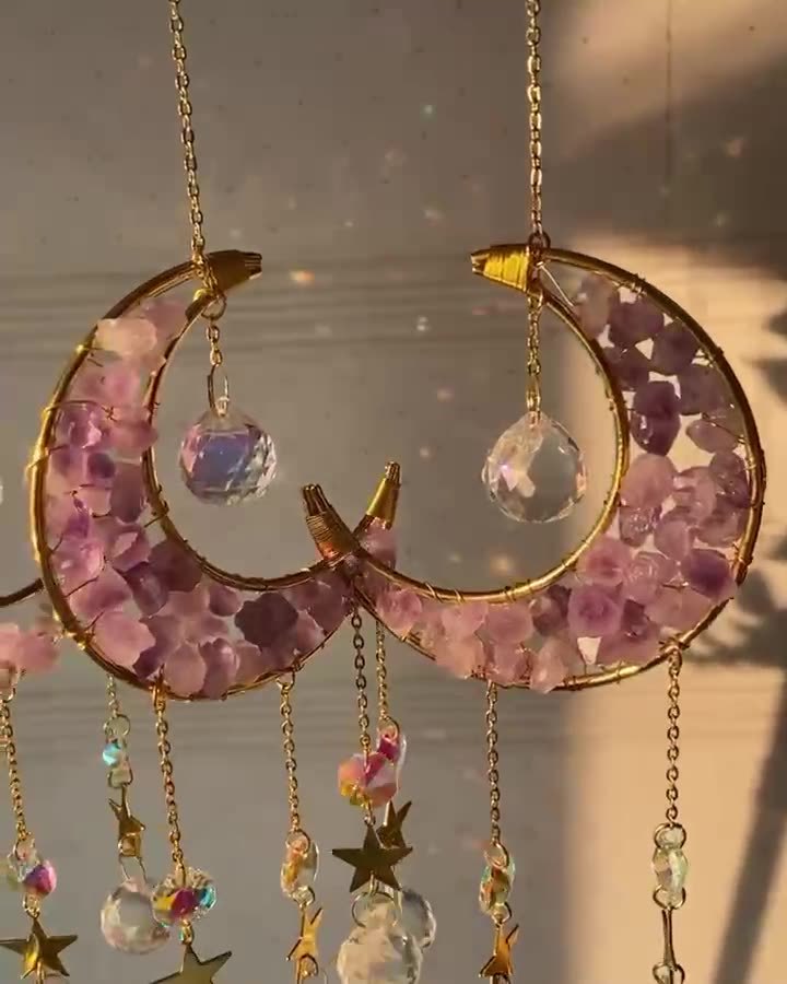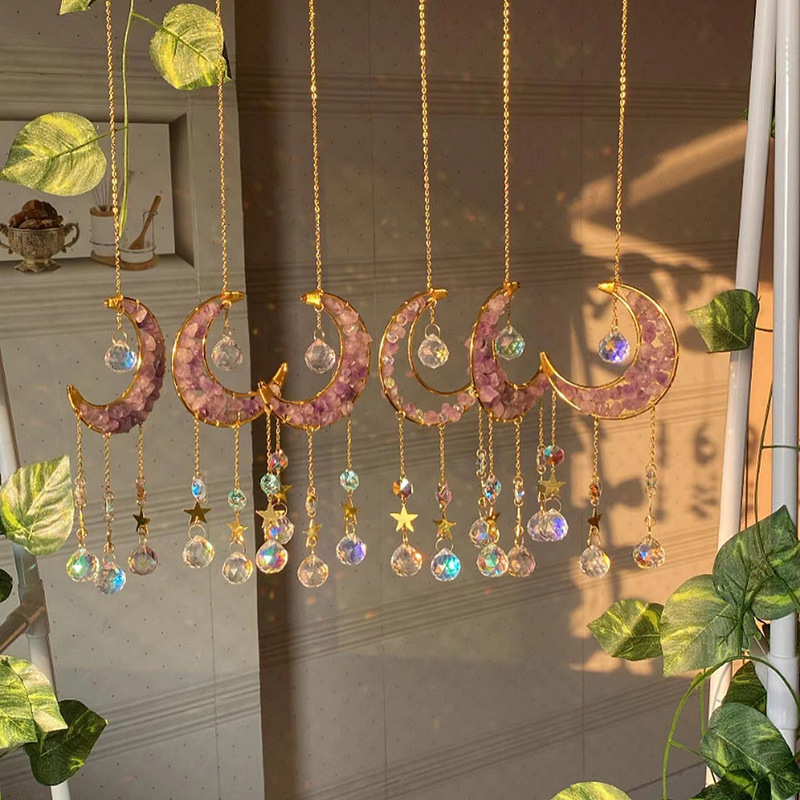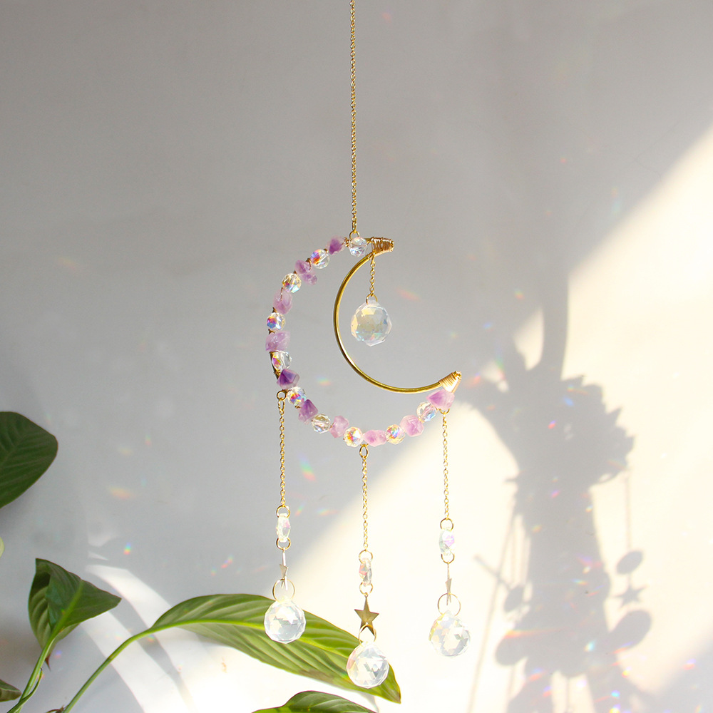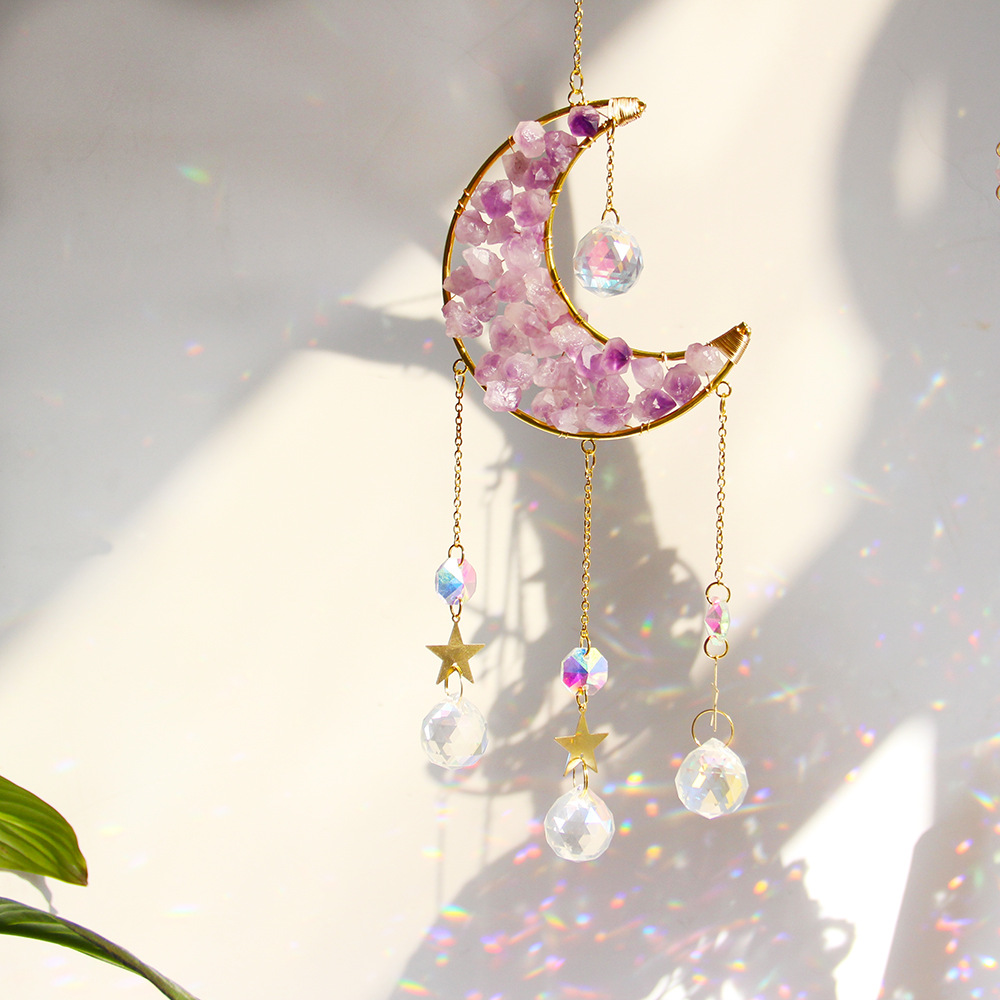 국경 간 천연 크리스탈 자갈 태양 포수 달 무지개 바람 차임 공예 장식 펜던트 태양 포수스토어 가기