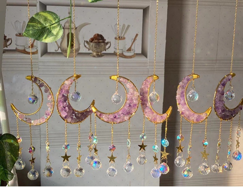 국경 간 천연 크리스탈 자갈 태양 포수 달 무지개 바람 차임 공예 장식 펜던트 태양 포수