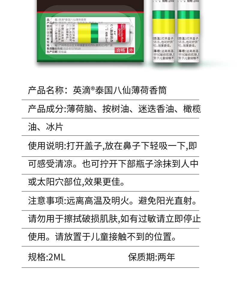 영국, 태국 8 개 요정 튜브 민트 향 튜브 3 팩 코 스틱 쿨 오일 도매 생산