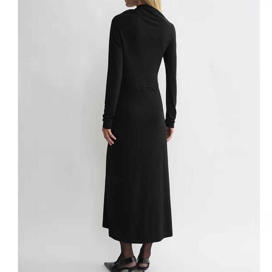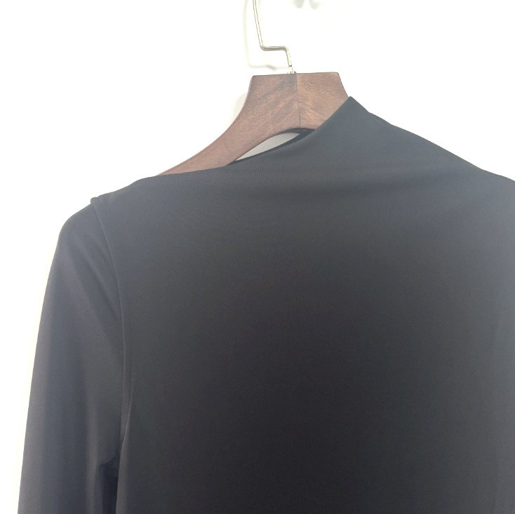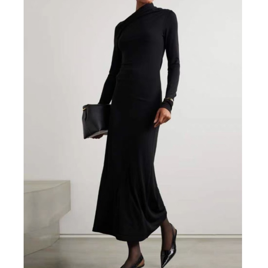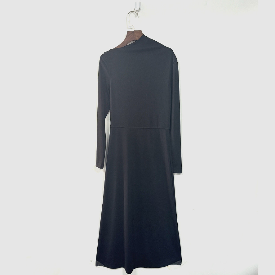 TT25 이른 봄 새로운 프랑스 스타일 레트로 슬림 비대칭 칼라 드래핑 니트 긴팔 원피스