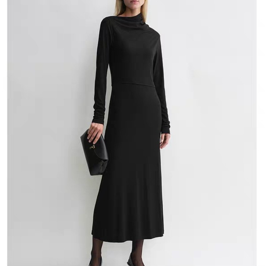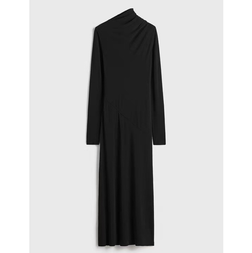 TT25 이른 봄 새로운 프랑스 스타일 레트로 슬림 비대칭 칼라 드래핑 니트 긴팔 원피스스토어 가기