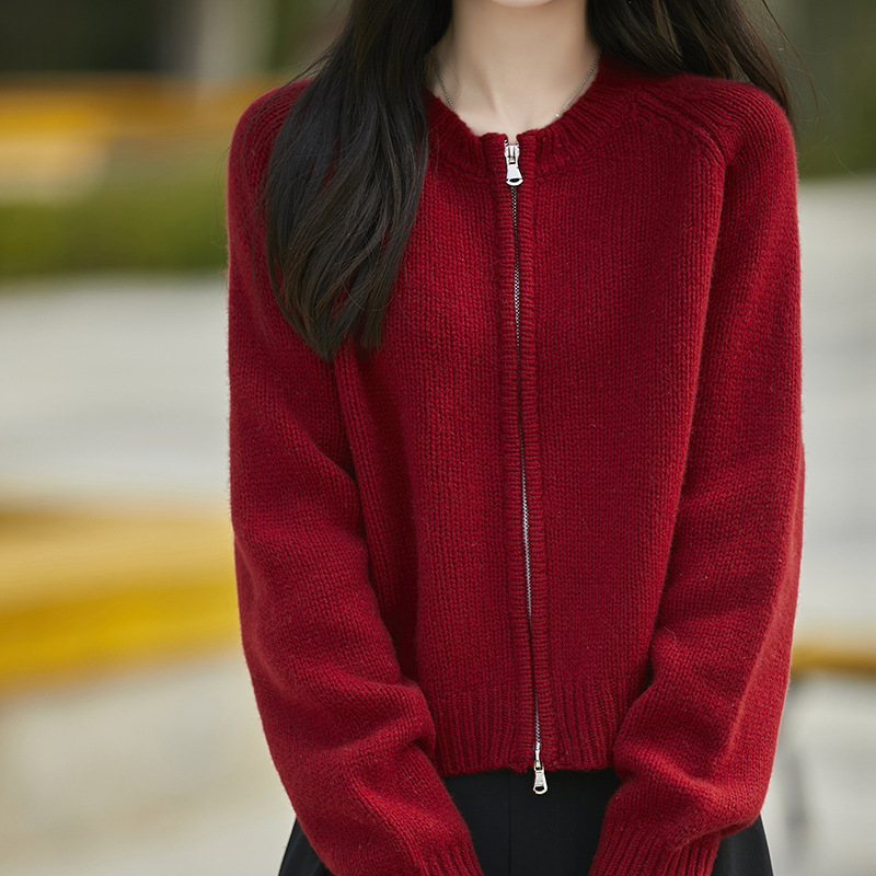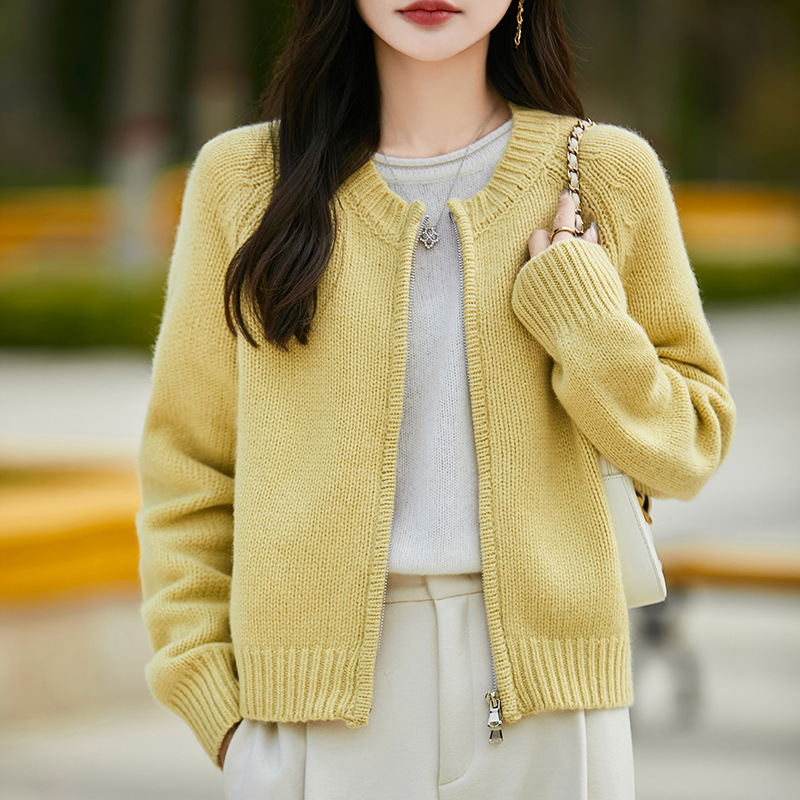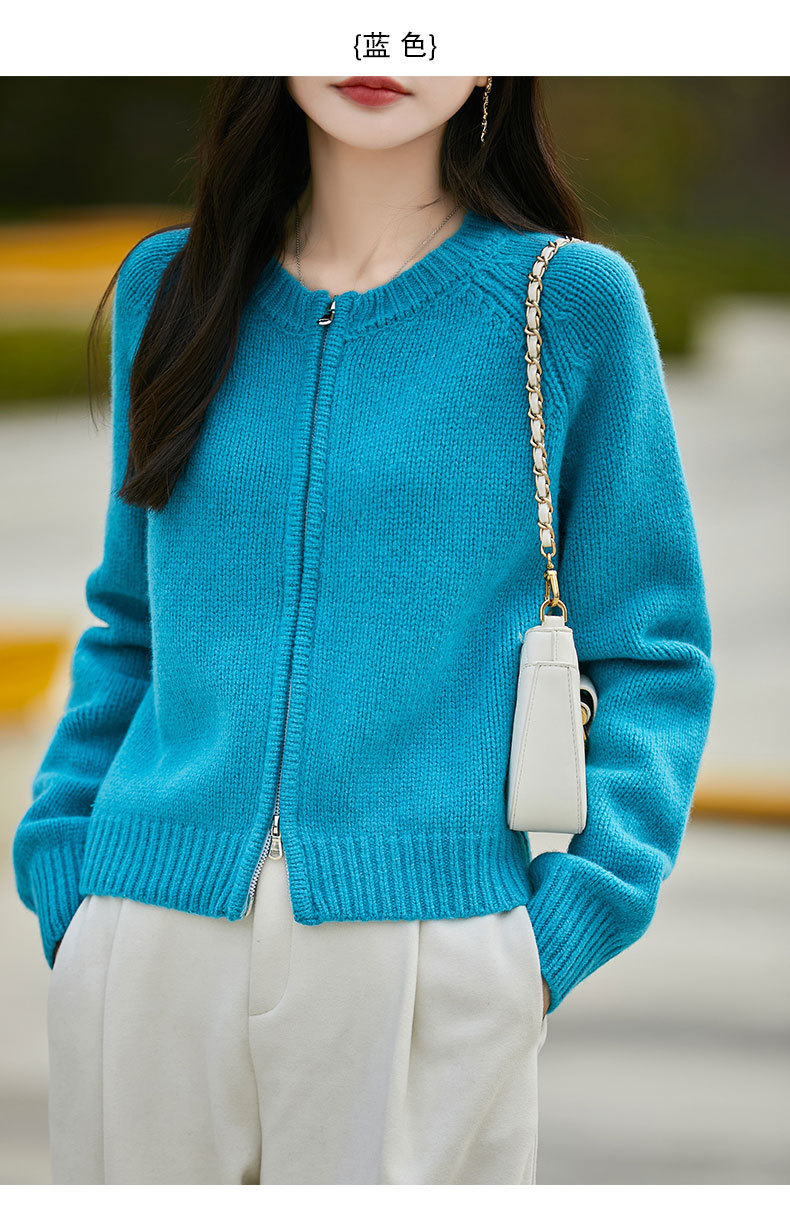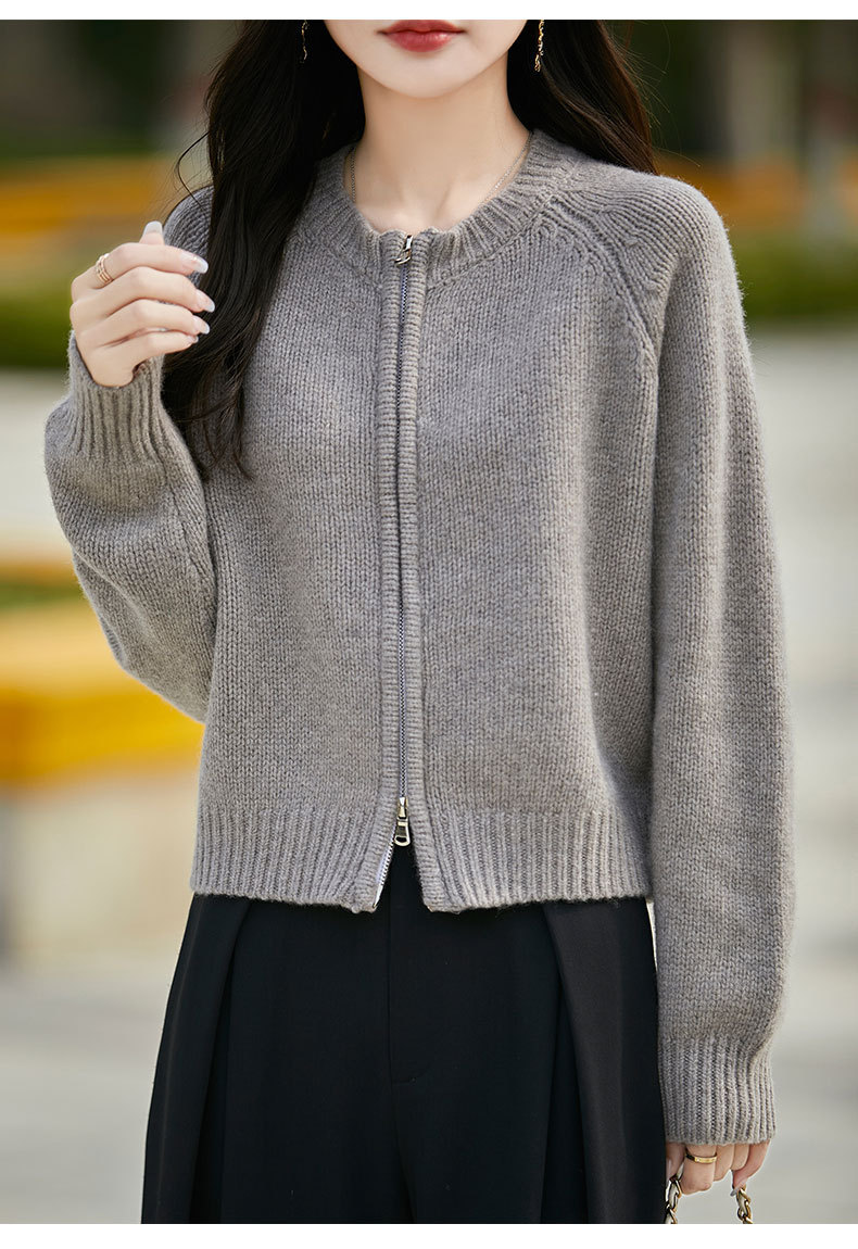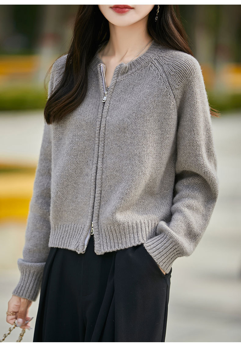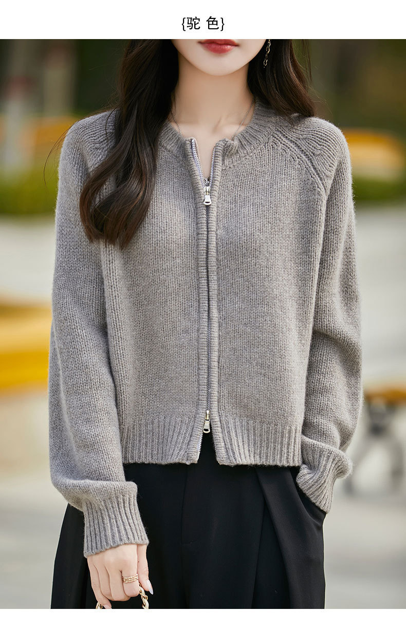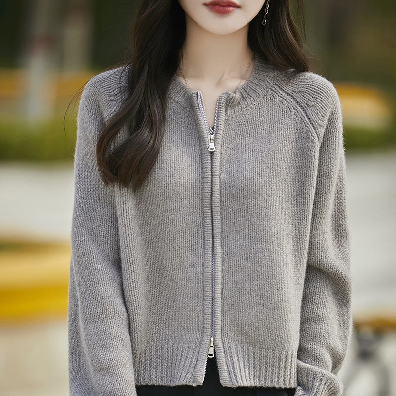 가을과 겨울 새로운 100 순수 양모 카디건 여성의 높은 허리 우아한 느슨한 외부 더블 지퍼 재킷 스웨터 탑
