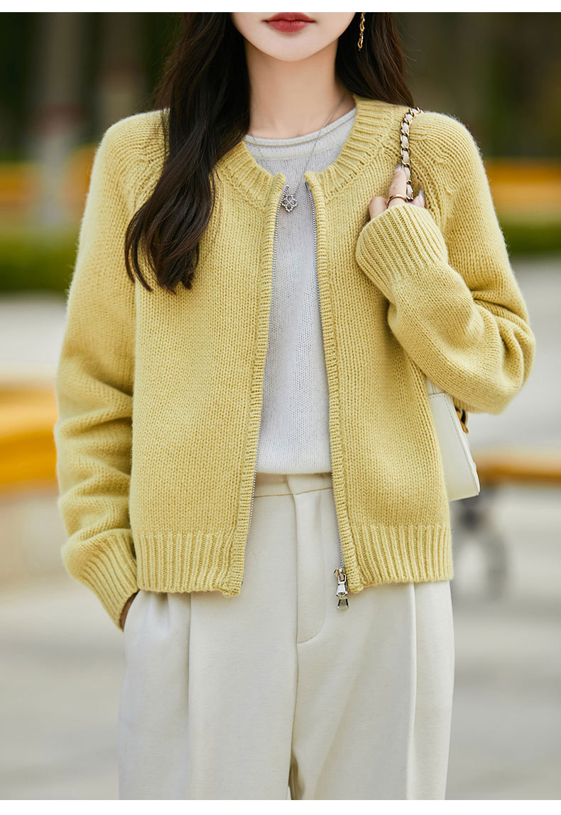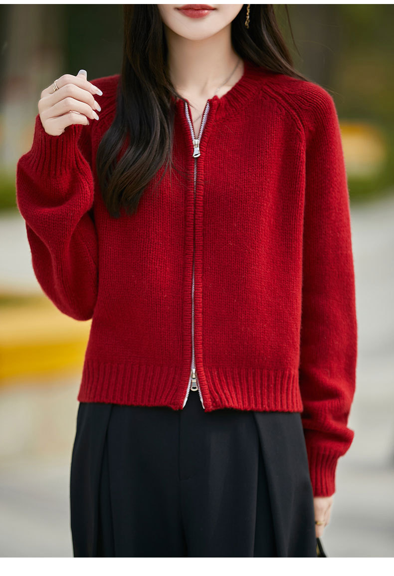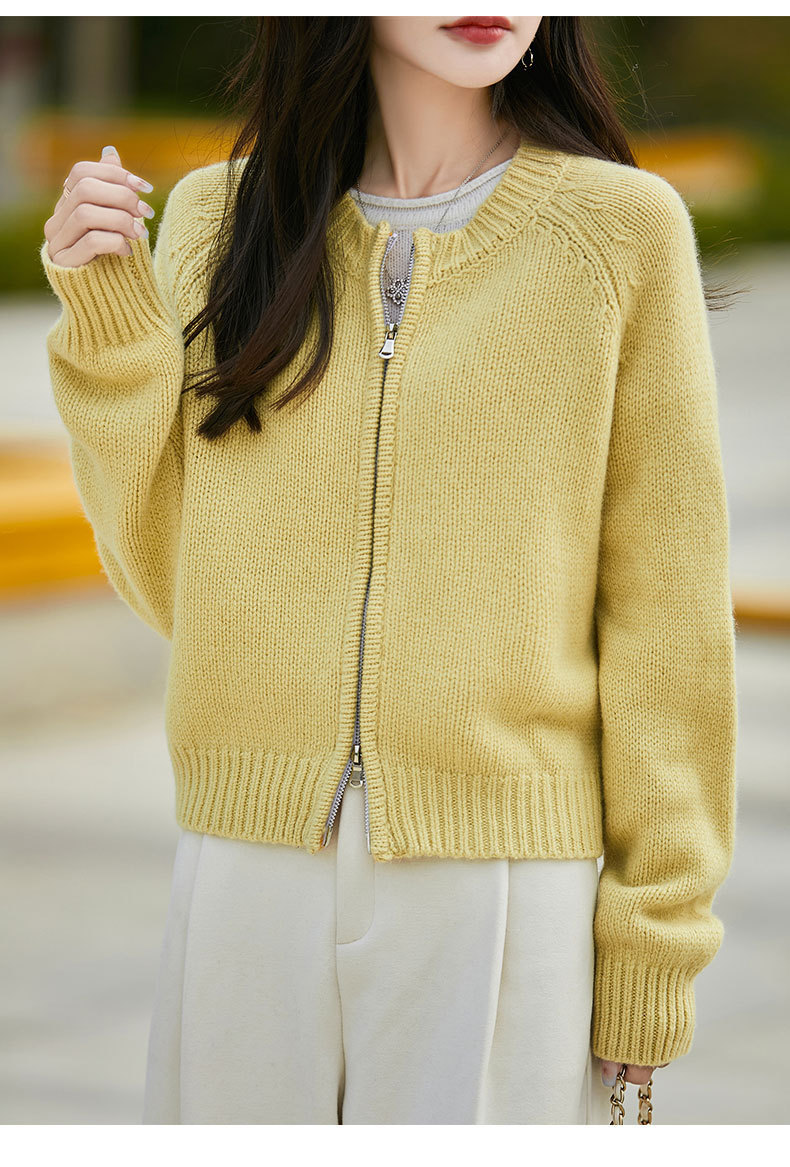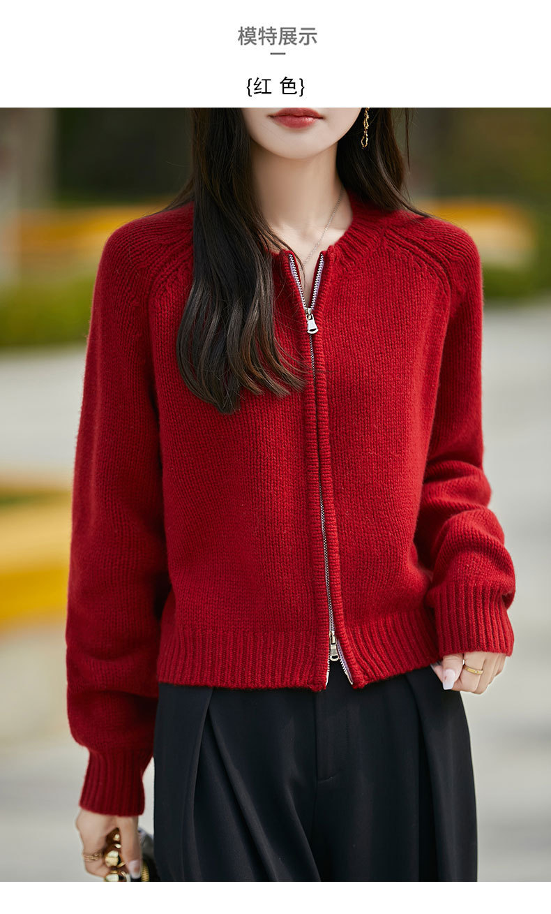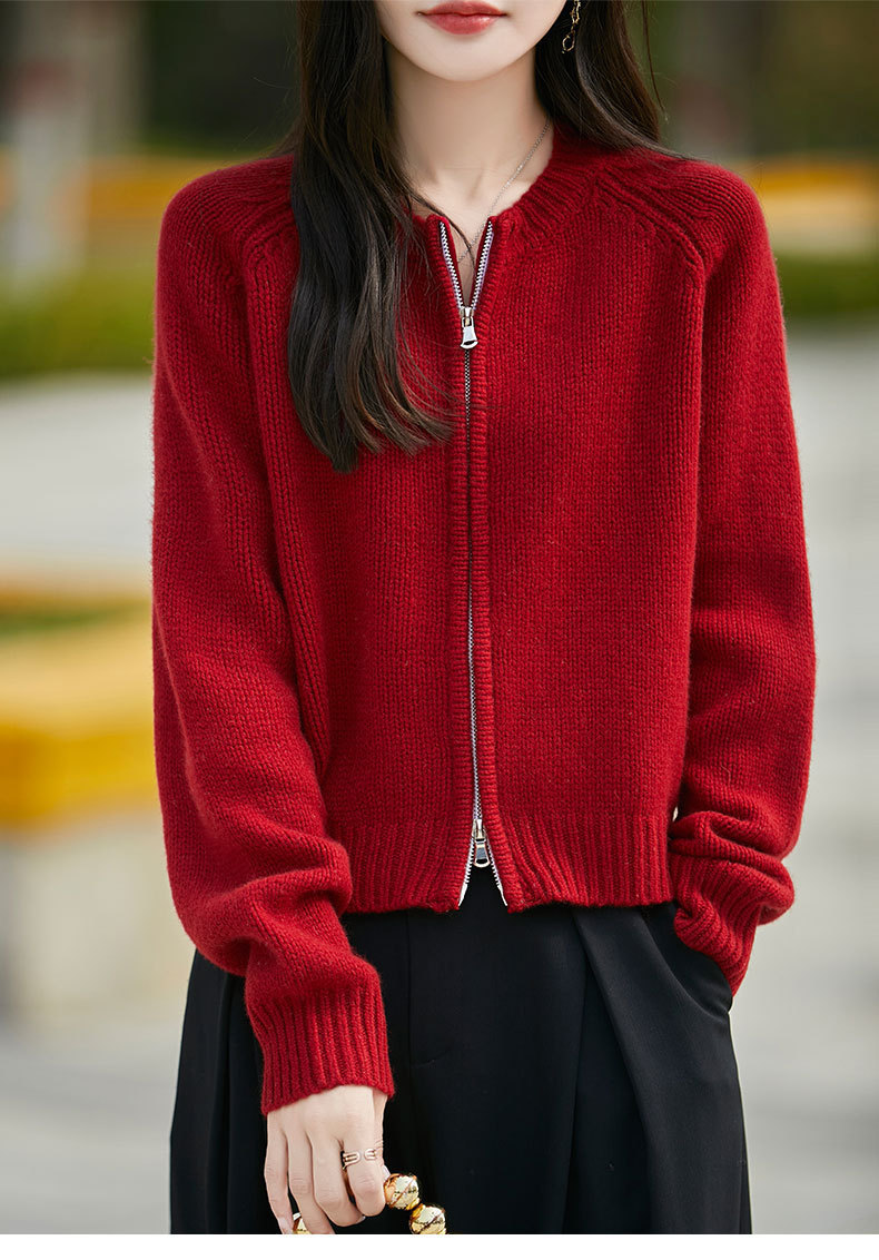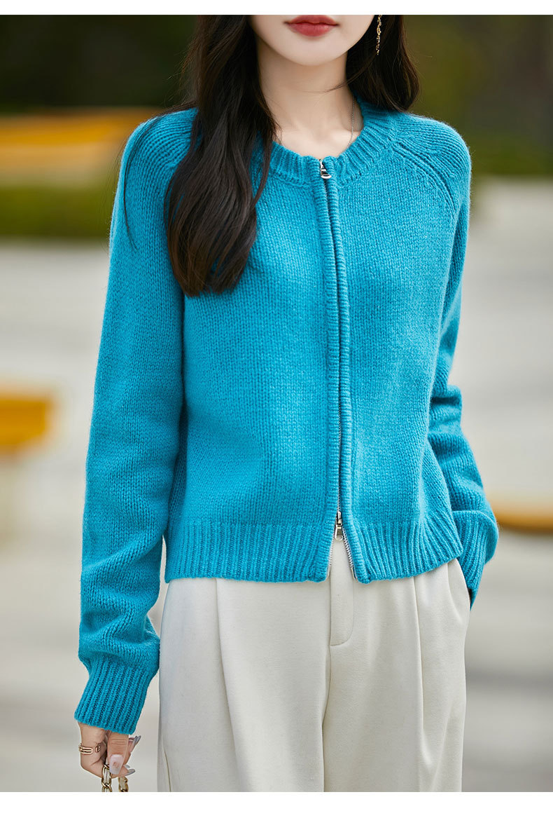 가을과 겨울 새로운 100 순수 양모 카디건 여성의 높은 허리 우아한 느슨한 외부 더블 지퍼 재킷 스웨터 탑